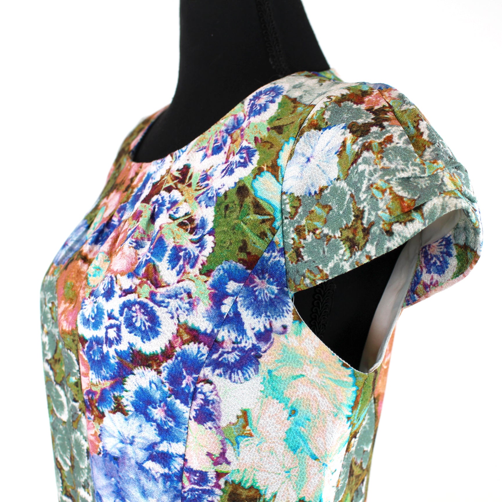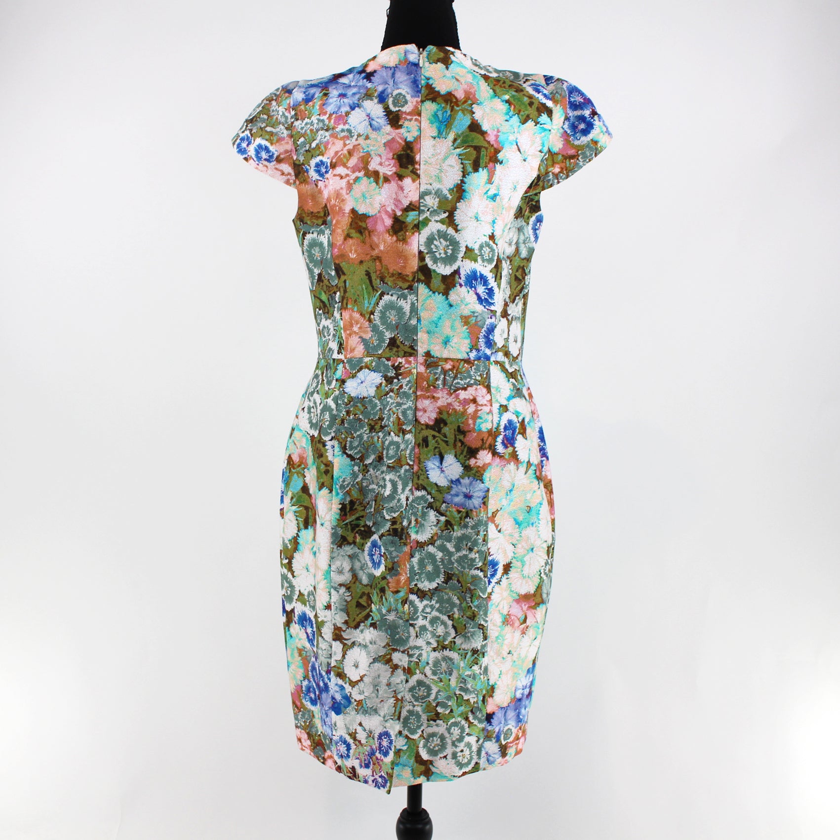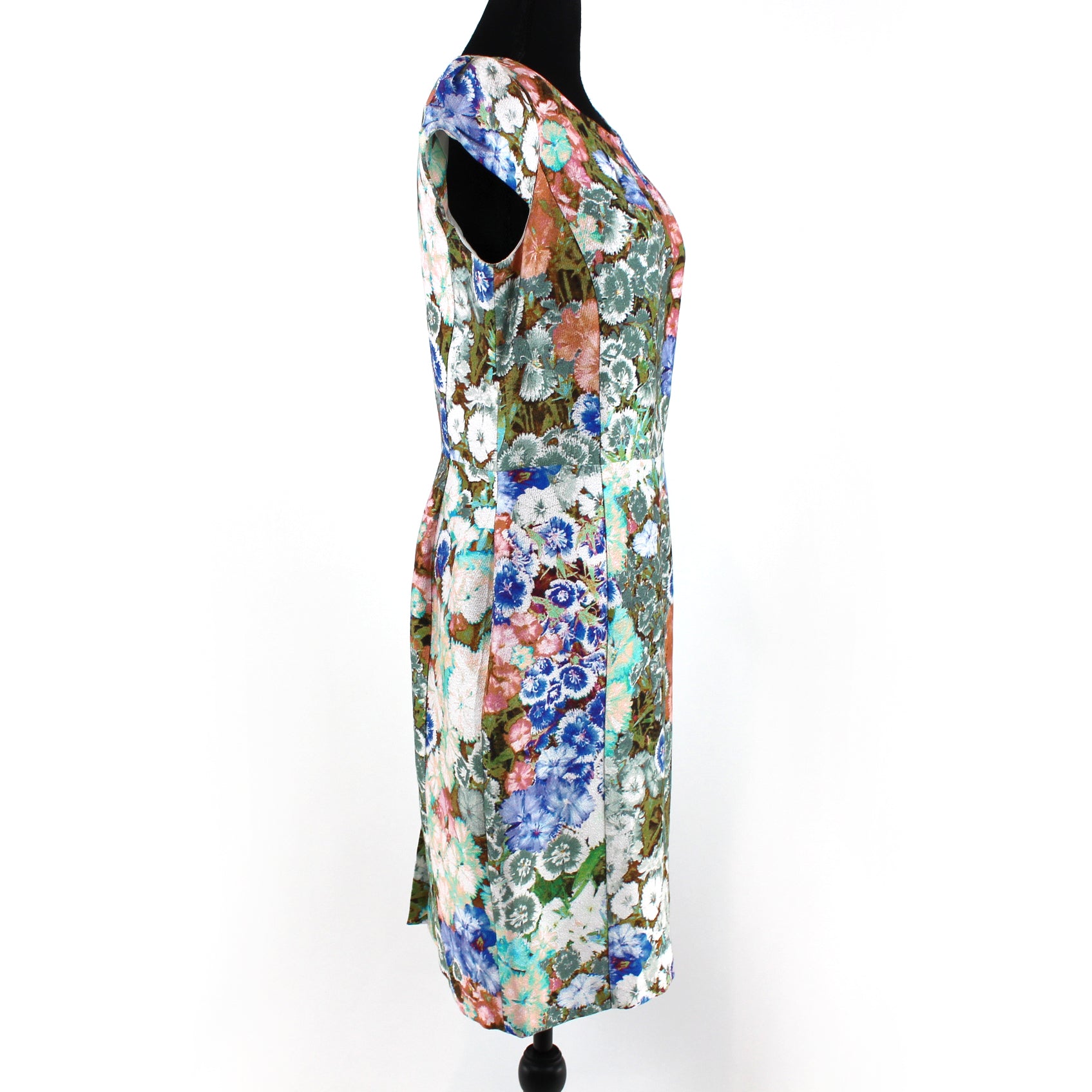 Etro Abstract Multicolor Floral Knee Length Short Sleeve Sheath Dress