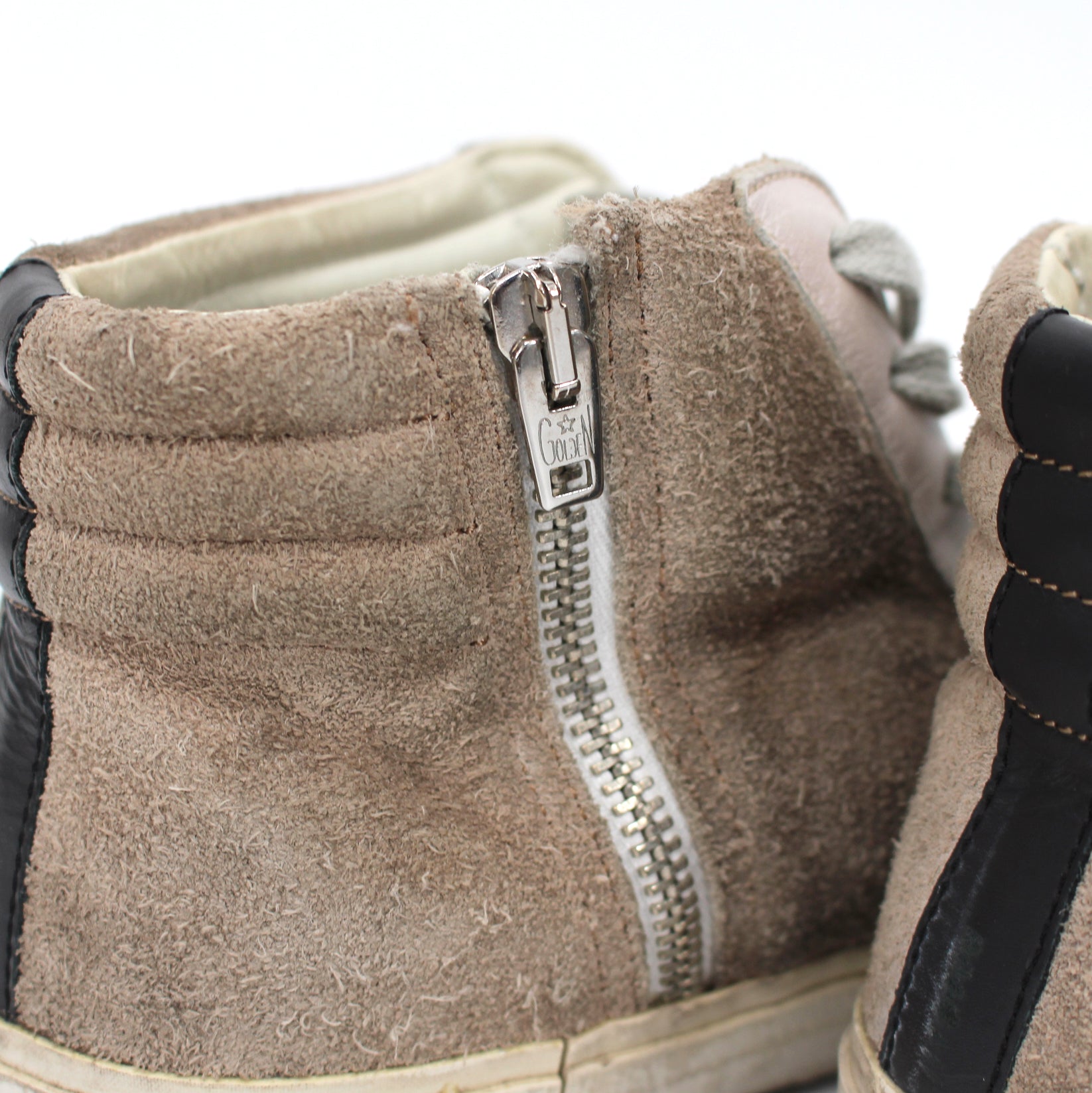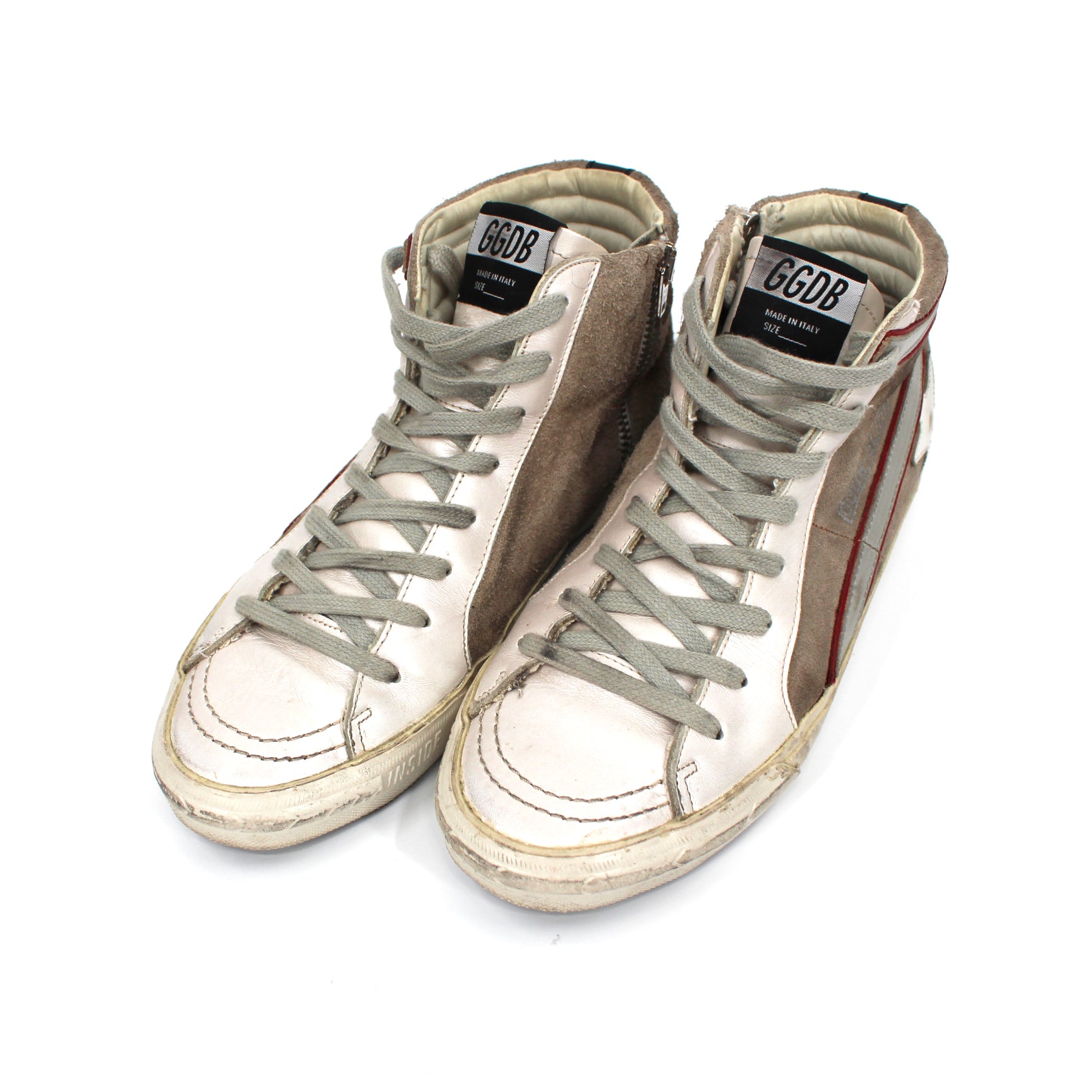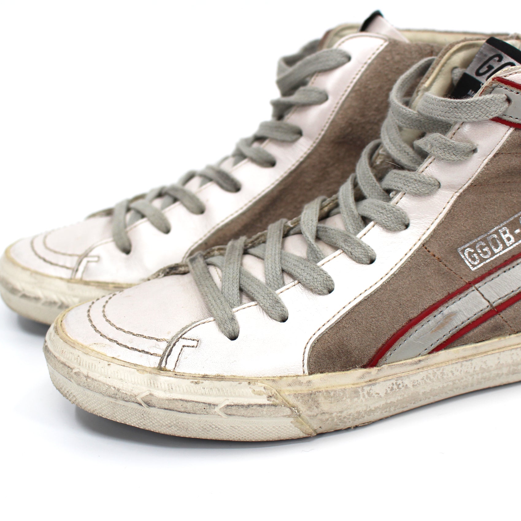 Golden Goose Slide Leather Suede High Top Distressed Sneakers