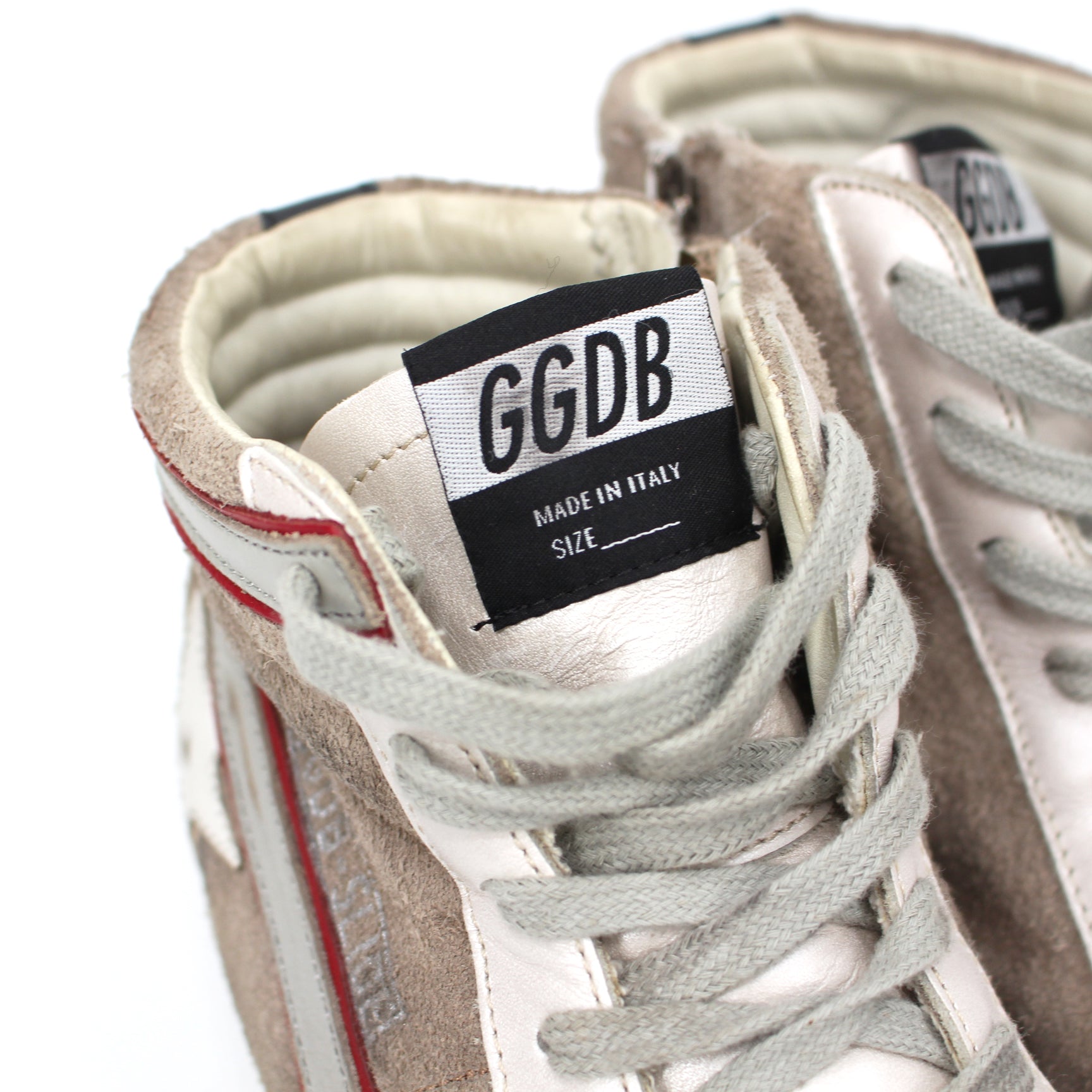 - White leather & grey suede