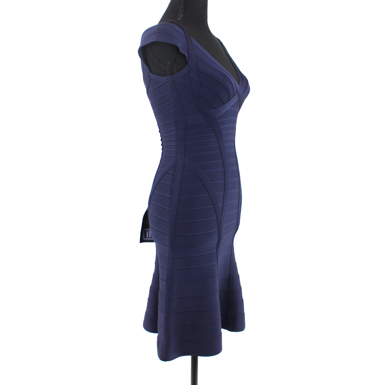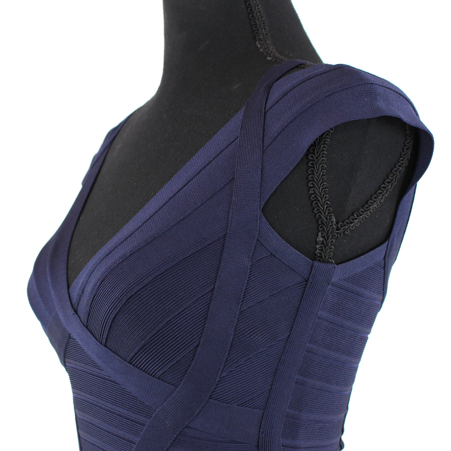 Herve Leger Ontoria Pacific Blue Bandage Bodycon Sleeveless Mini Dress