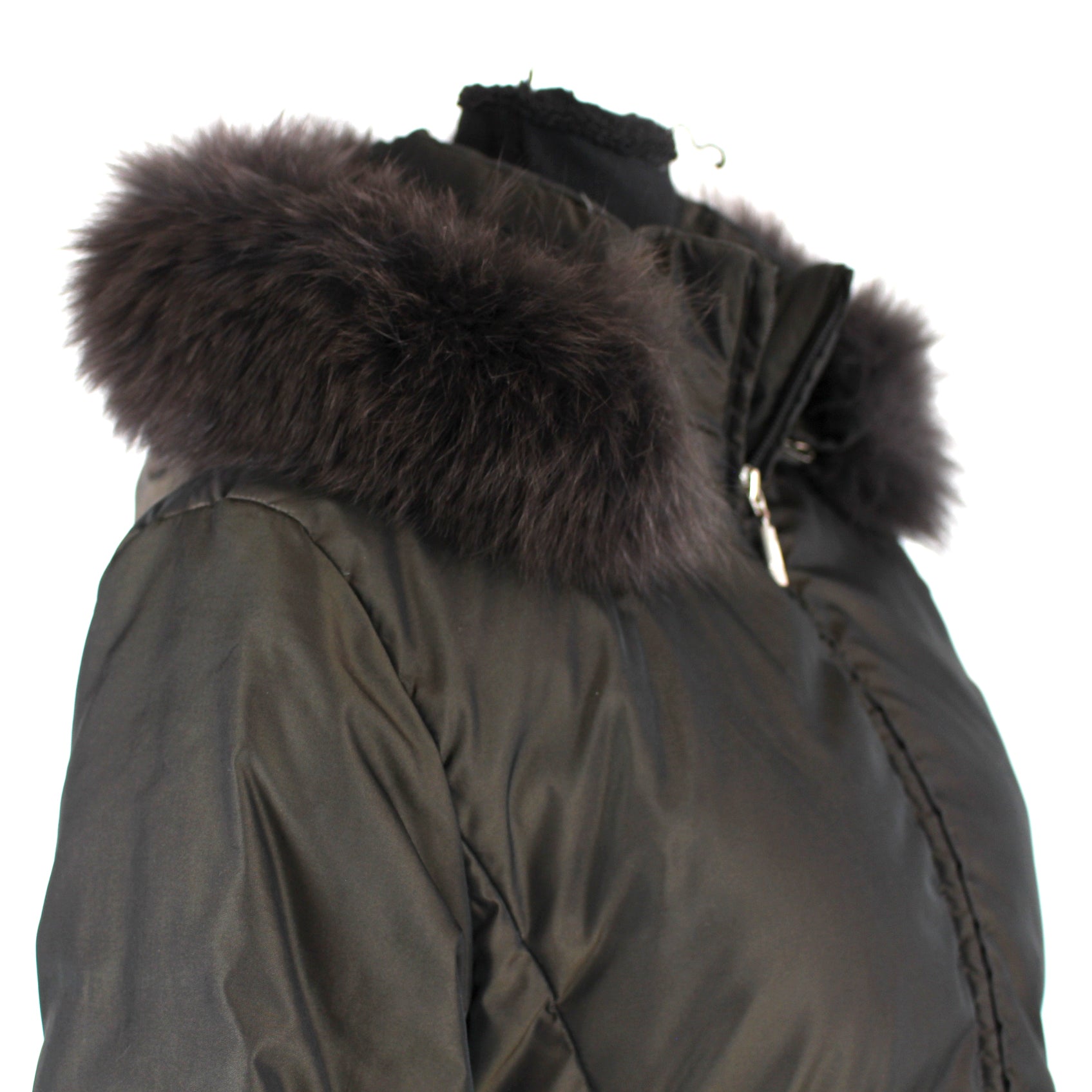 Moncler Down Fur Trim Hooded Coat