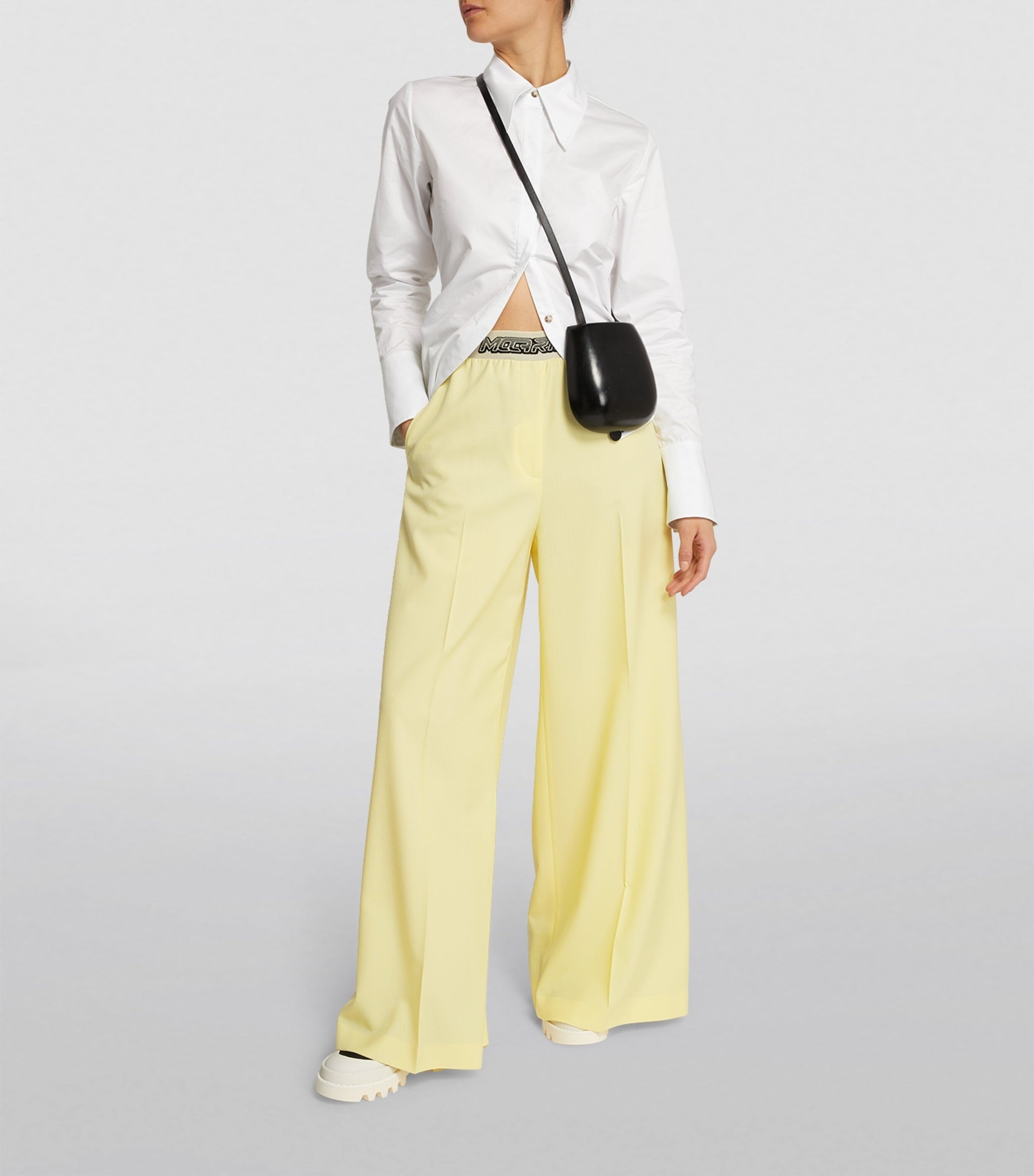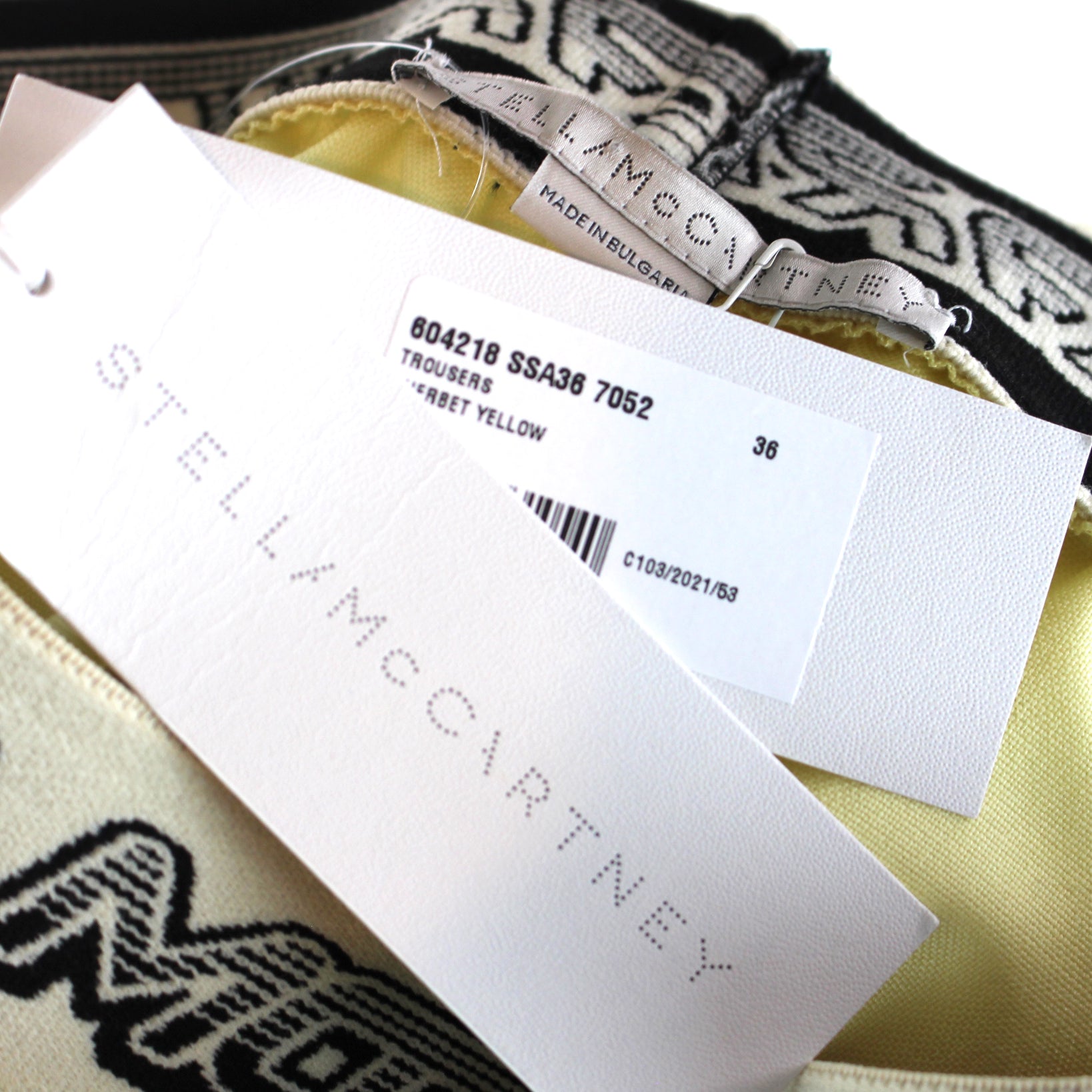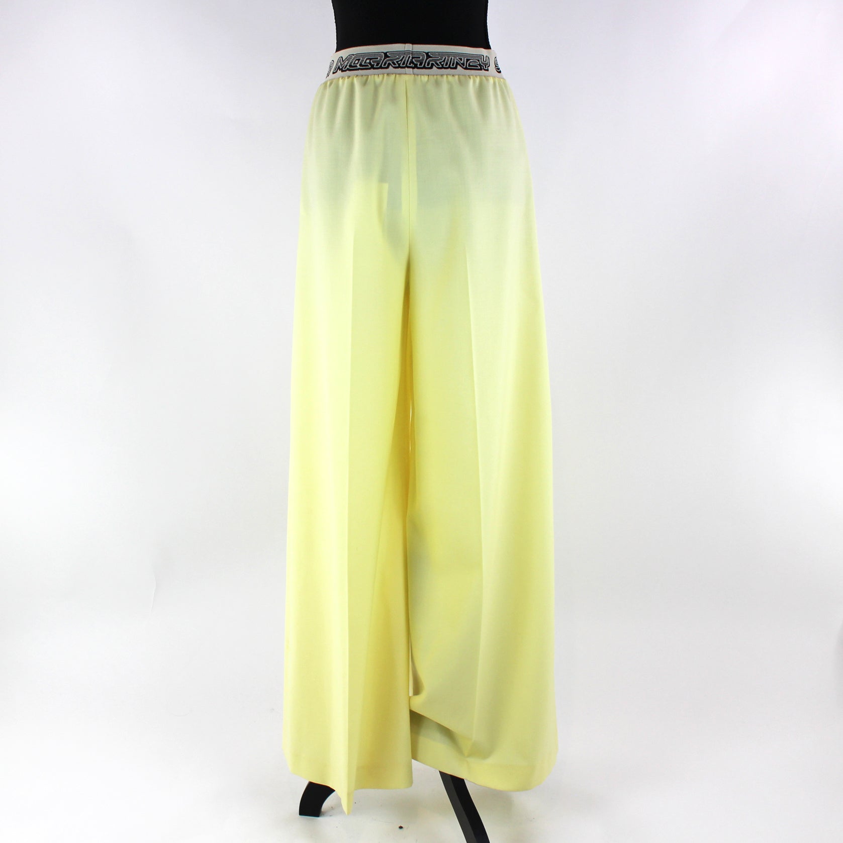 Stella McCartney Wool Wide Leg Logo Tape Sherbet Yellow Trousers Pants