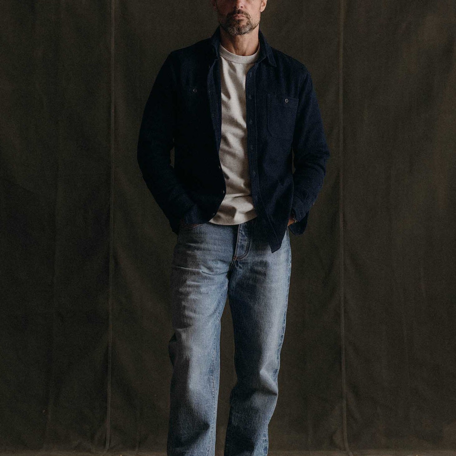 Taylor Stitch The Utility Textured Sashiko Organic Cotton Long Sleeve Navy Shirt