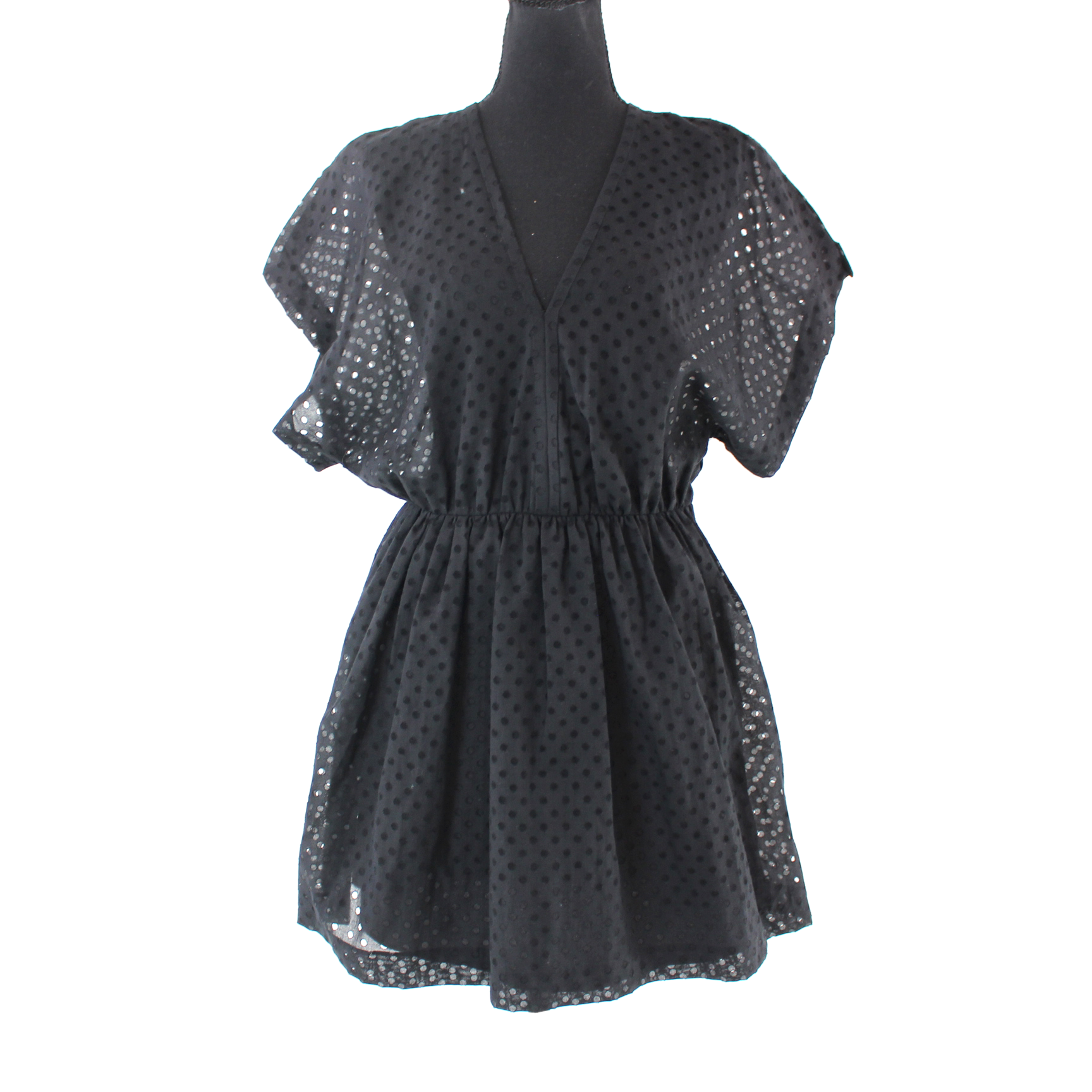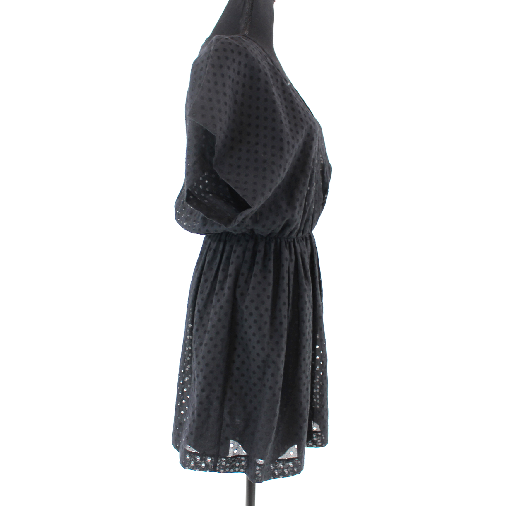 IRO Genna Broderie Anglaise Black Cotton Blend Short Sleeve Mini Dress