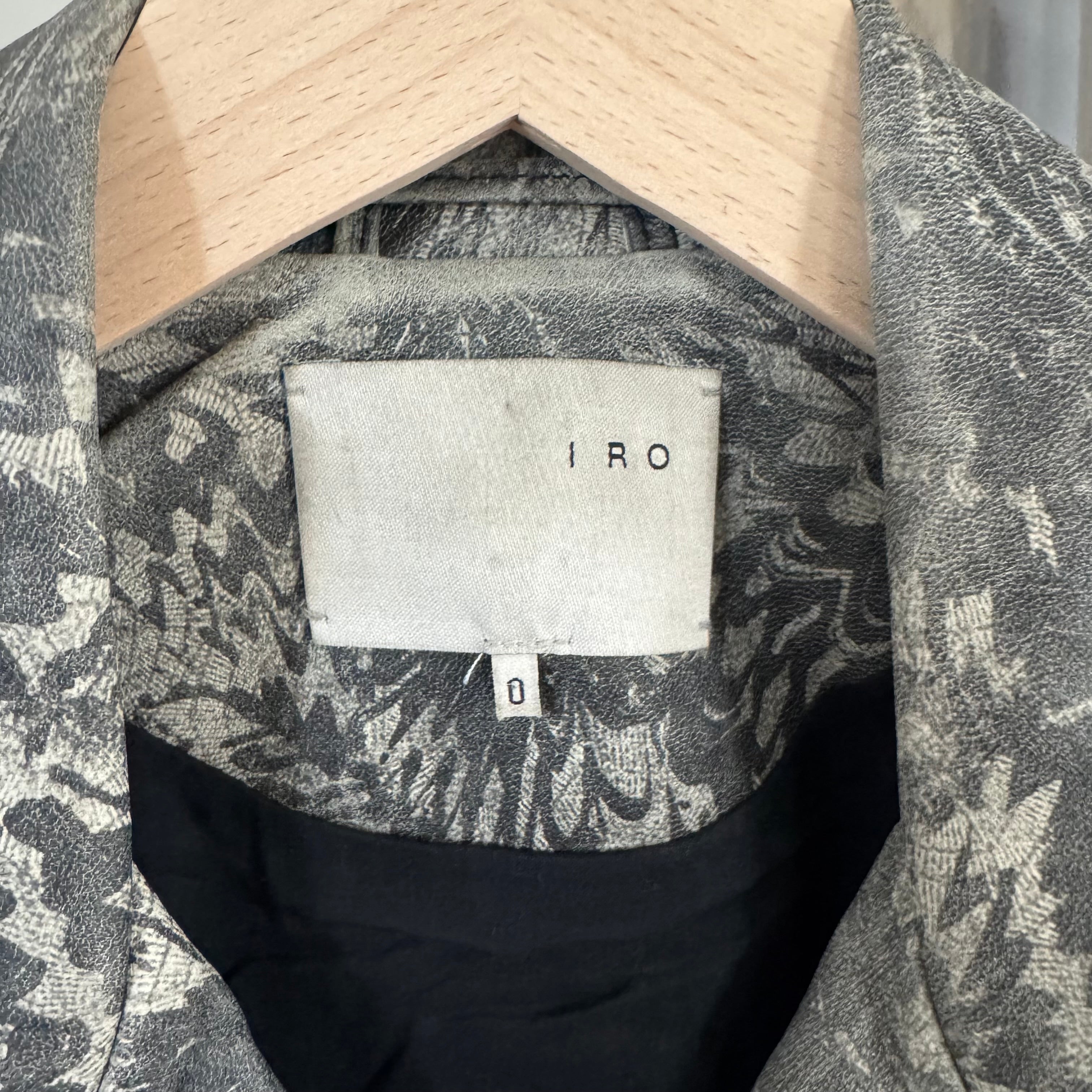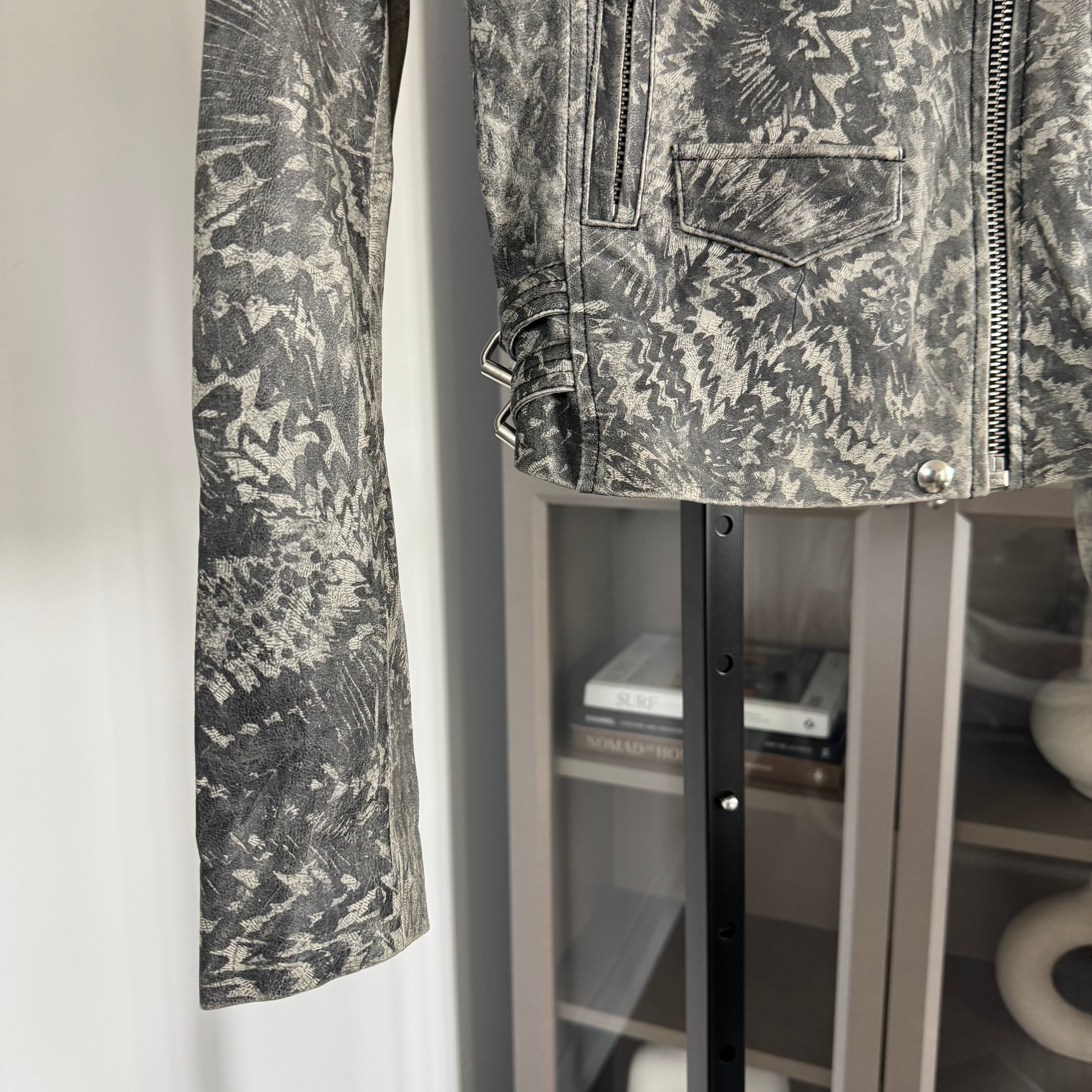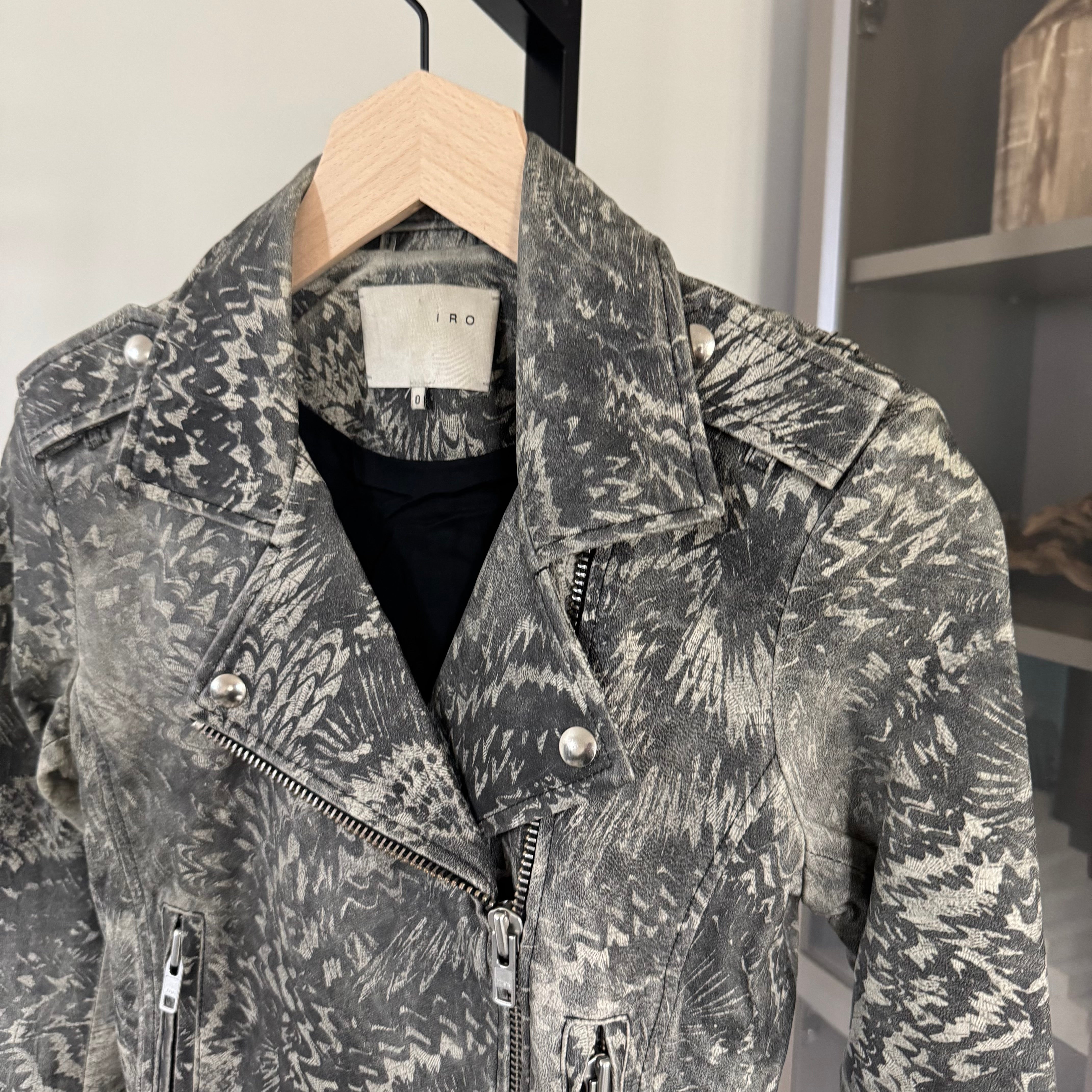IRO Salinas Black Grey Abstract Pattern Lamb Leather Biker Motorcycle Jacket.