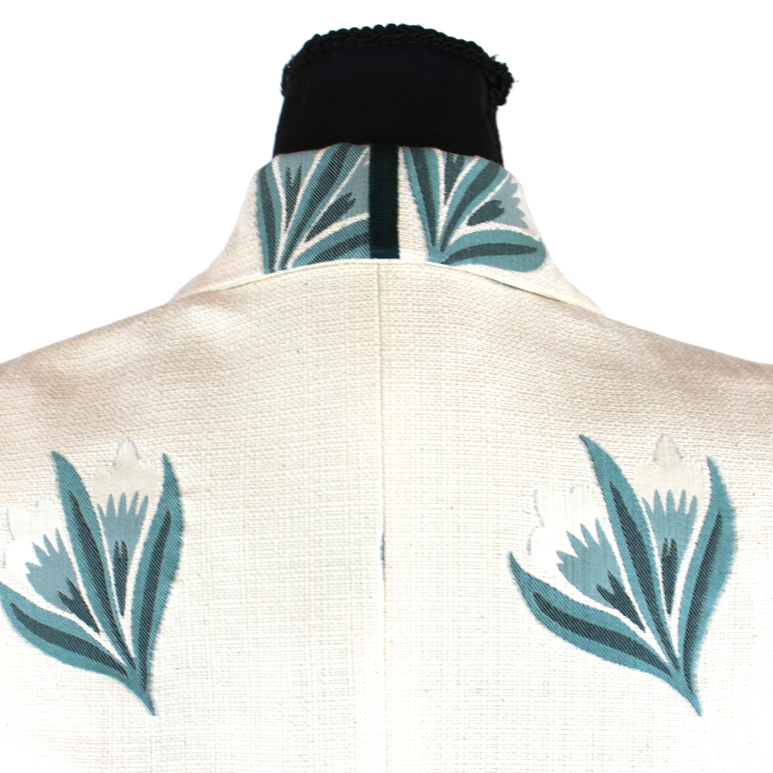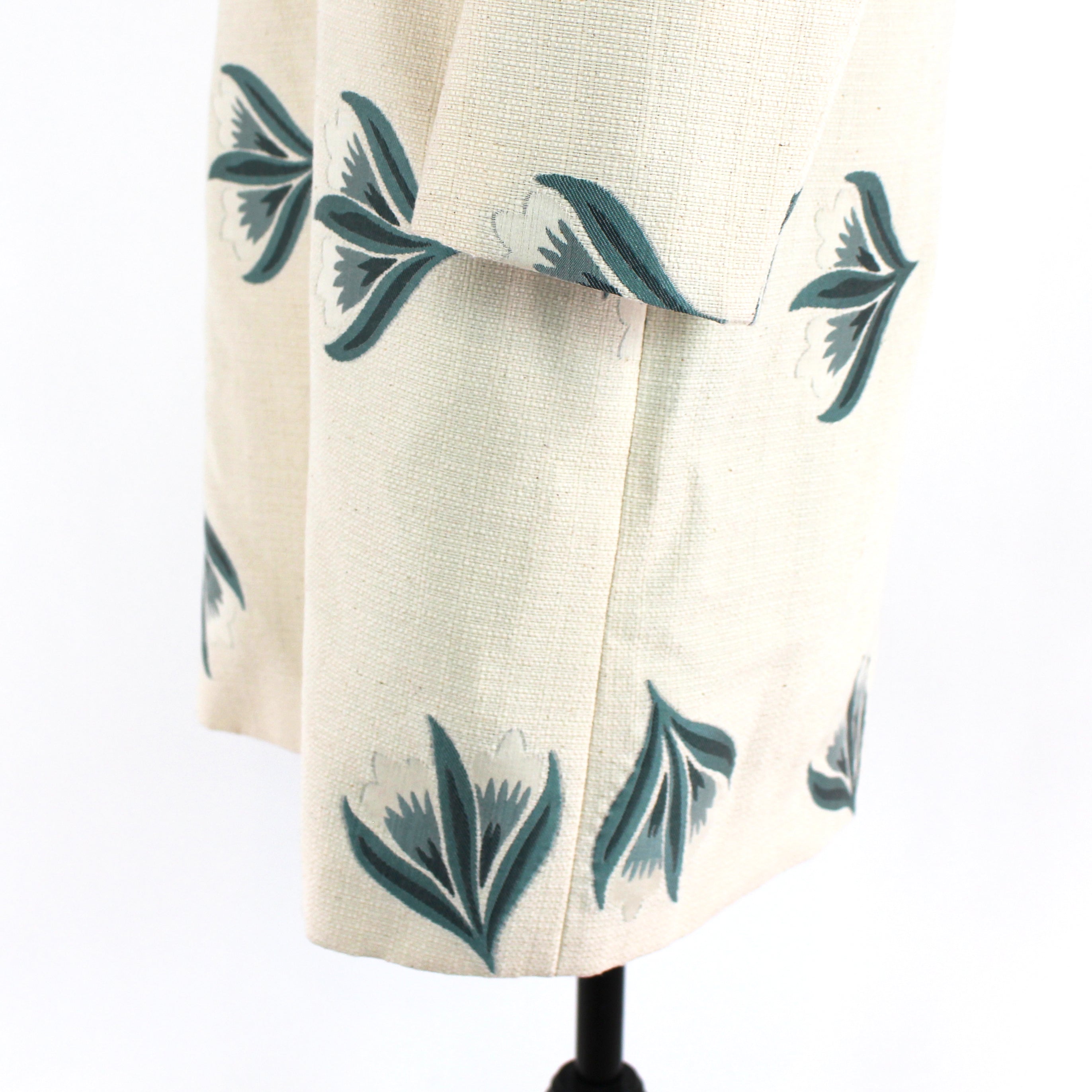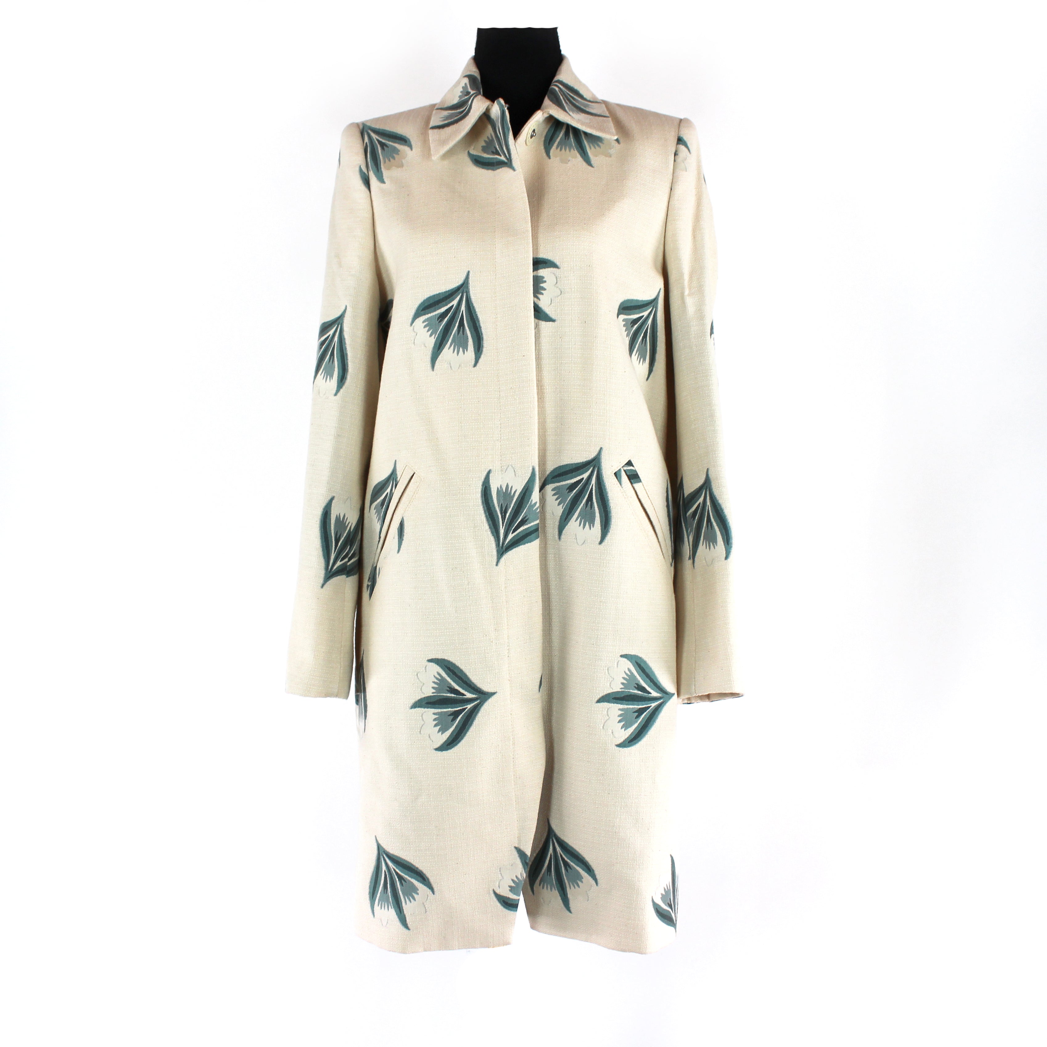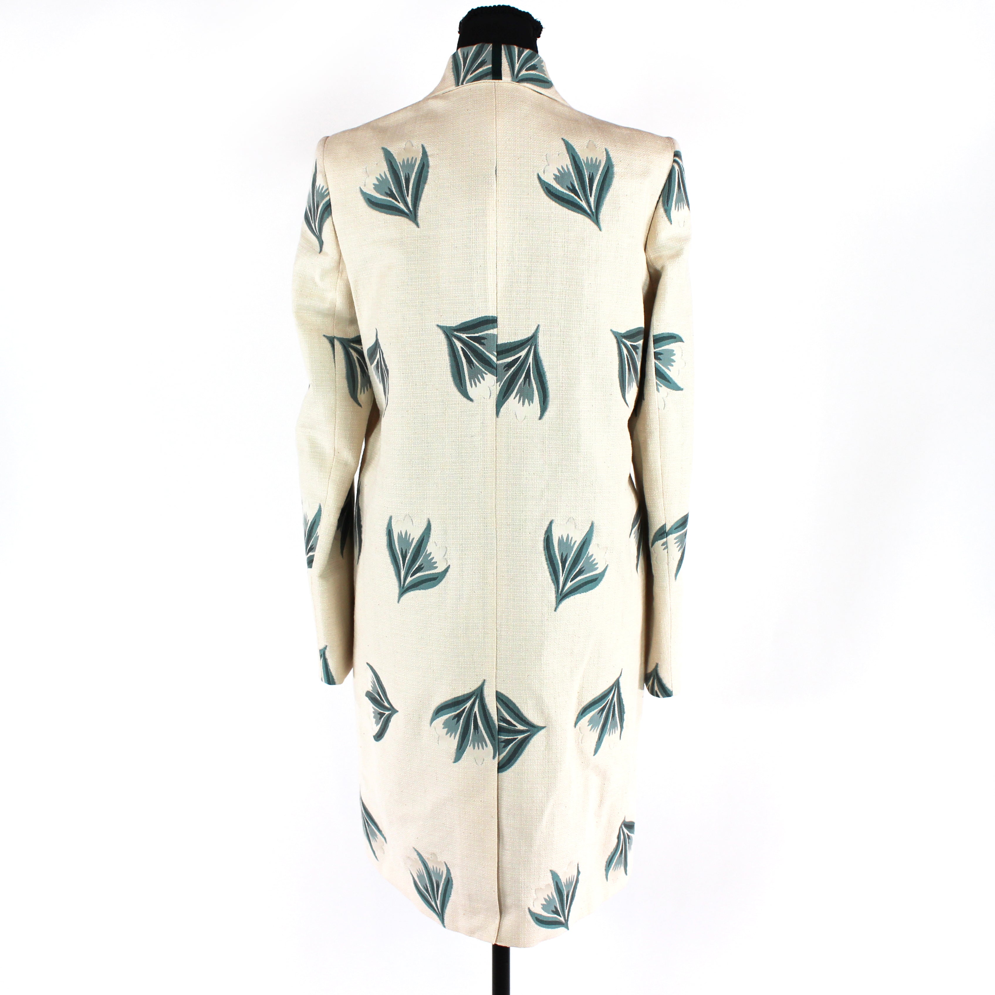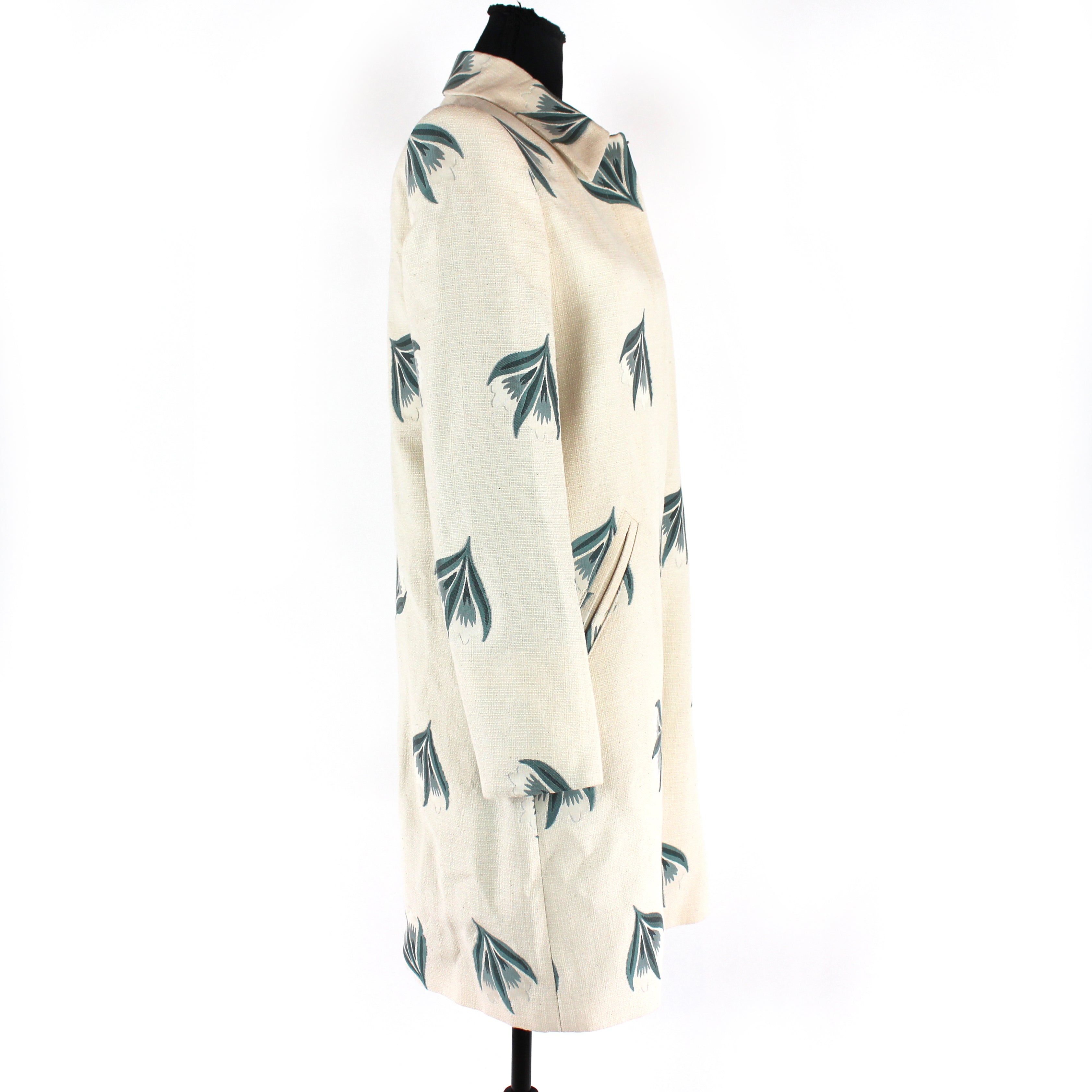 Brooks Brothers Woven Ivory Green Embroidered Floral Pattern Mid Length Coat
