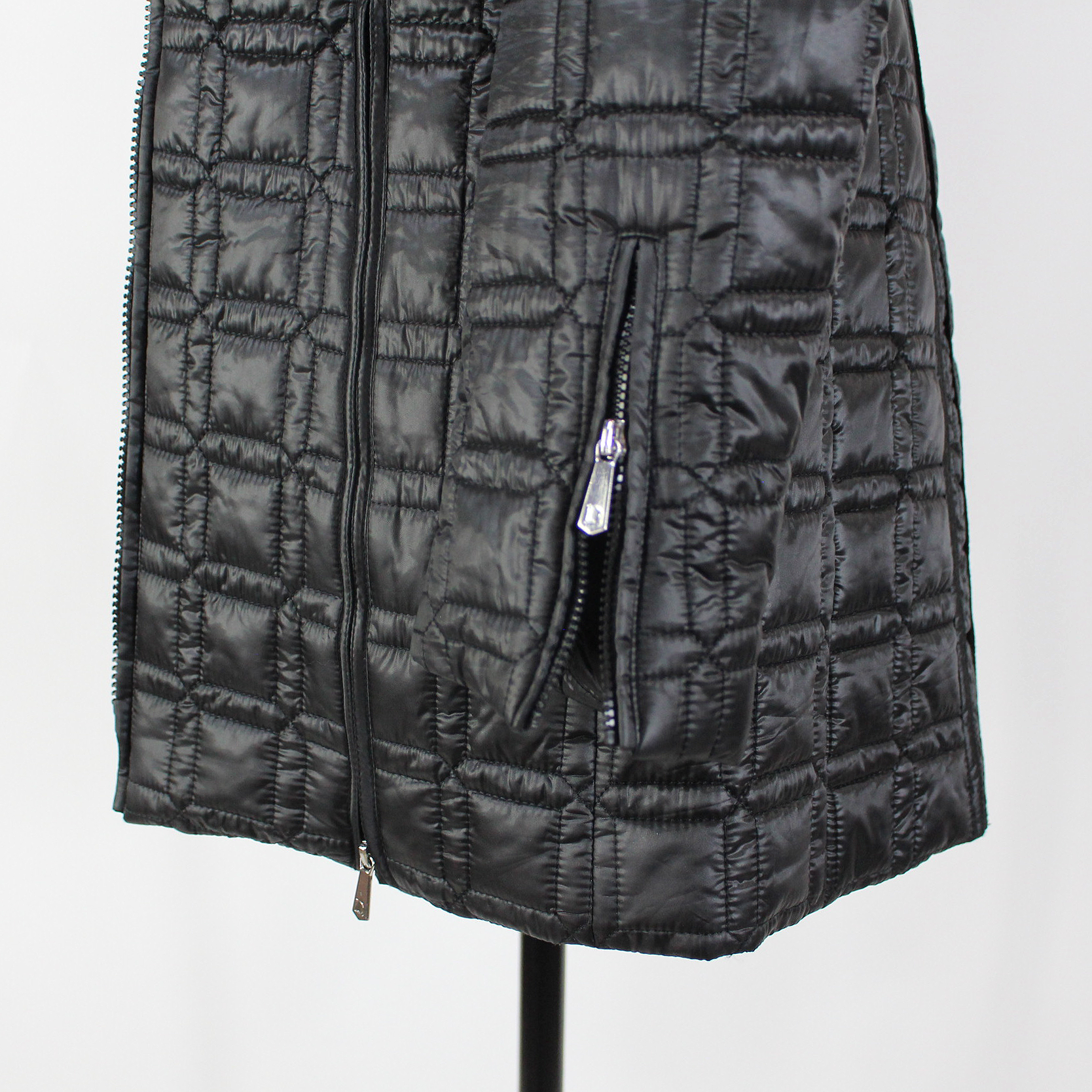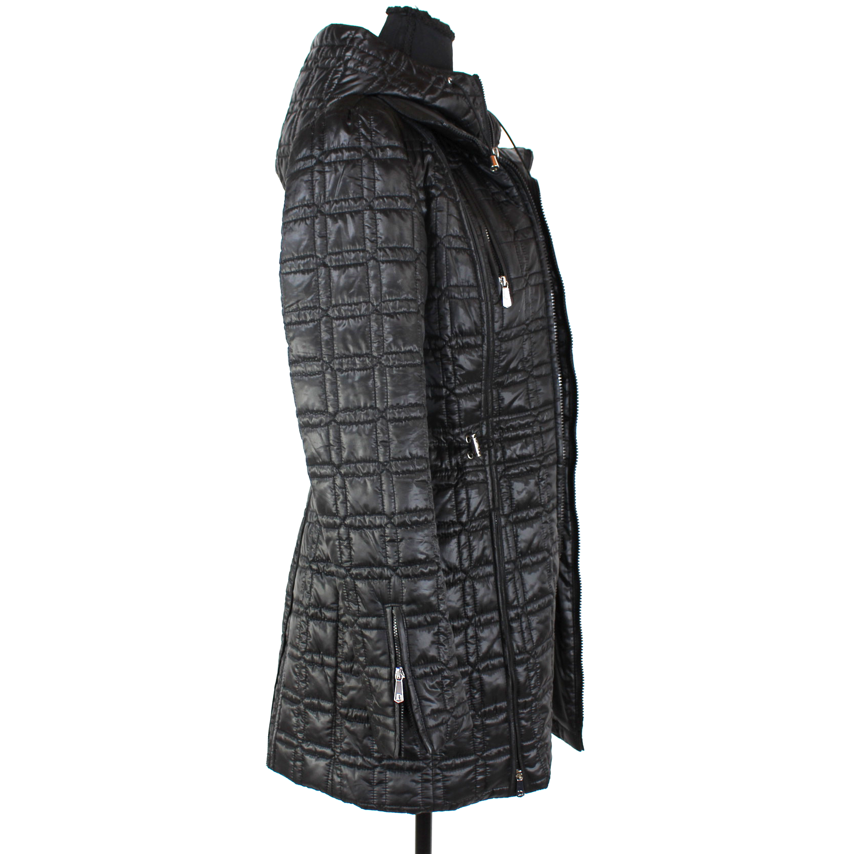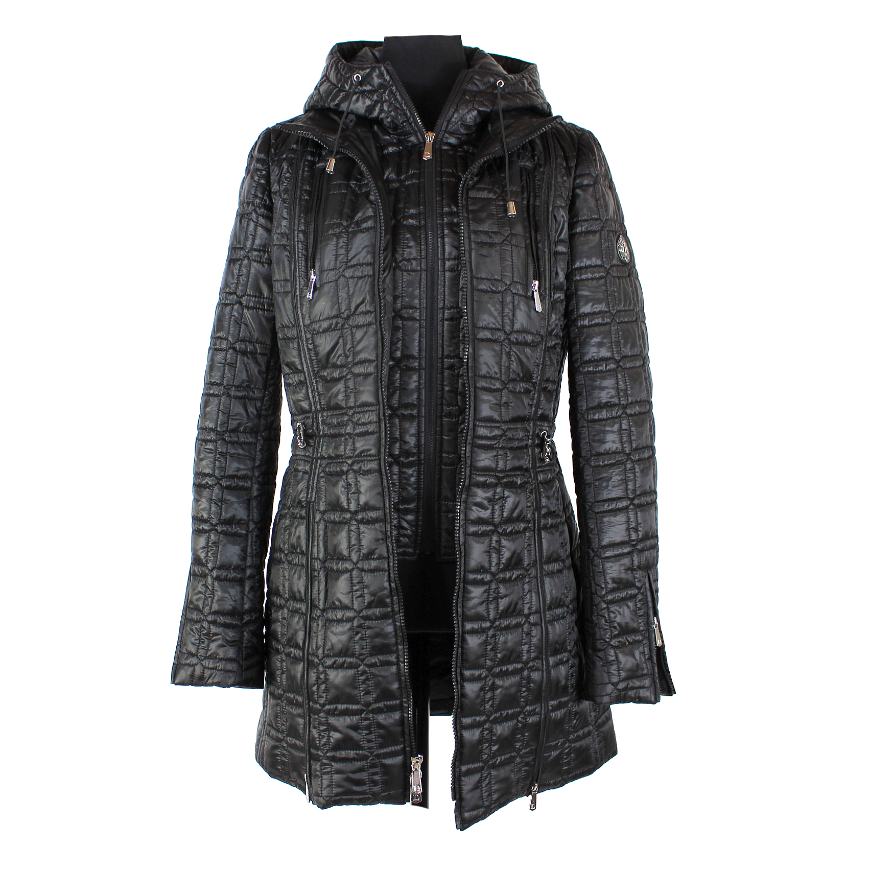 Dawn Levy Winny Black Quilted 2-Layer Hooded Zip Up Coat Jacket
