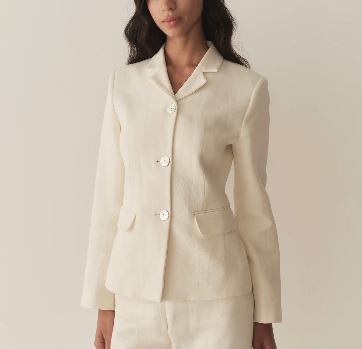 Doen Heirloom Lennon Blazer Single Breasted Shell Button Salt IvoryJacket