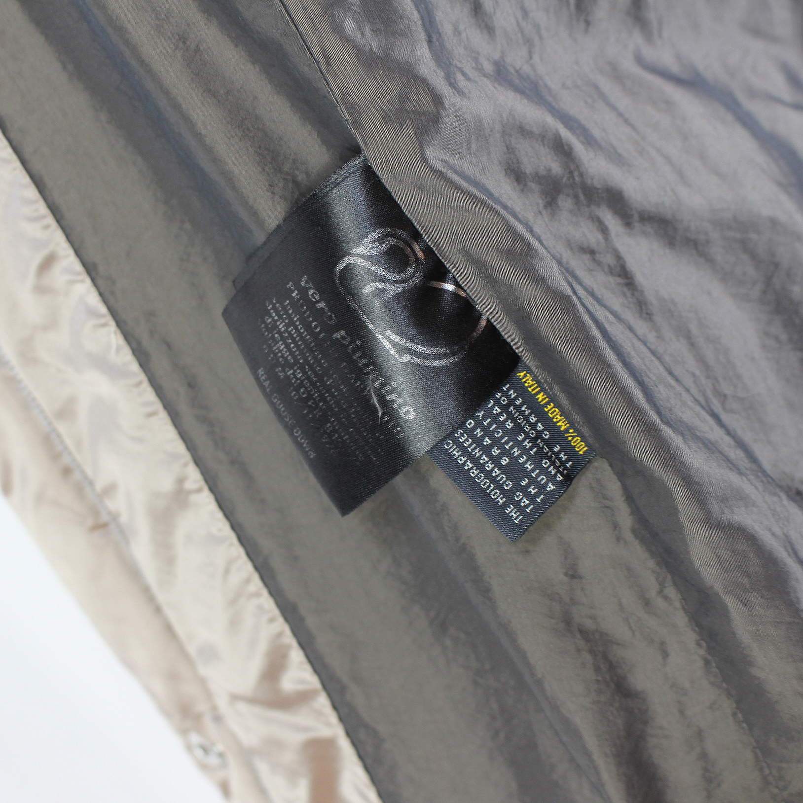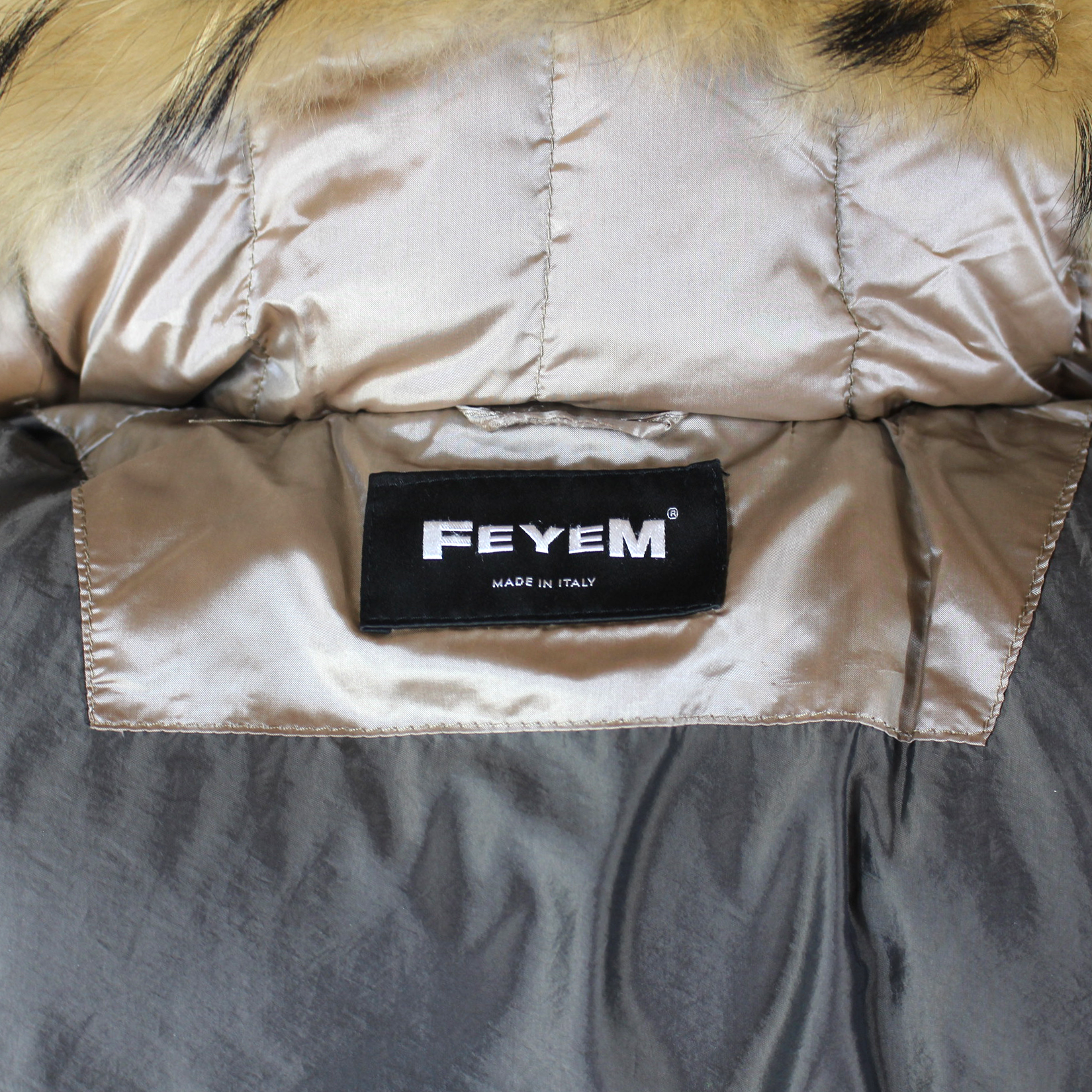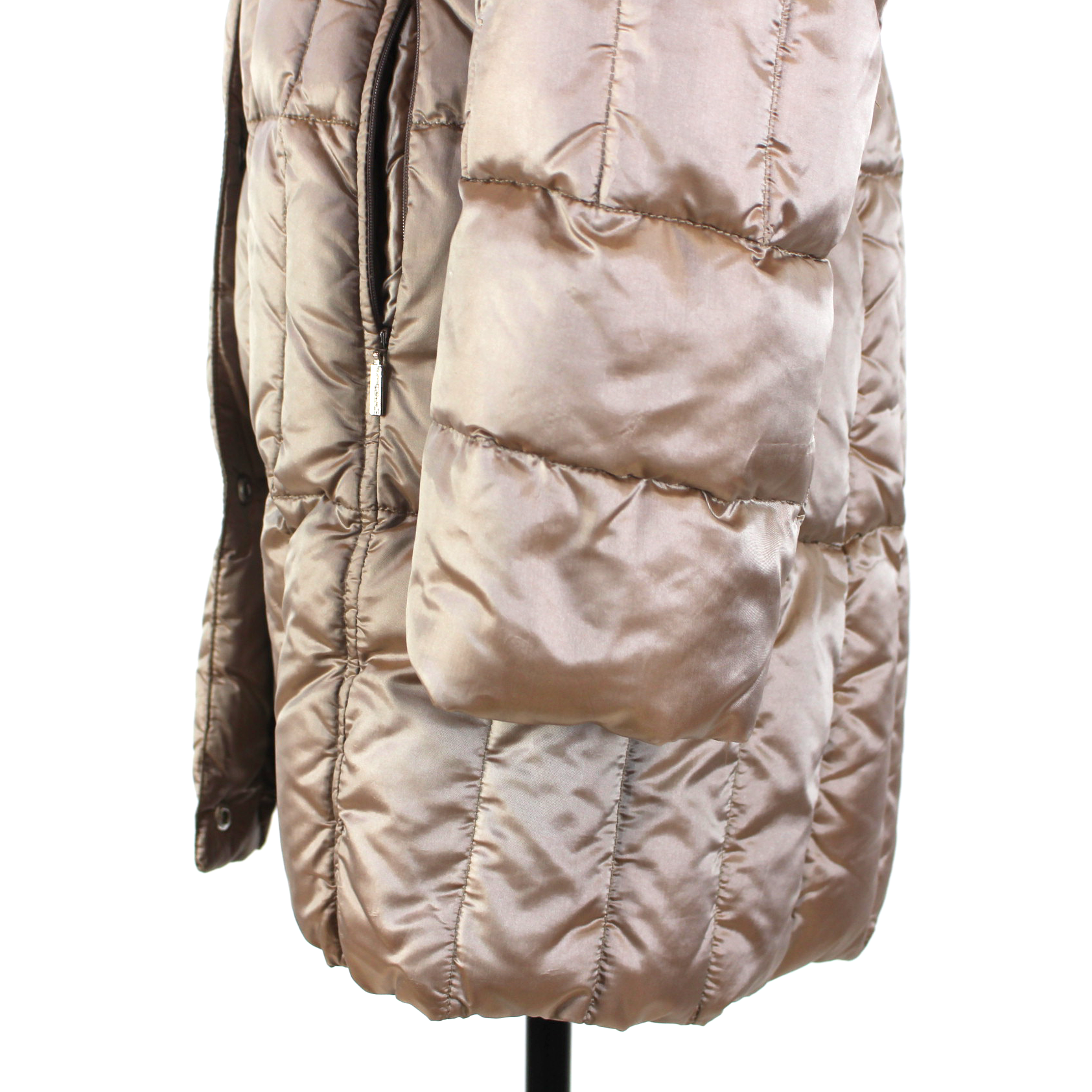Feyem Goose Down Insulated Fur Trim Rose Shimmer Belted Puffer Coat
