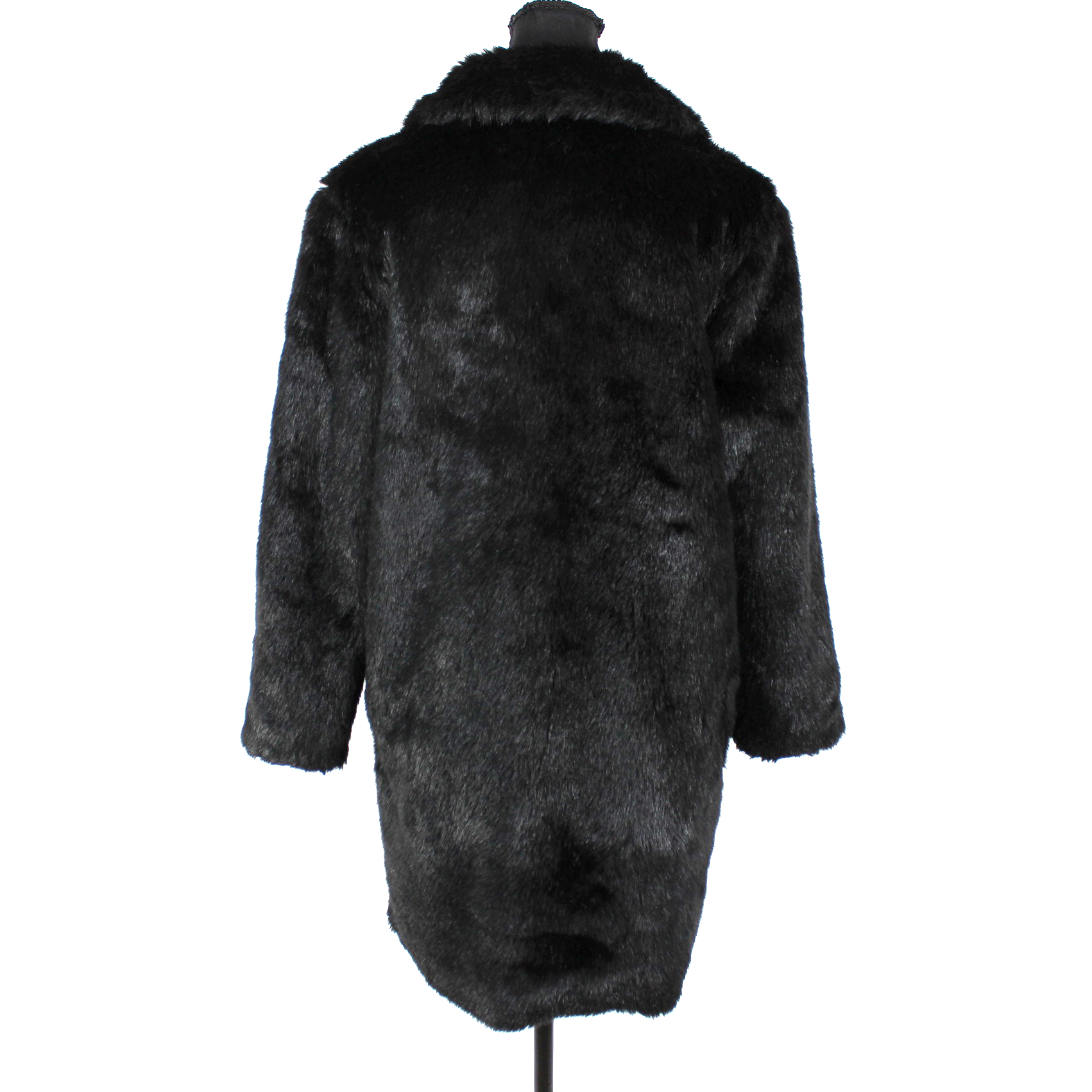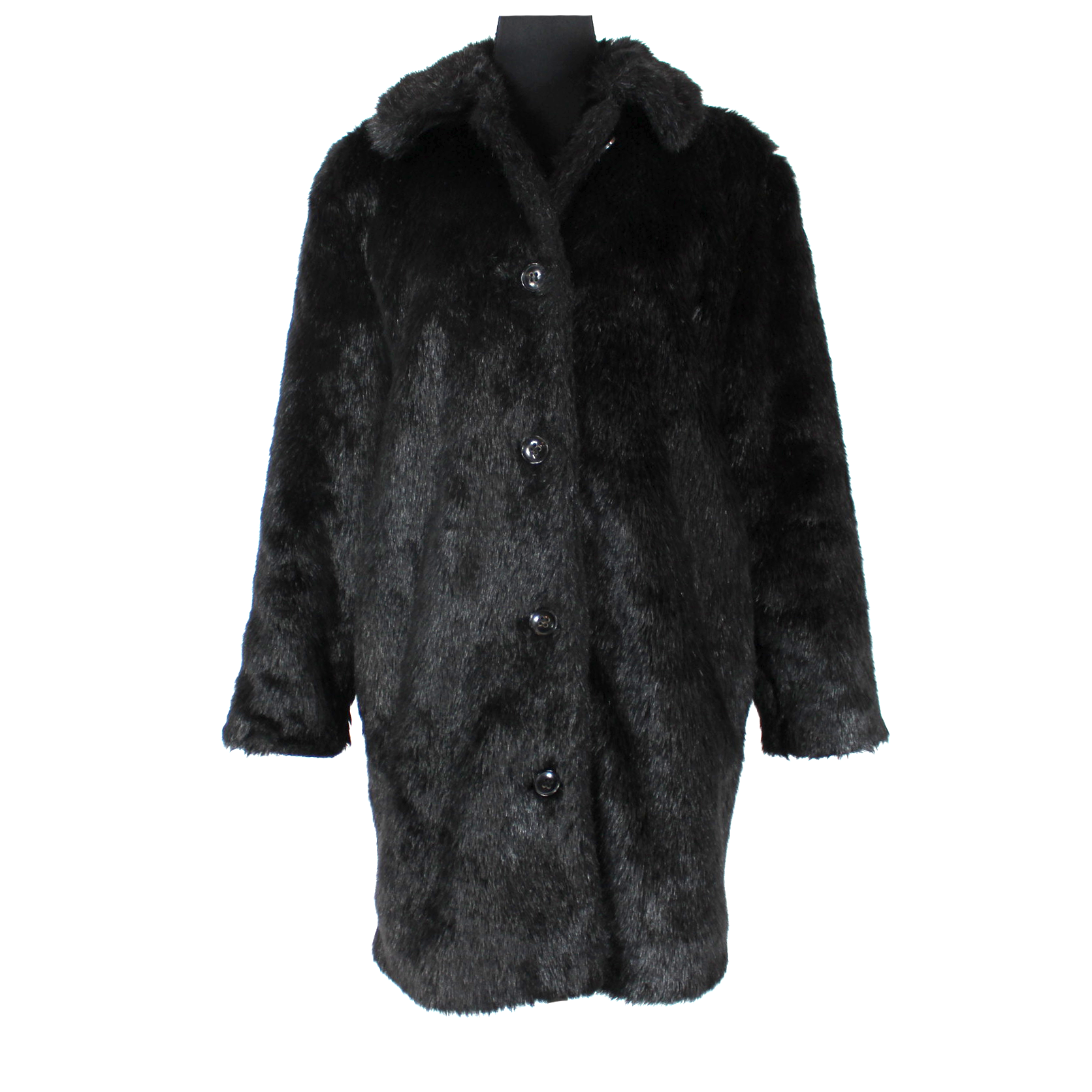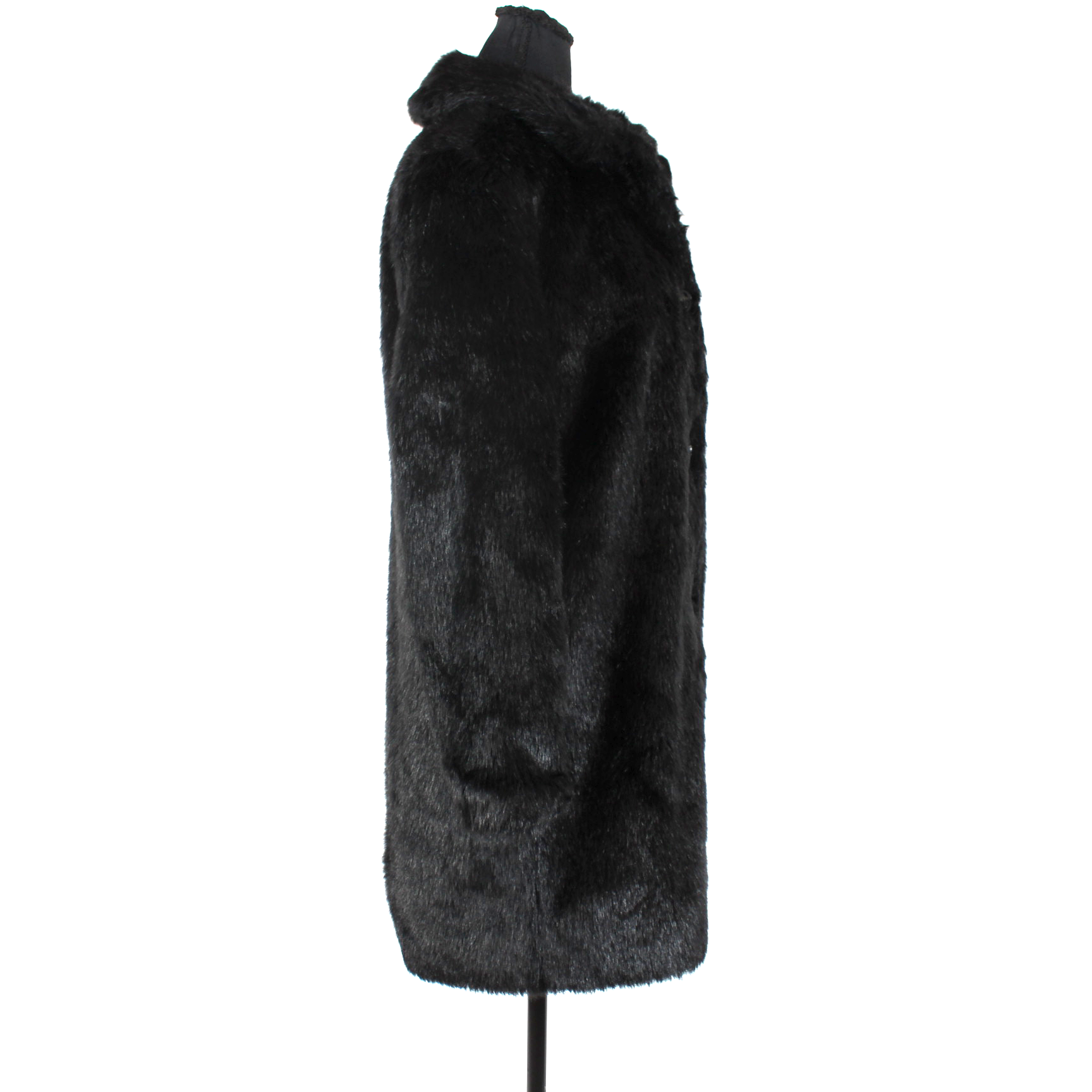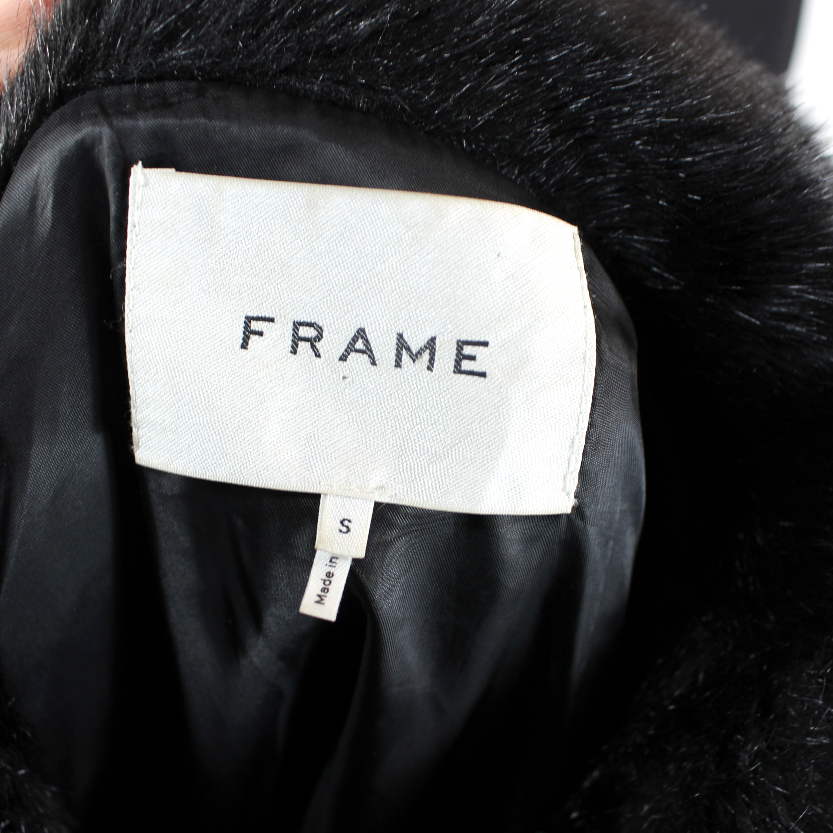 Frame Faux Fur Black Button Up Mid Length Collared Coat Jacket