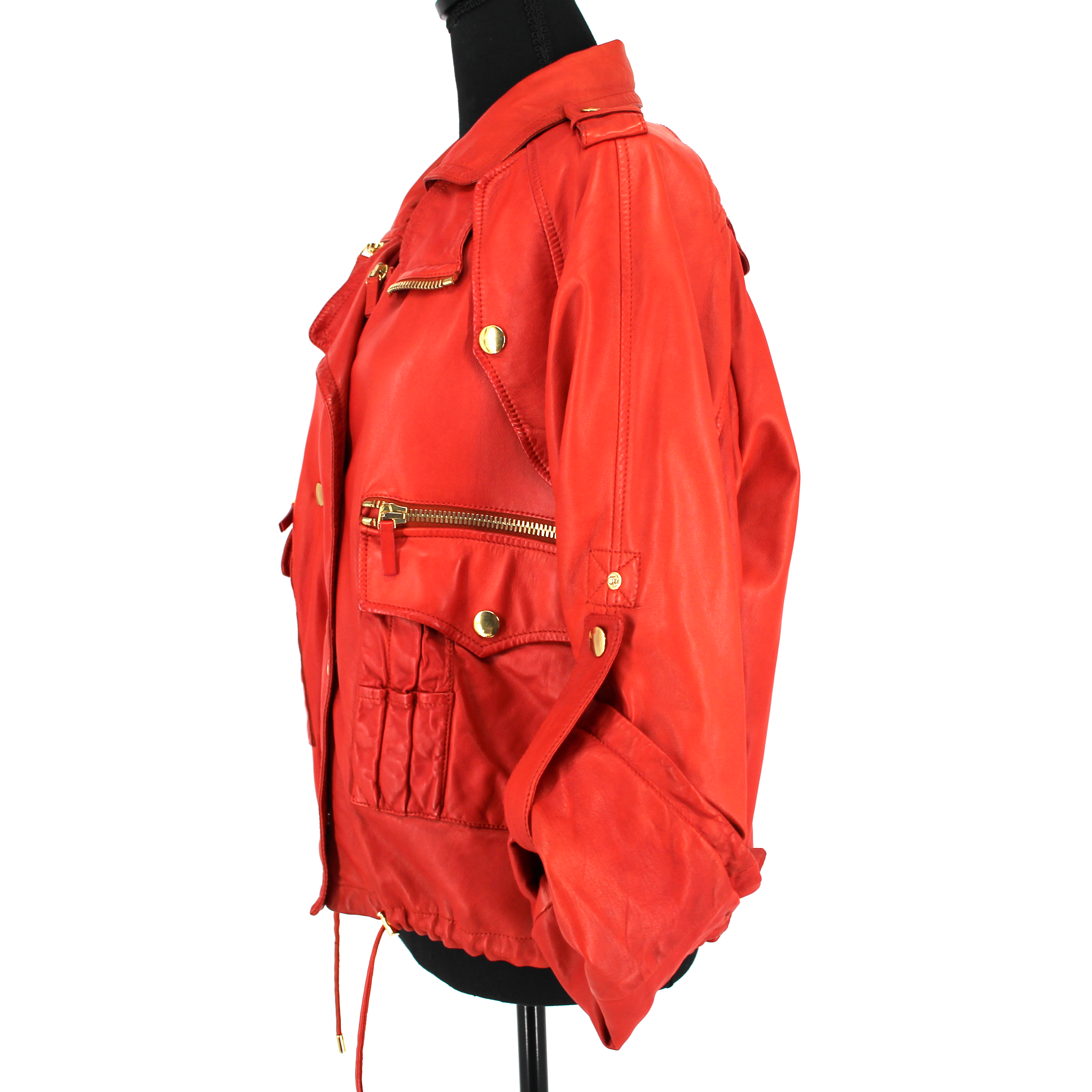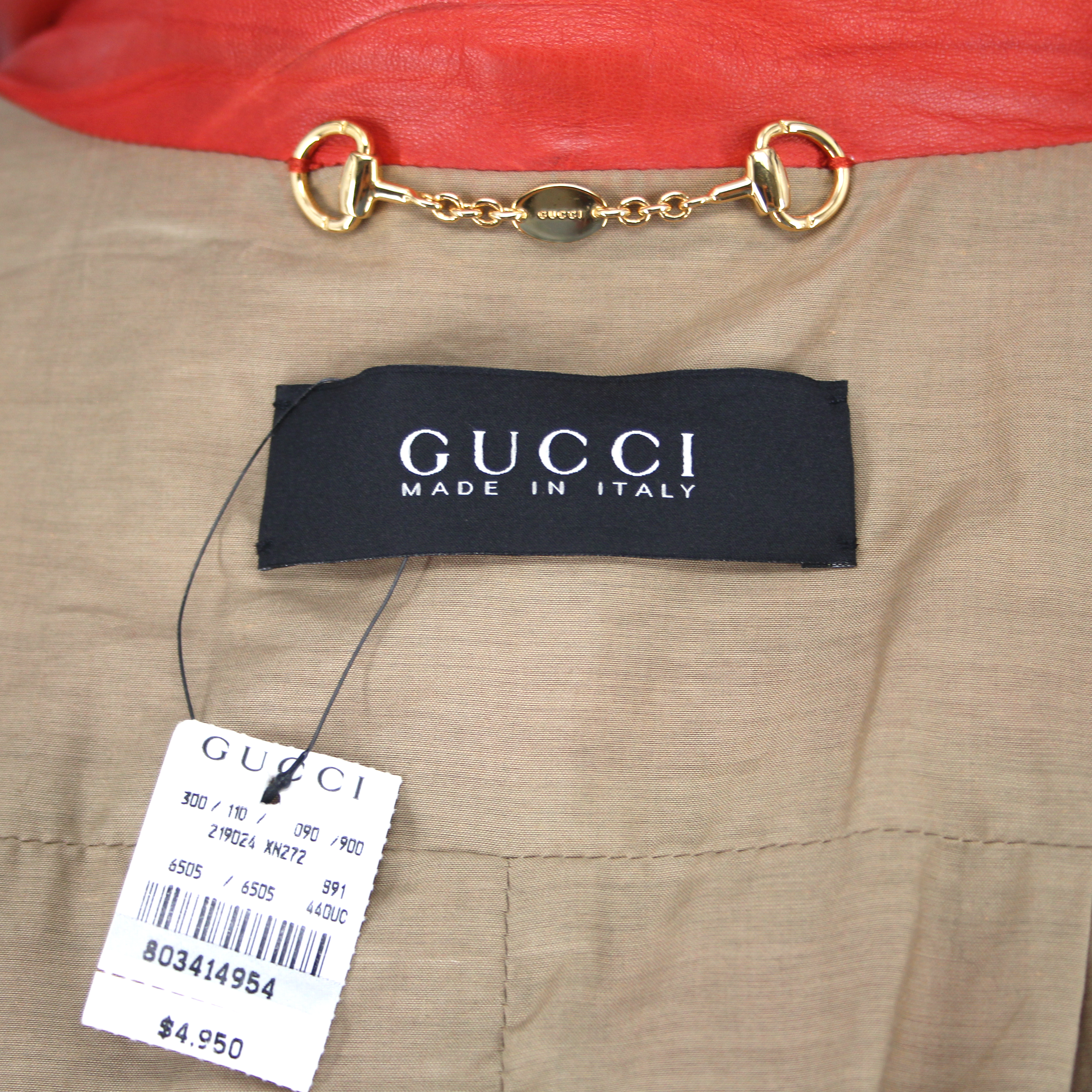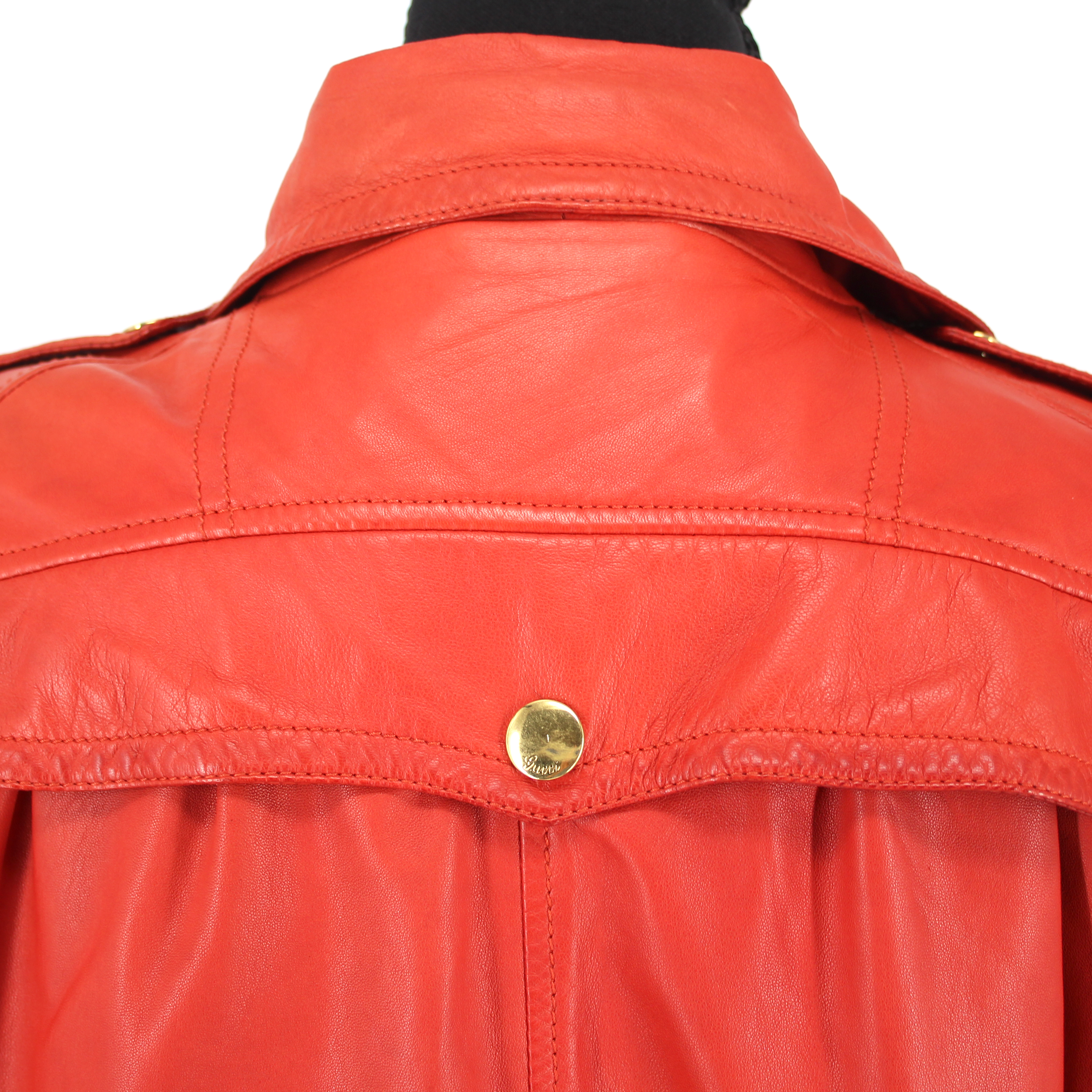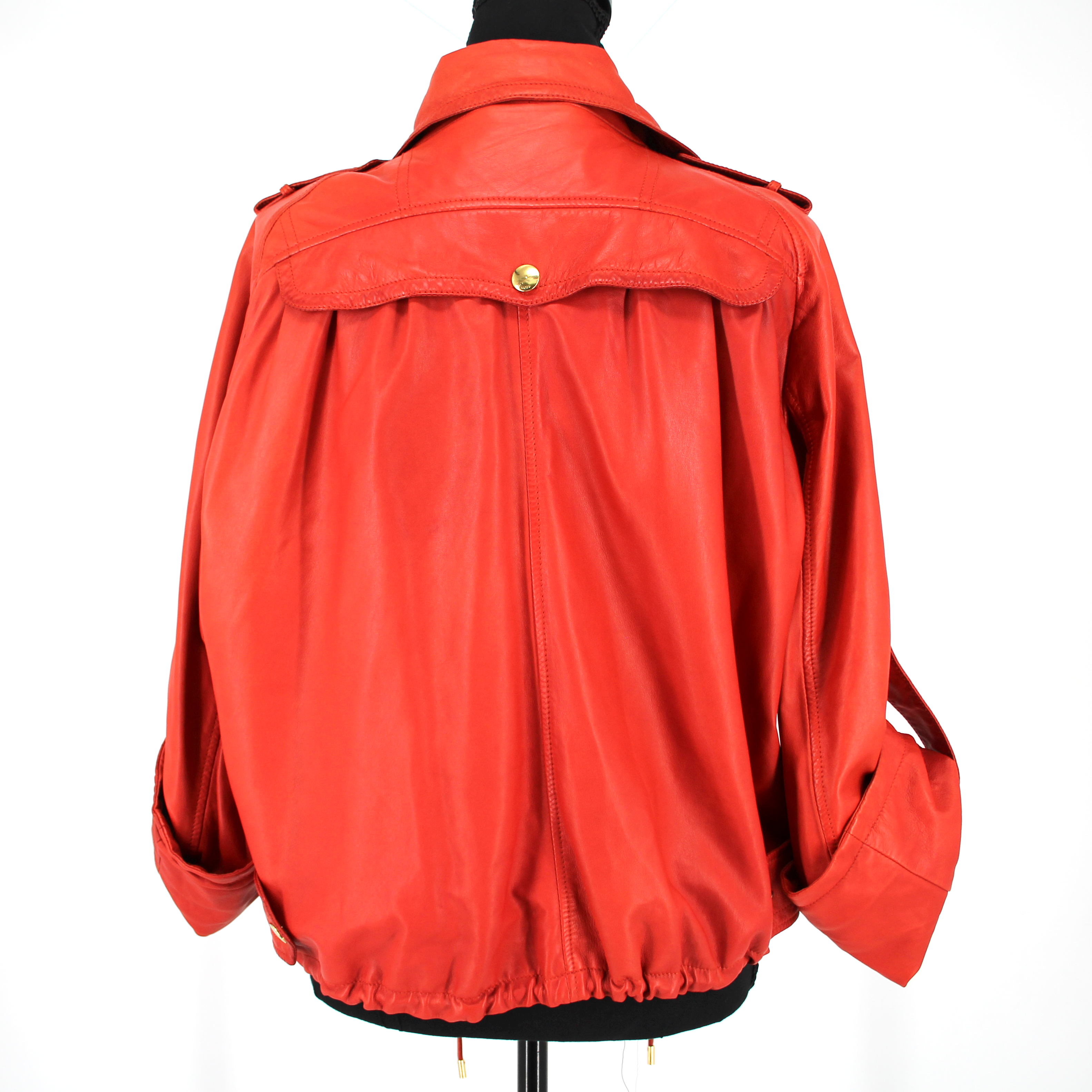 GUCCI Orange Leather Gold Zip Up Rolled Long Sleeves Moto Jacket.