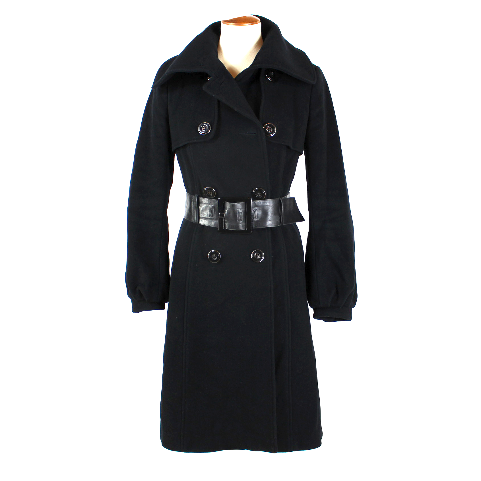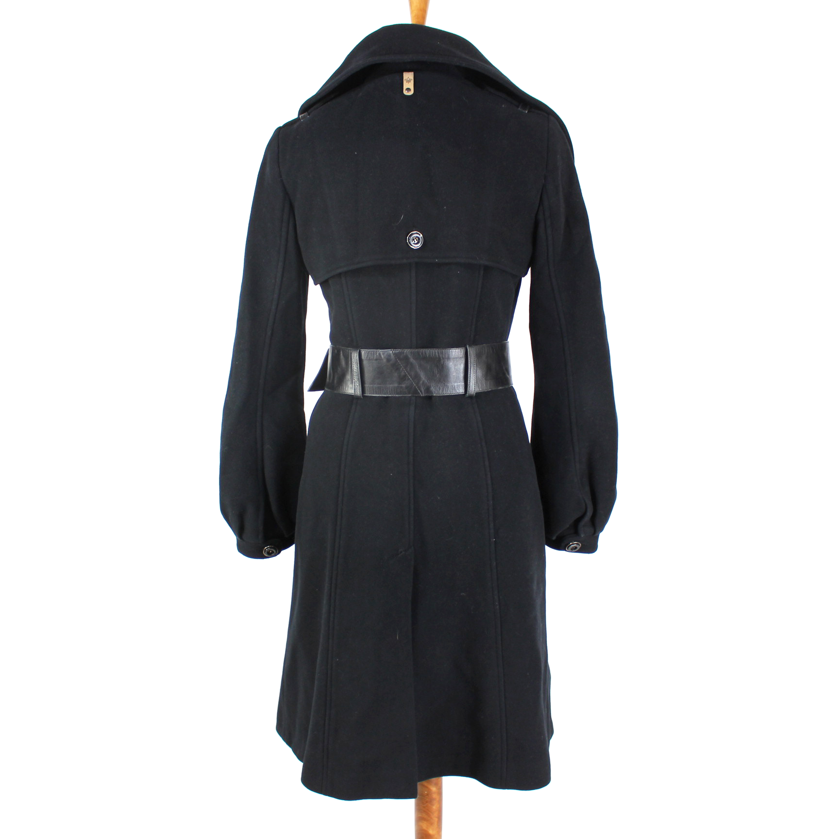 Mackage Black Wool Cashmere Double Breasted Leather Belted Coat