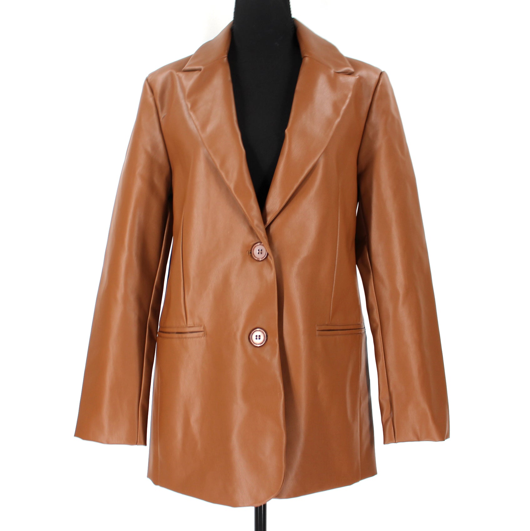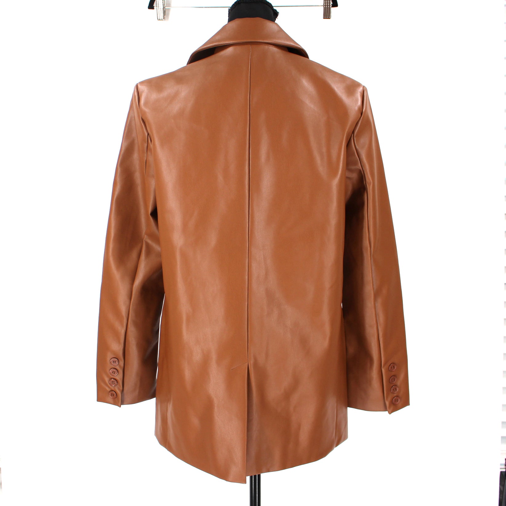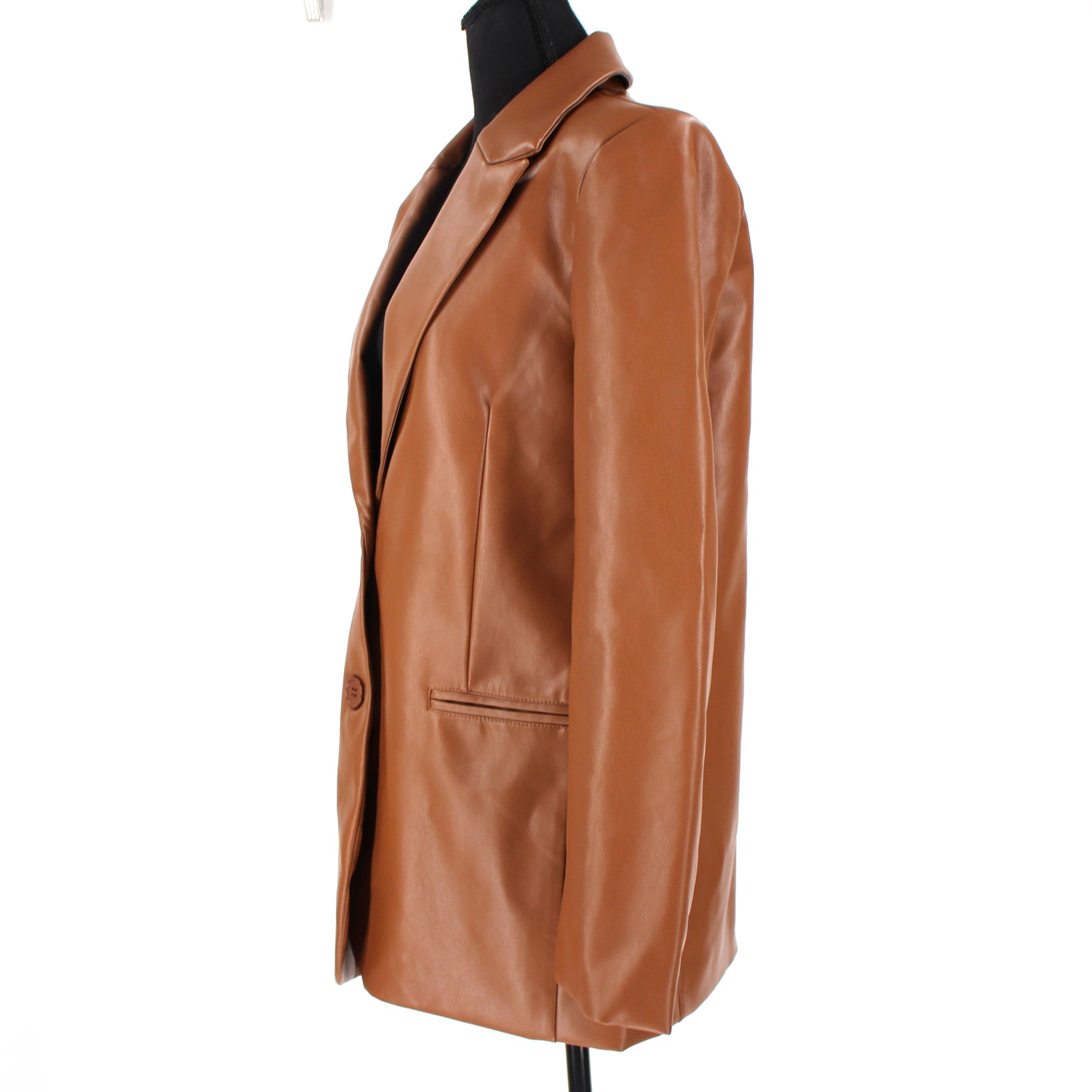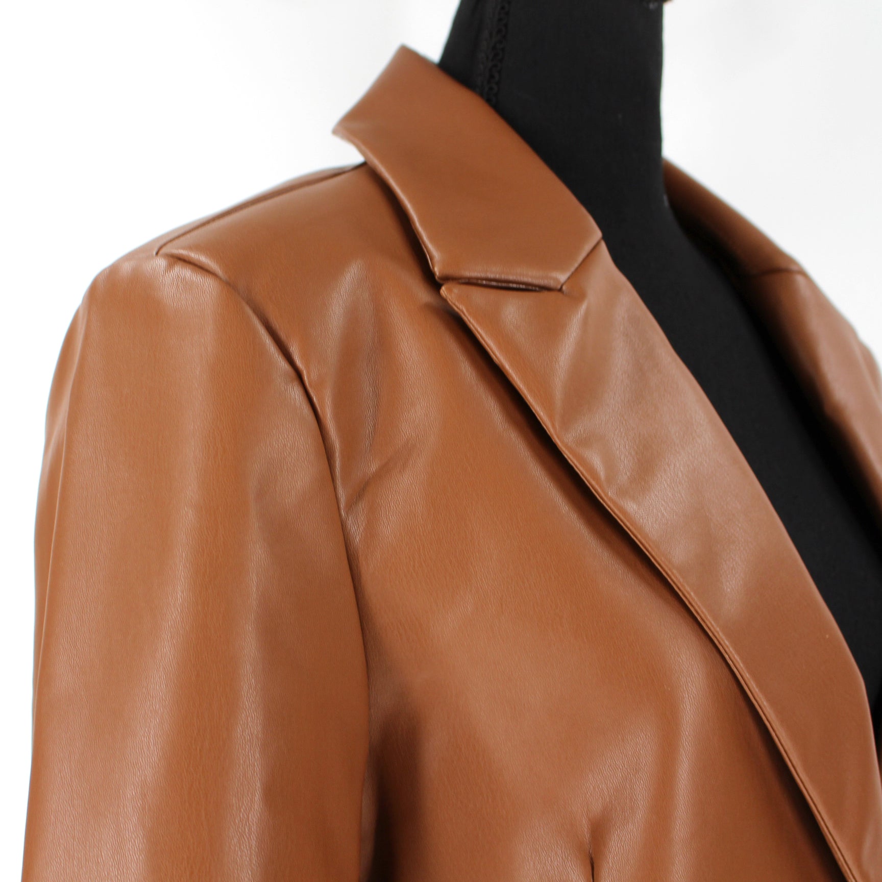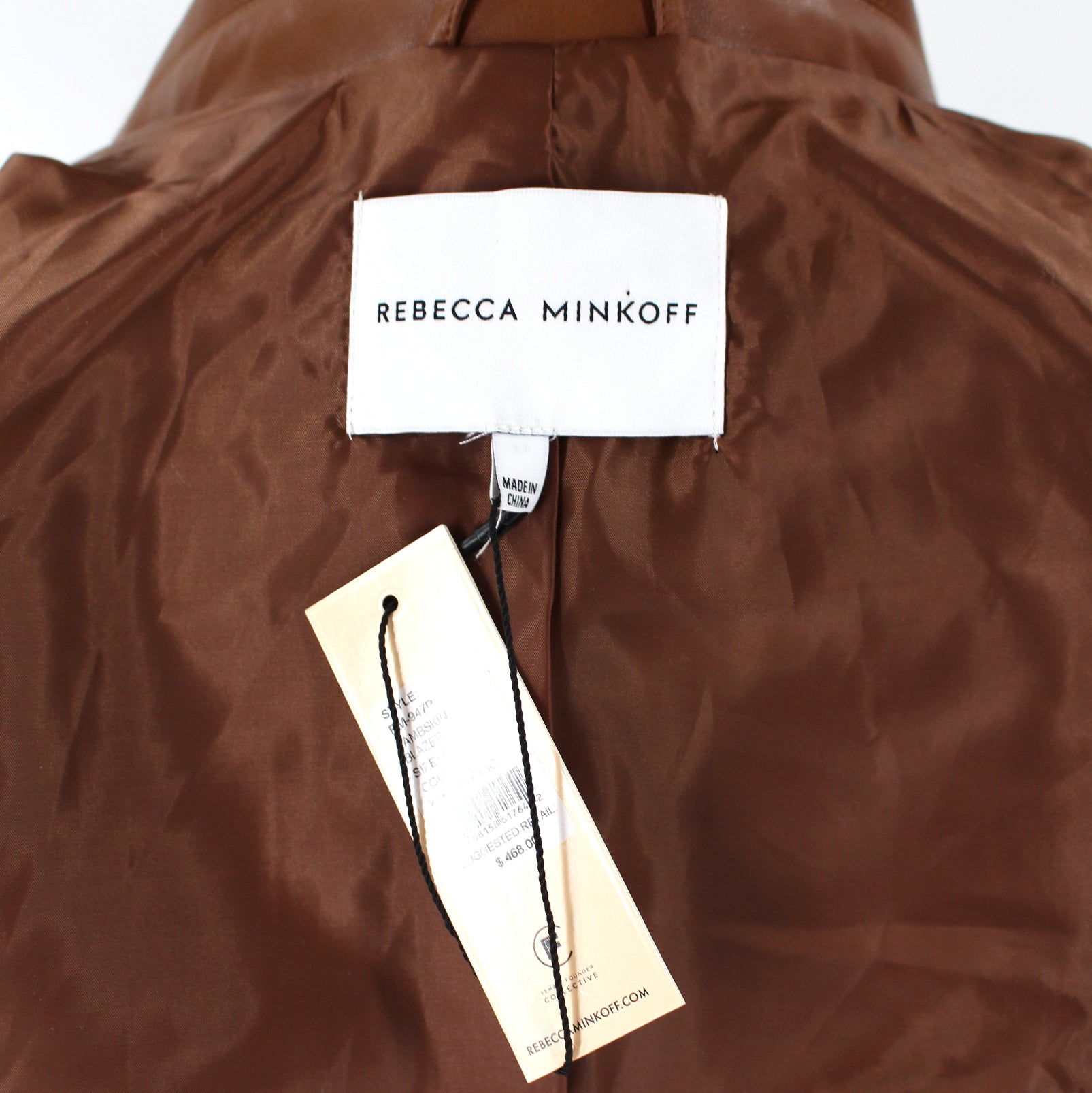 Rebecca Minkoff Cognac Brown Lambskin Leather Single Breasted Blazer Coat