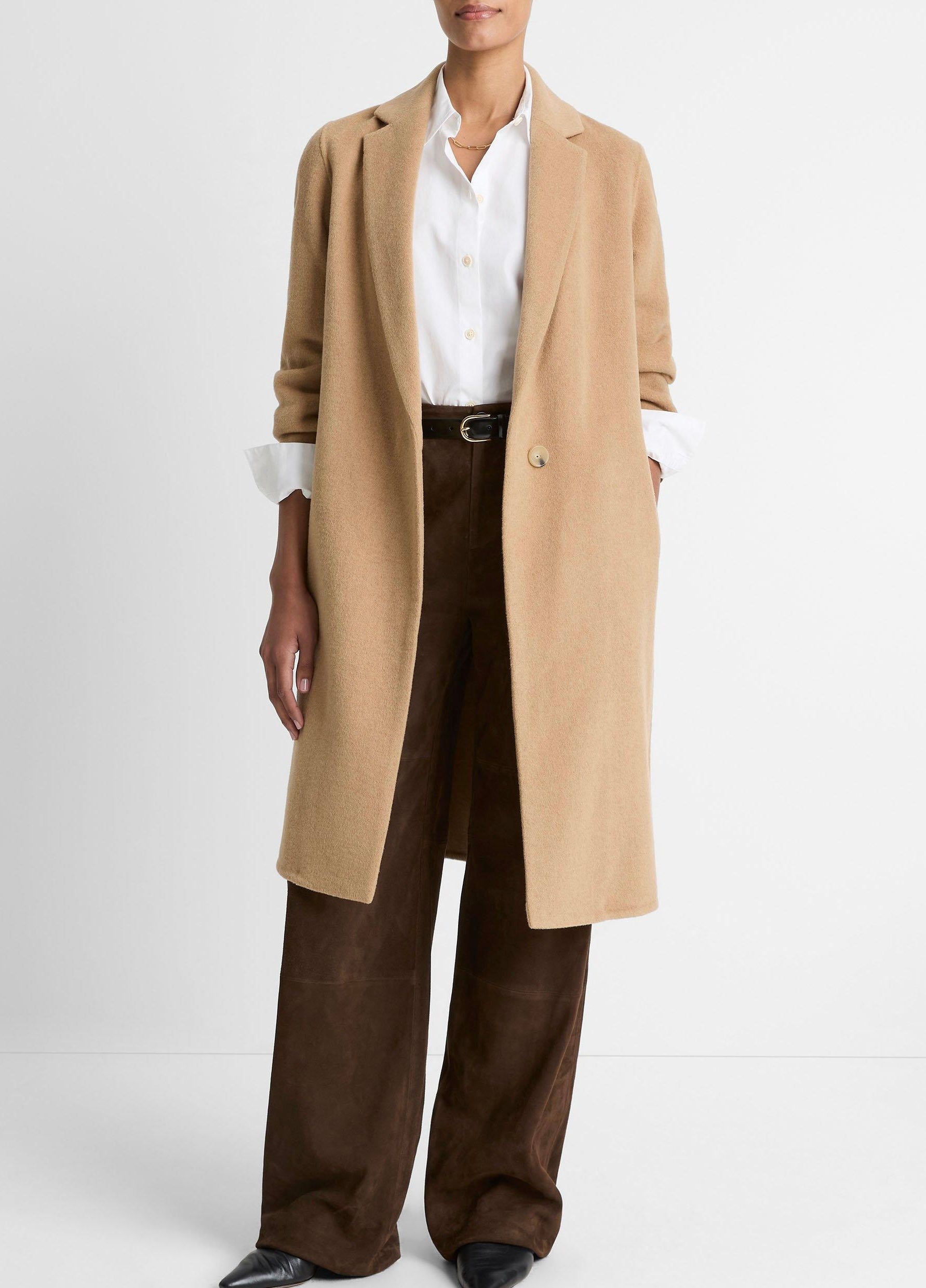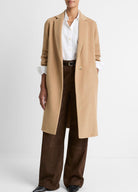 VINCE. Wool Blend Camel Tan One Button Long Coat
