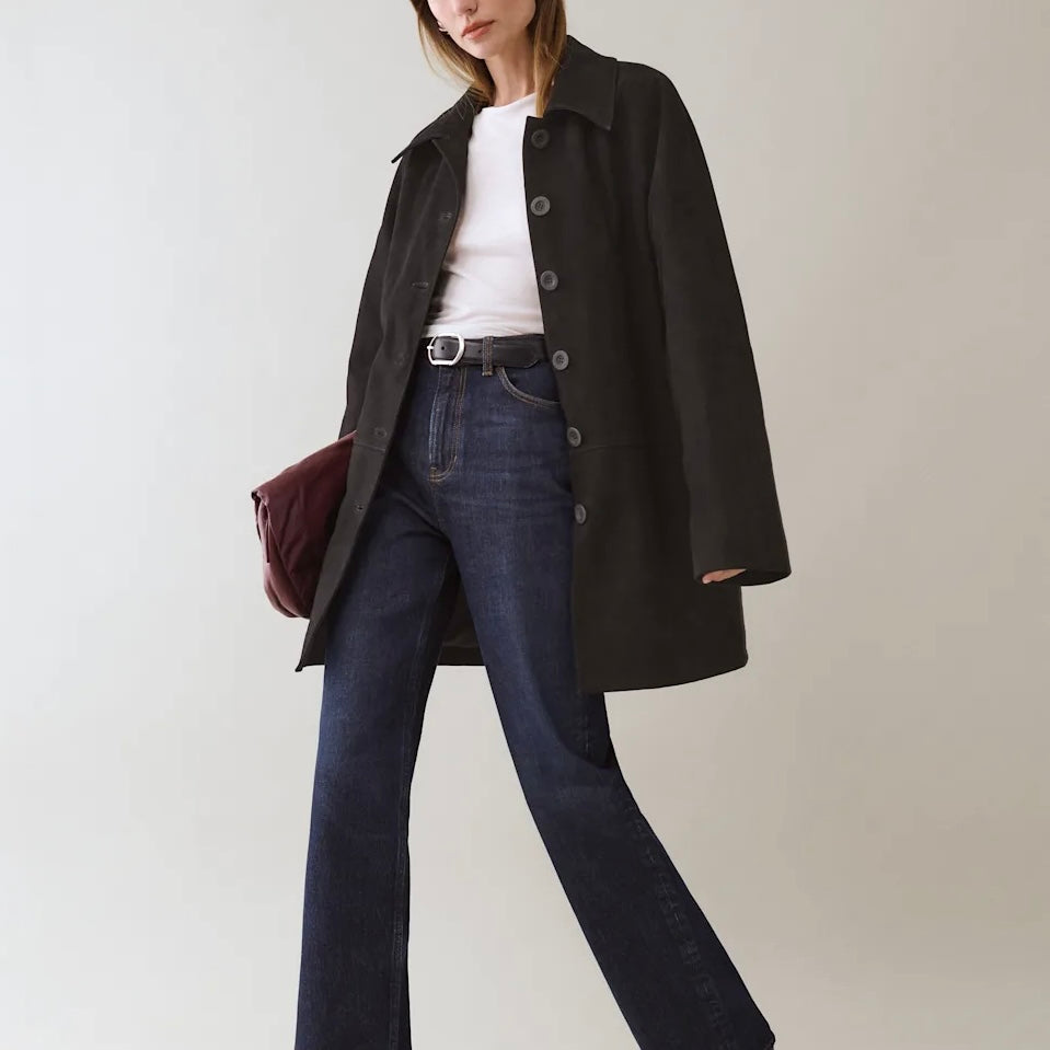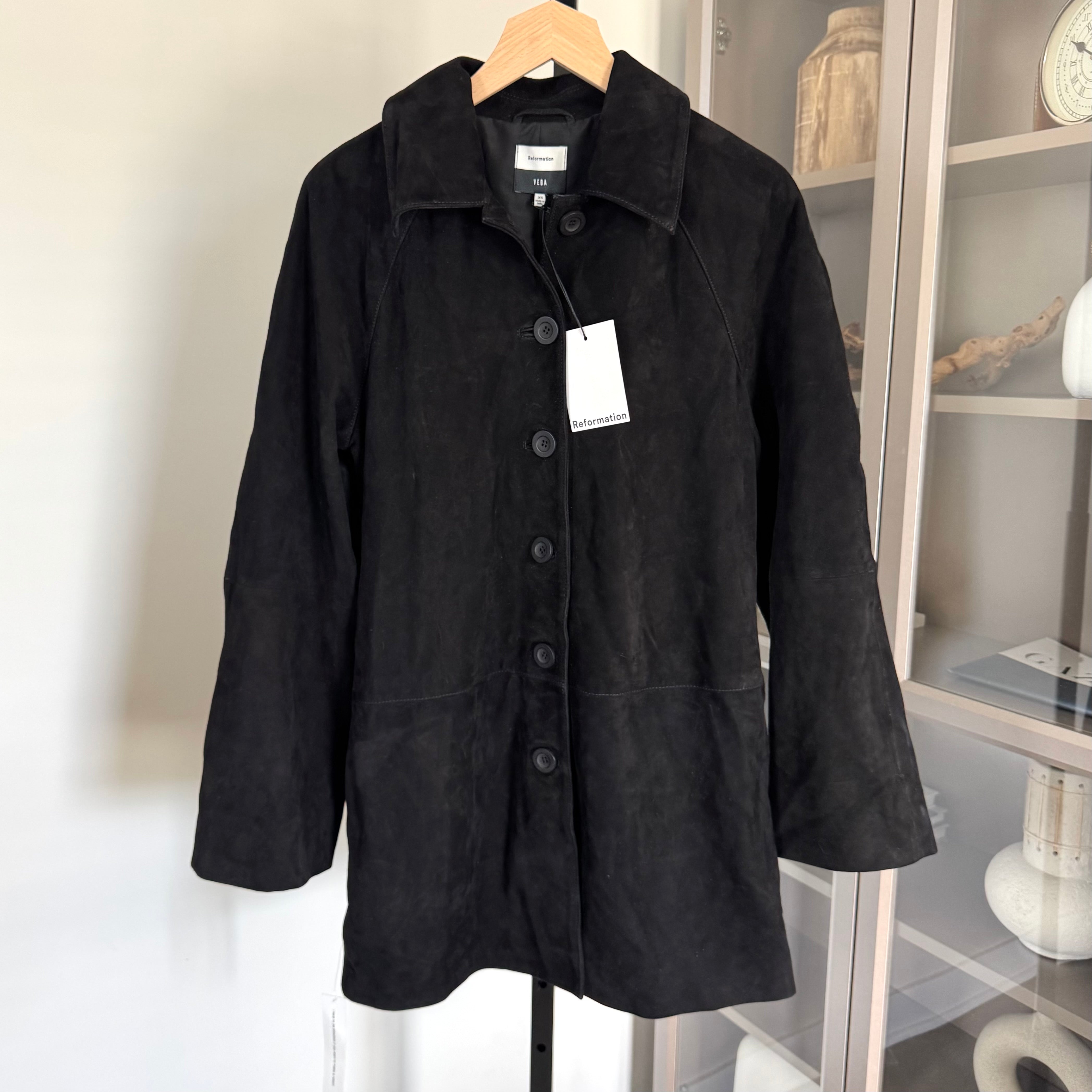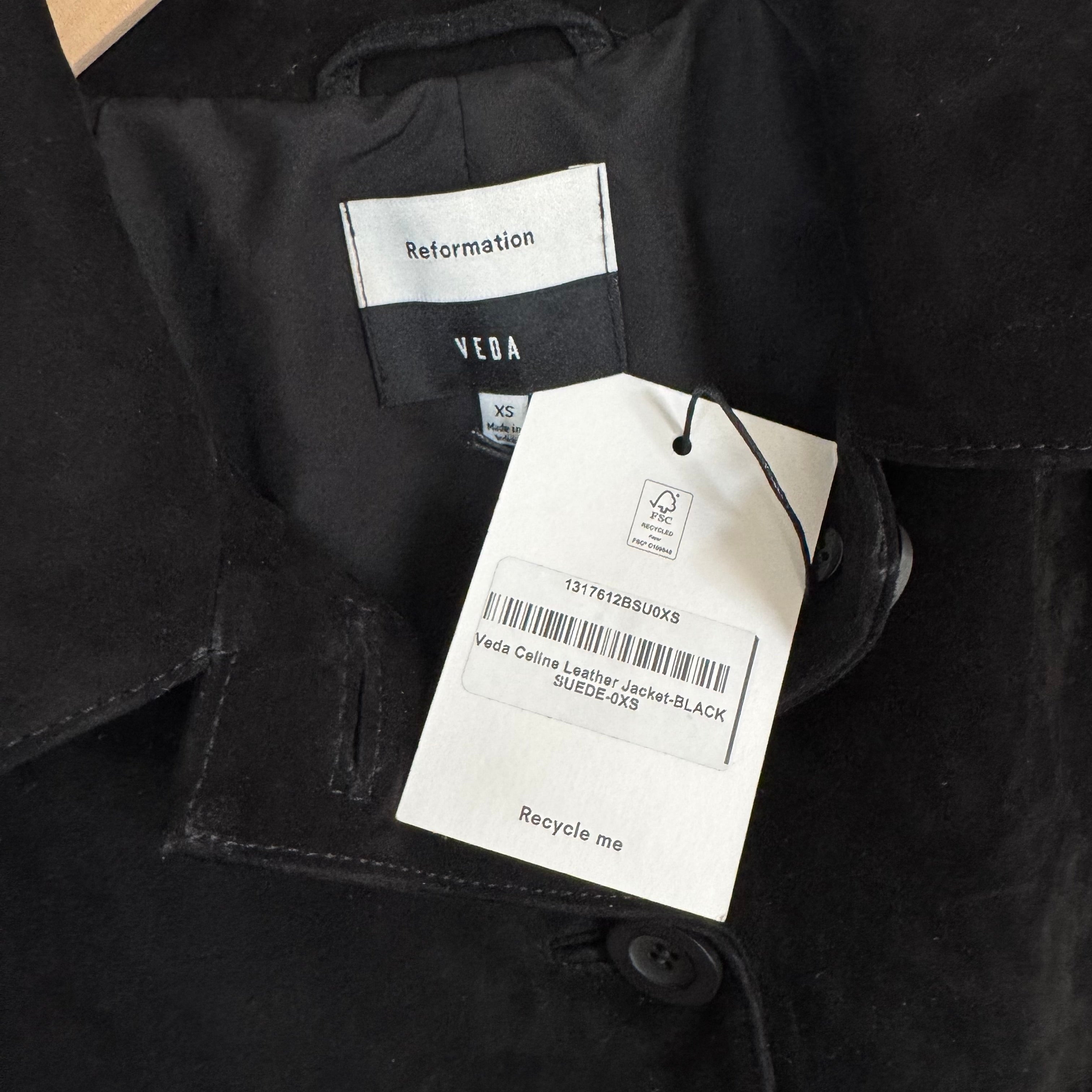 Reformation Veda Celine Leather Suede Slim Fit Black Jacket