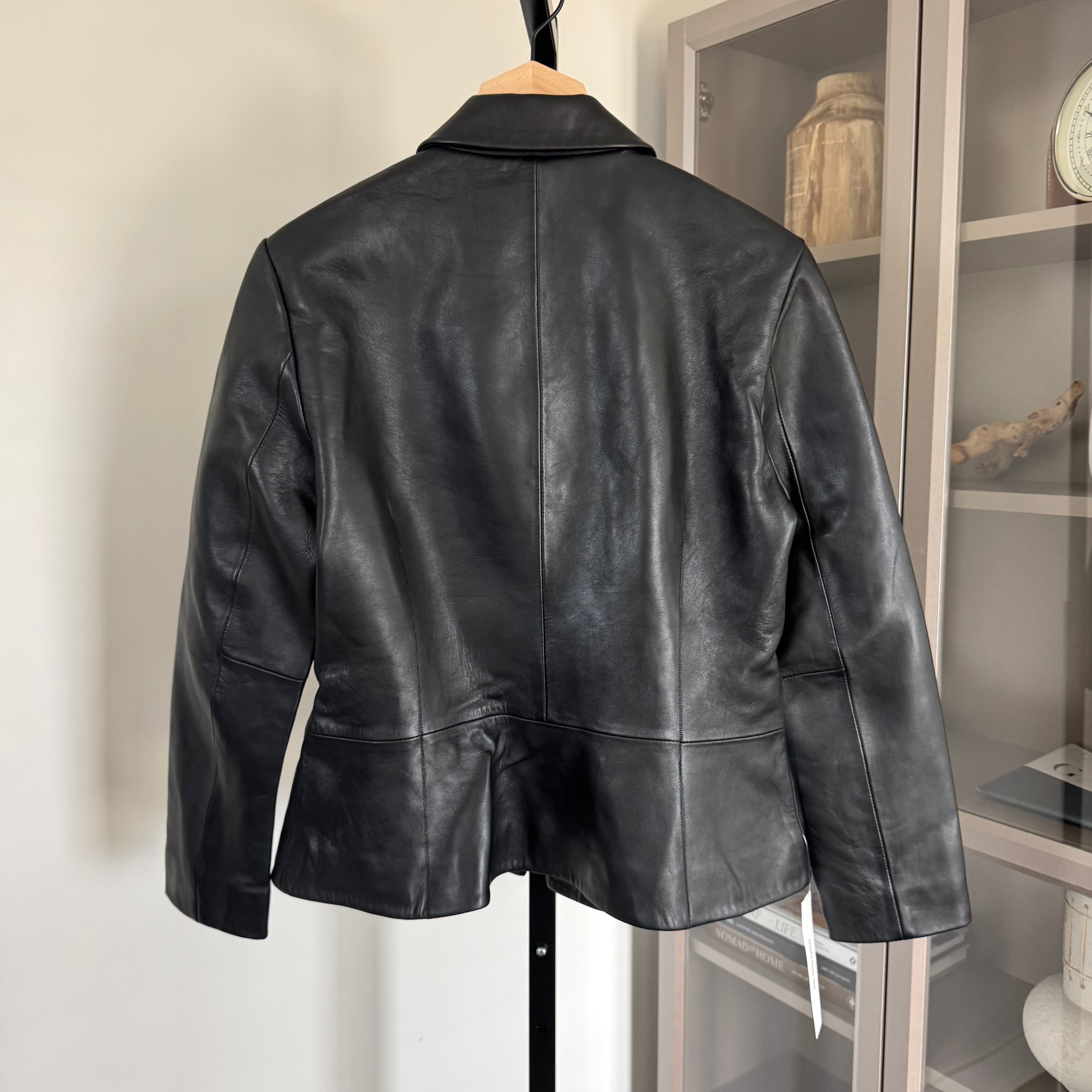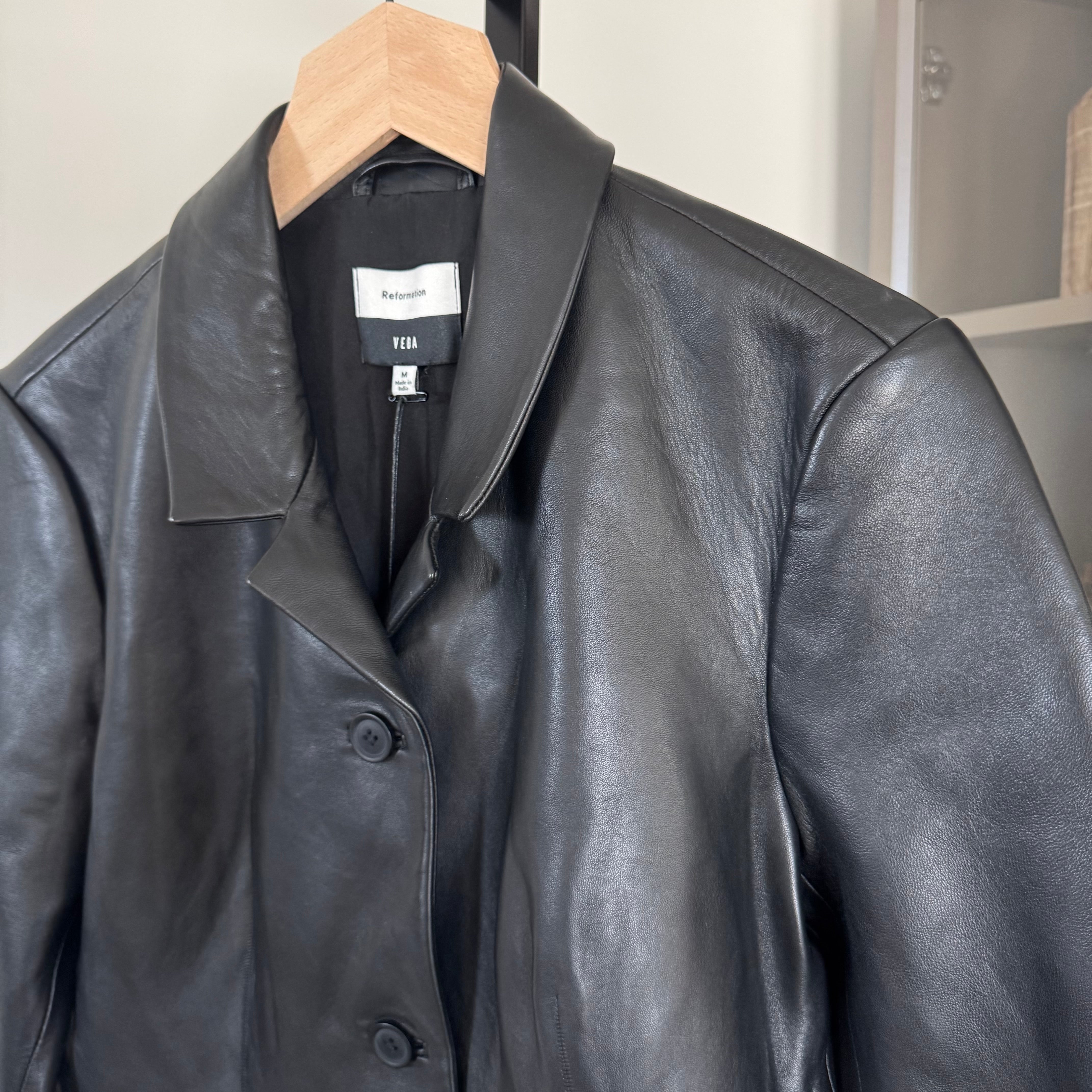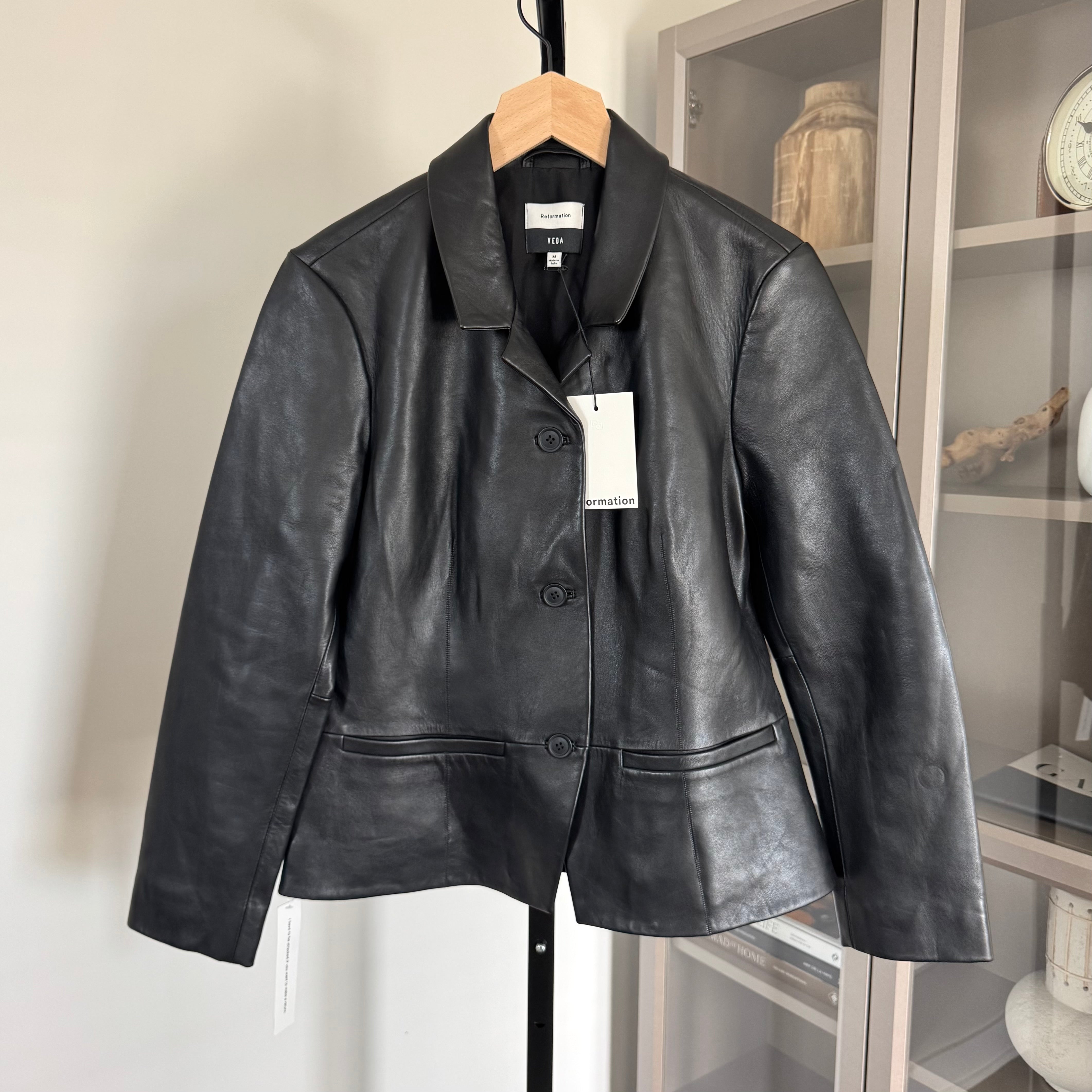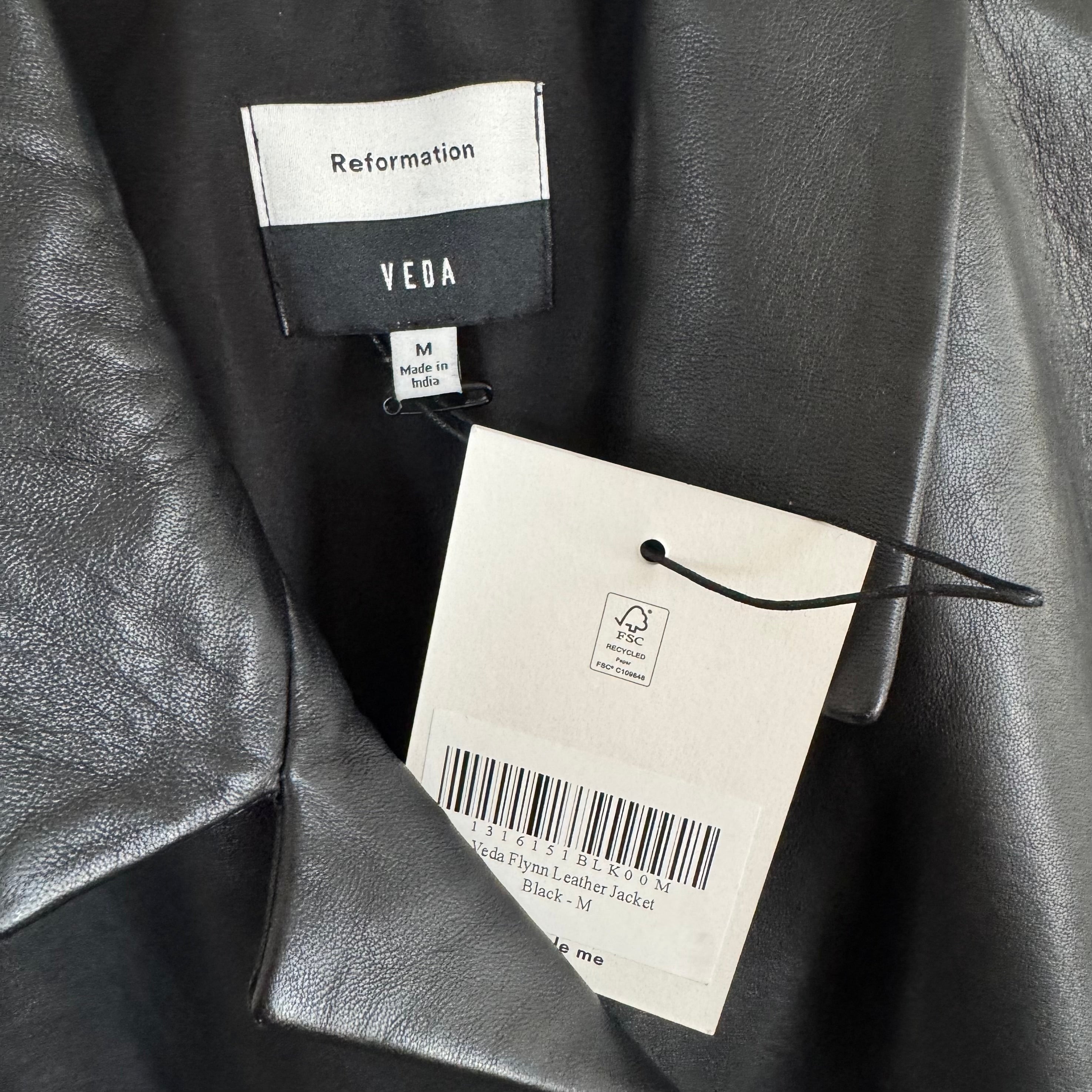 Reformation Veda Flynn Black Peplum Hemline Leather Jacket