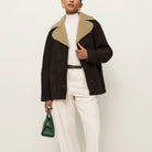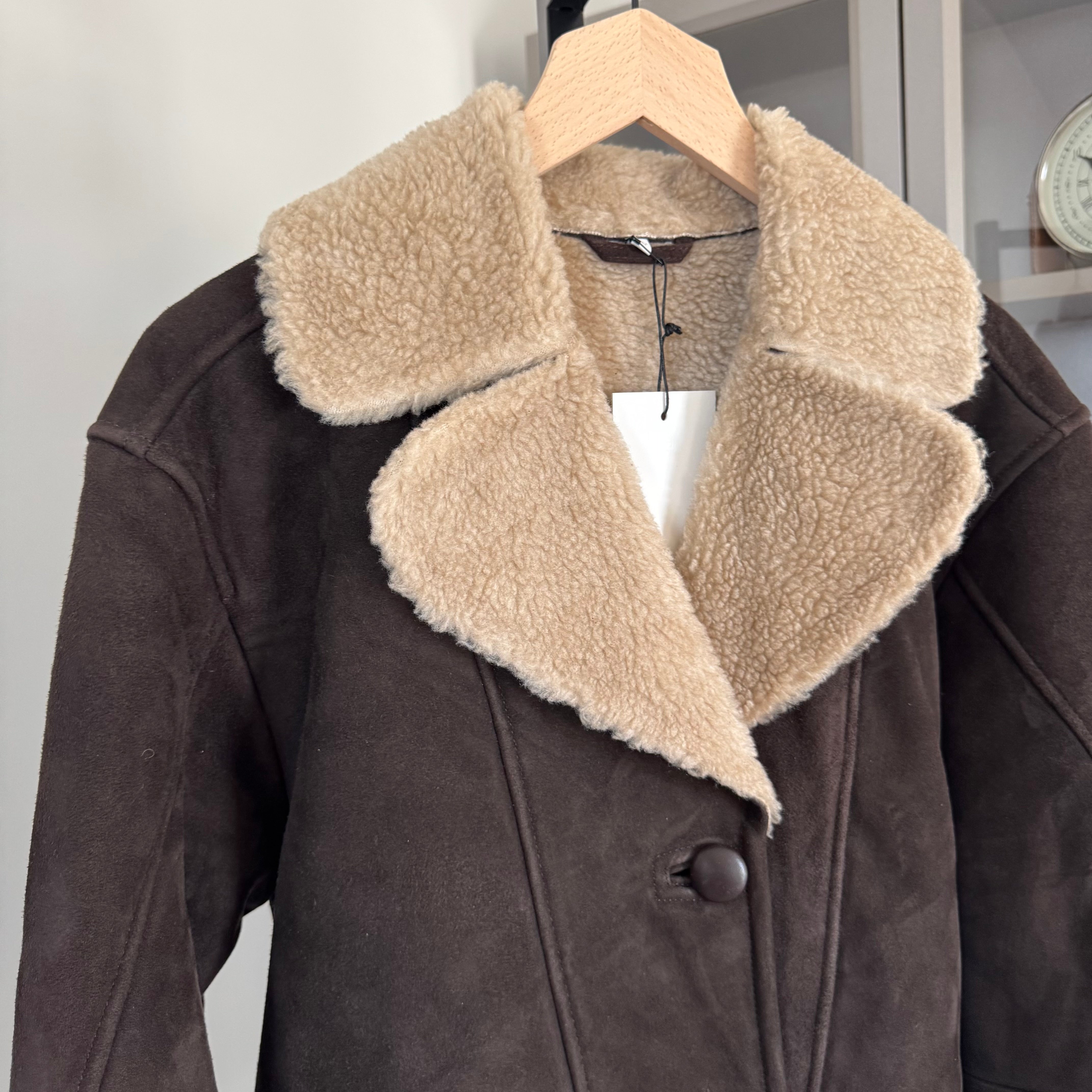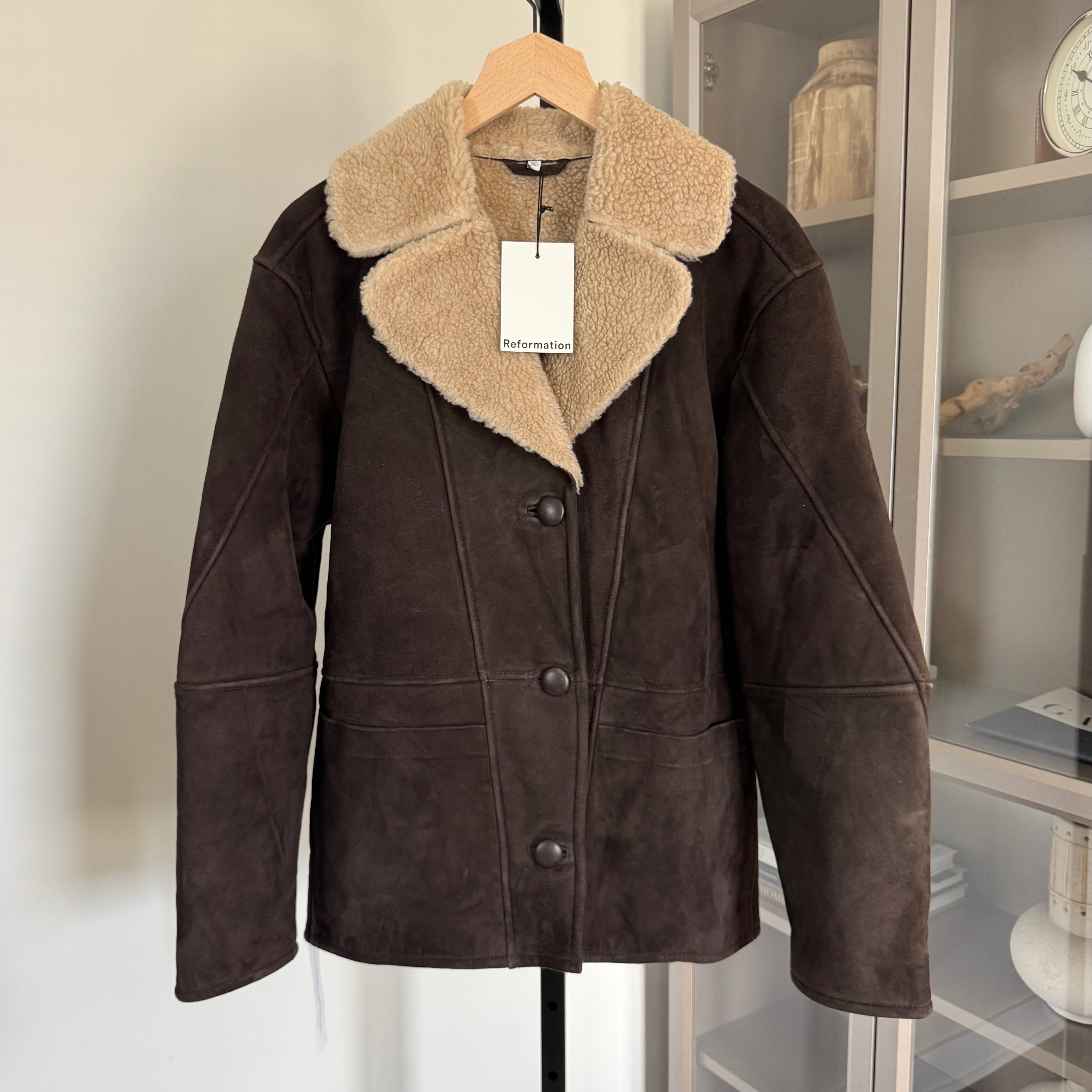 Reformation Veda Luca Suede Mole Brown Shearling Lined Coat