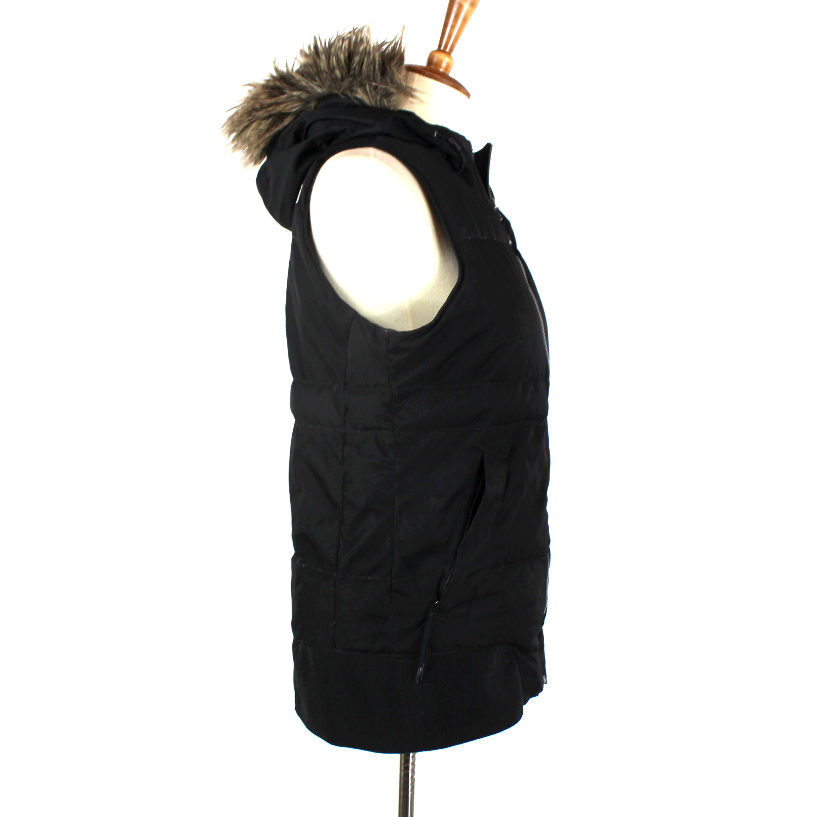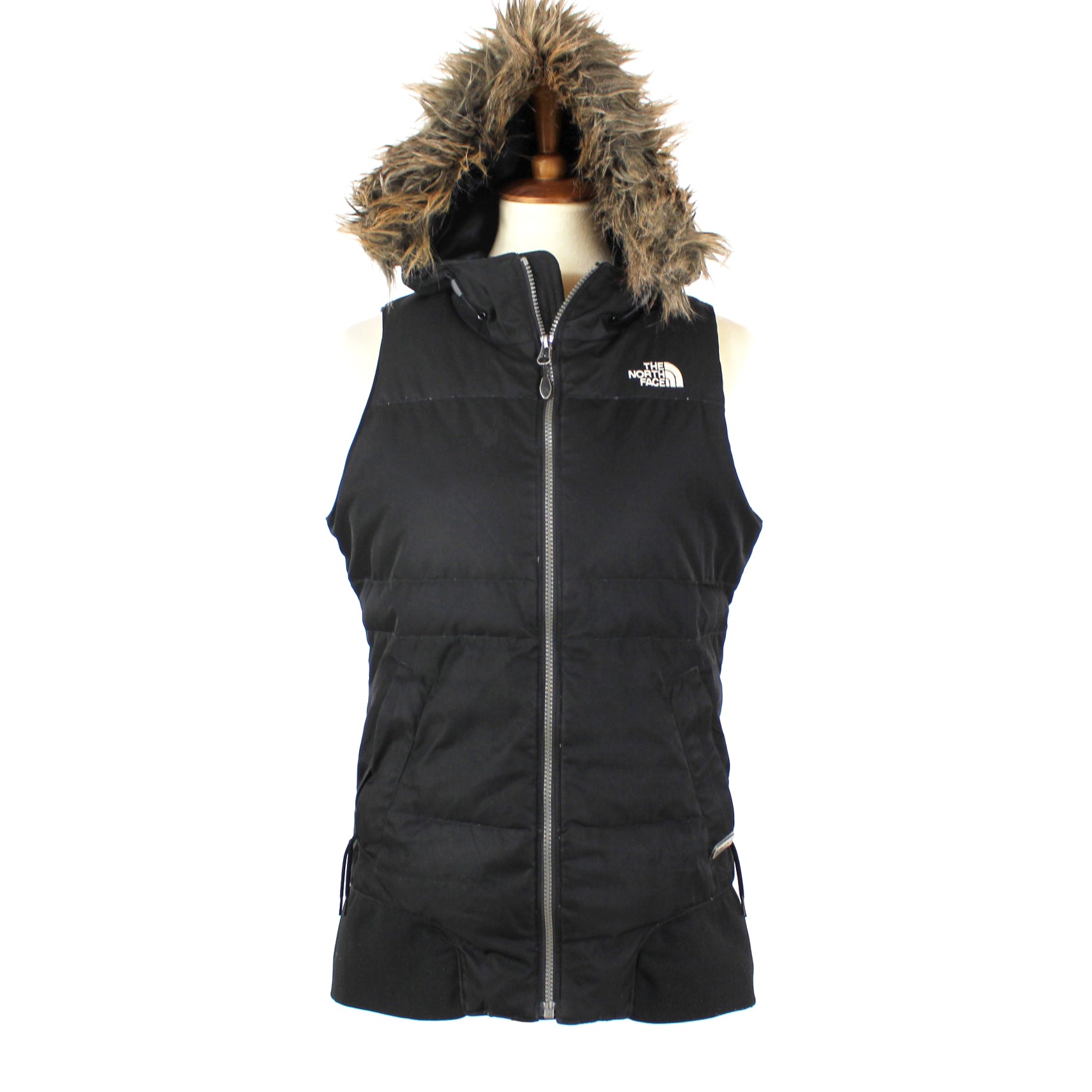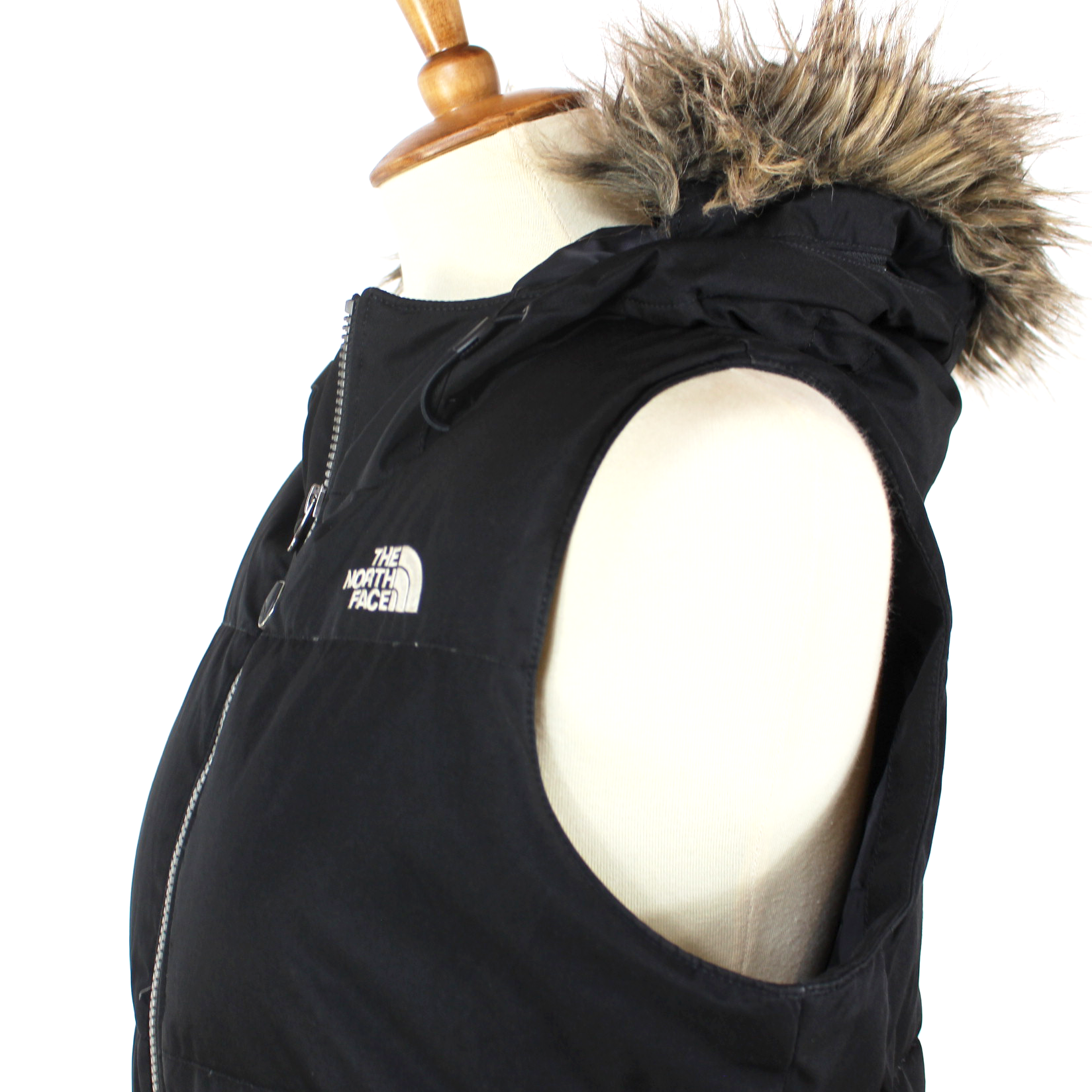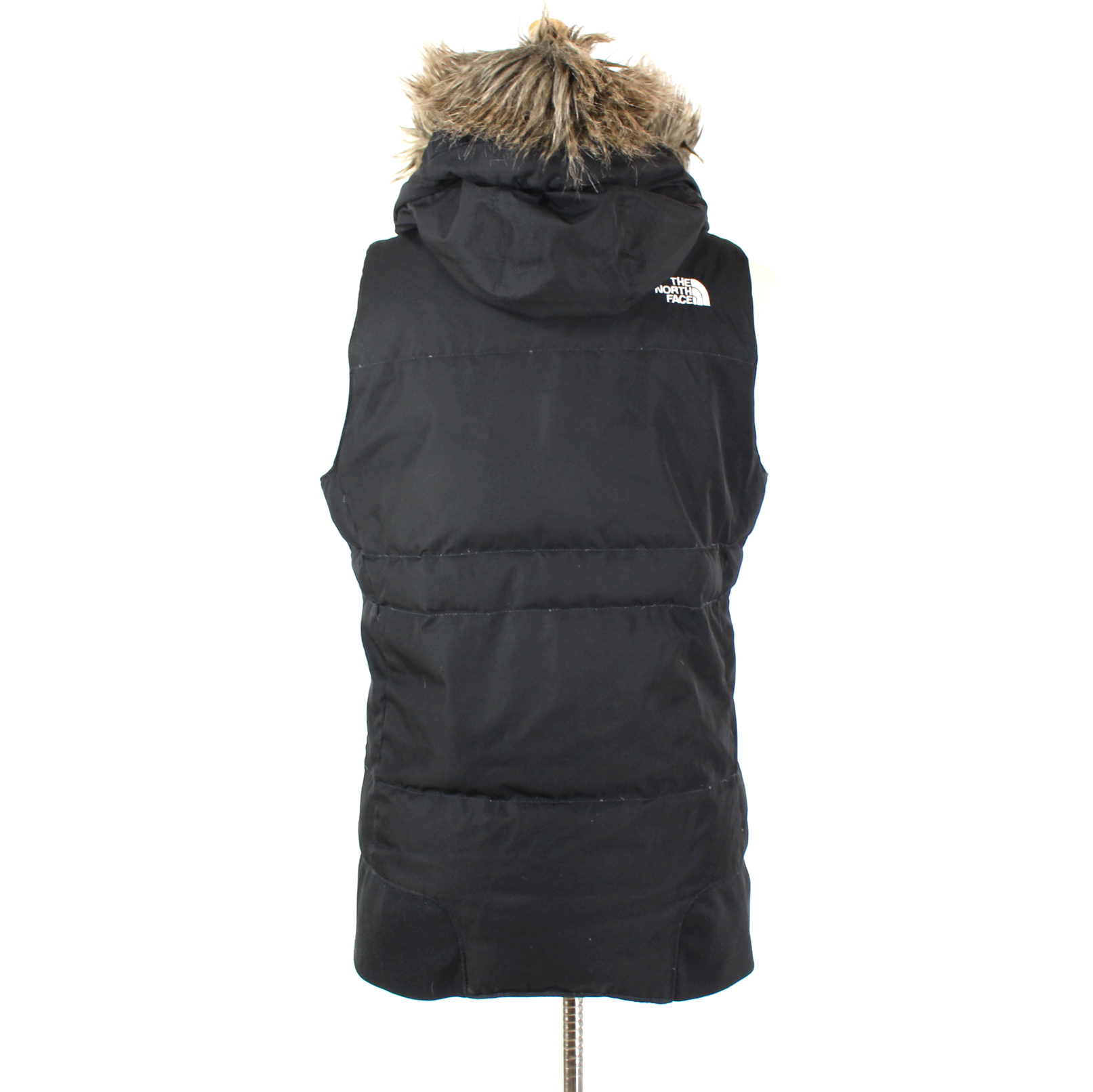 The North Face Black 550 Goose Down Insulated Faux Fur Trim Hooded Vest