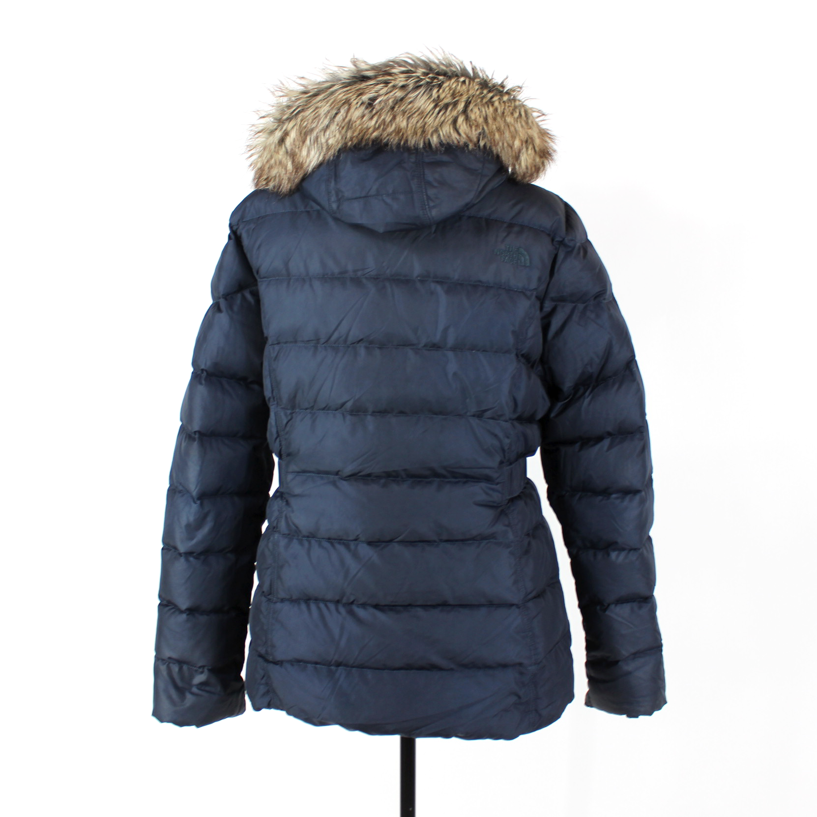 The North Face Navy Gotham 550 Down Insulated Faux Fur Trim Hooded Coat