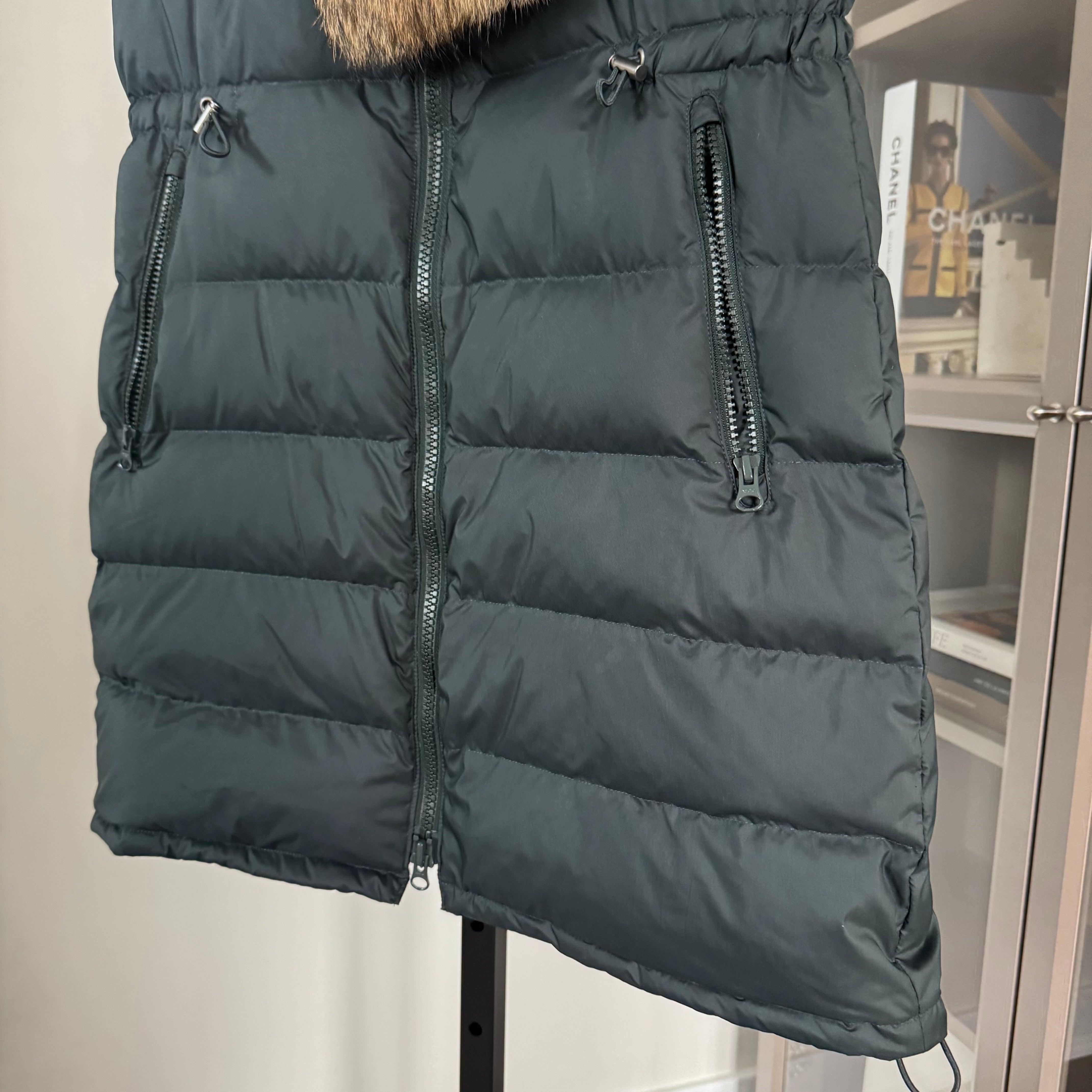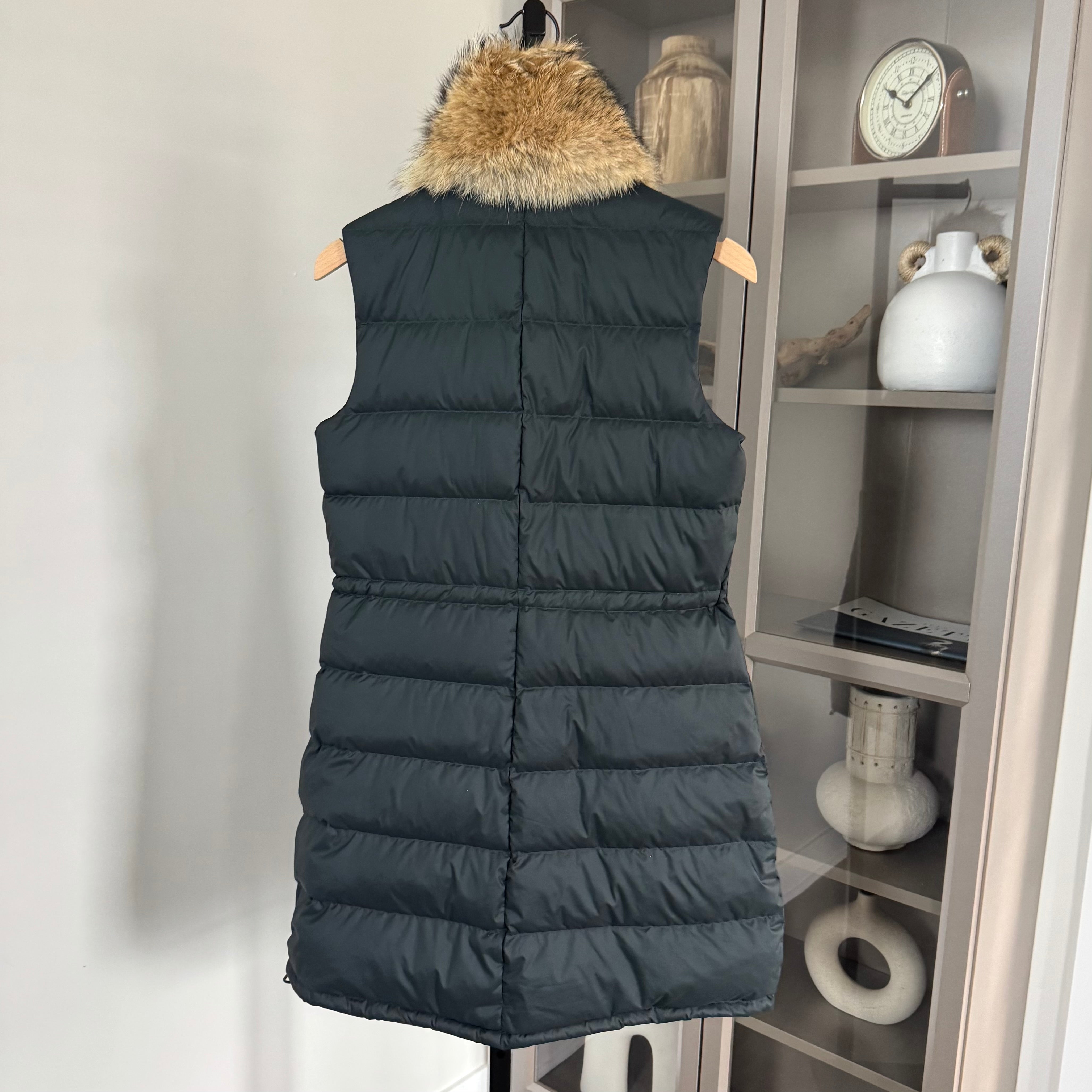 Theory Womira Green Down Insulated Coyote Fur Trim Vest