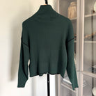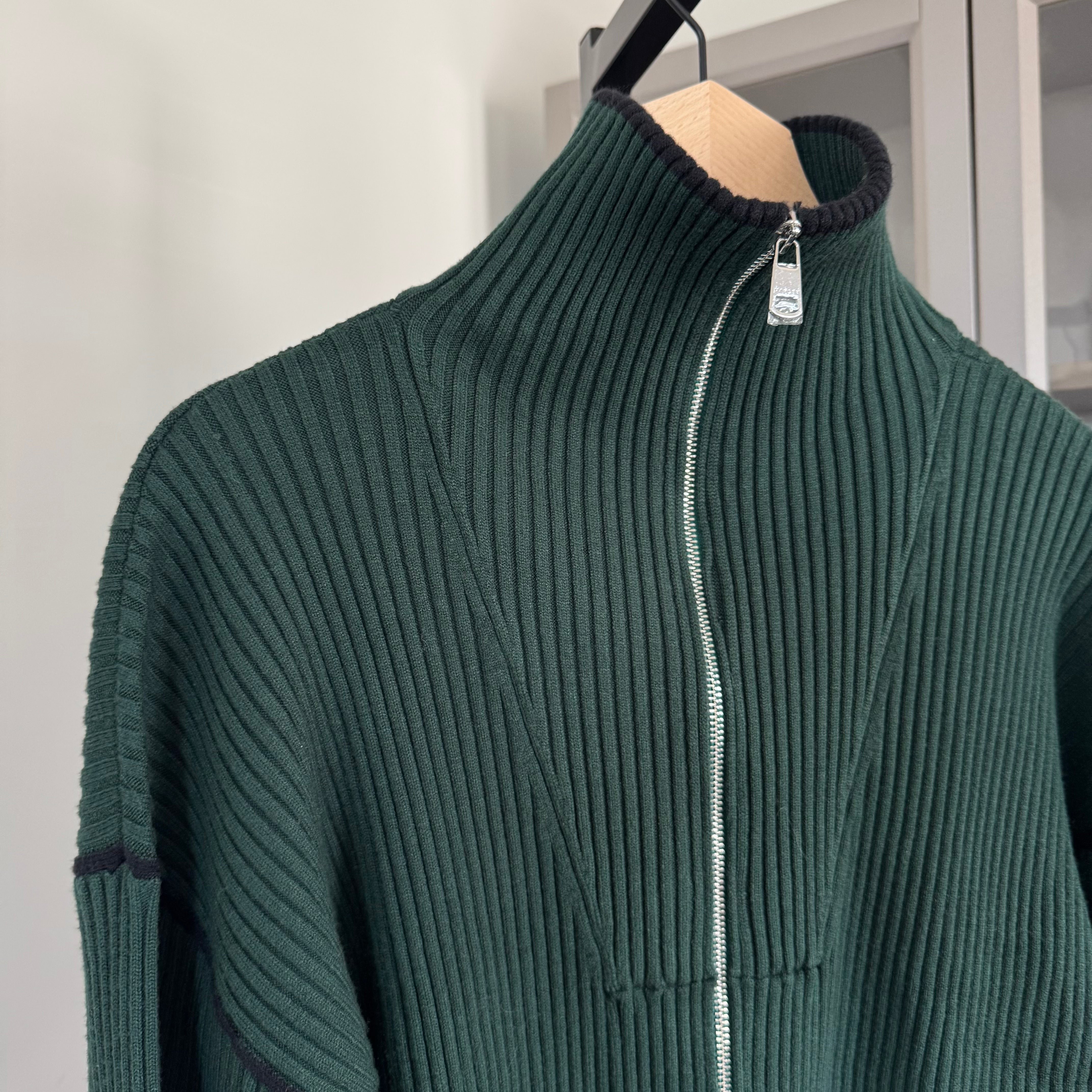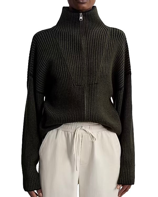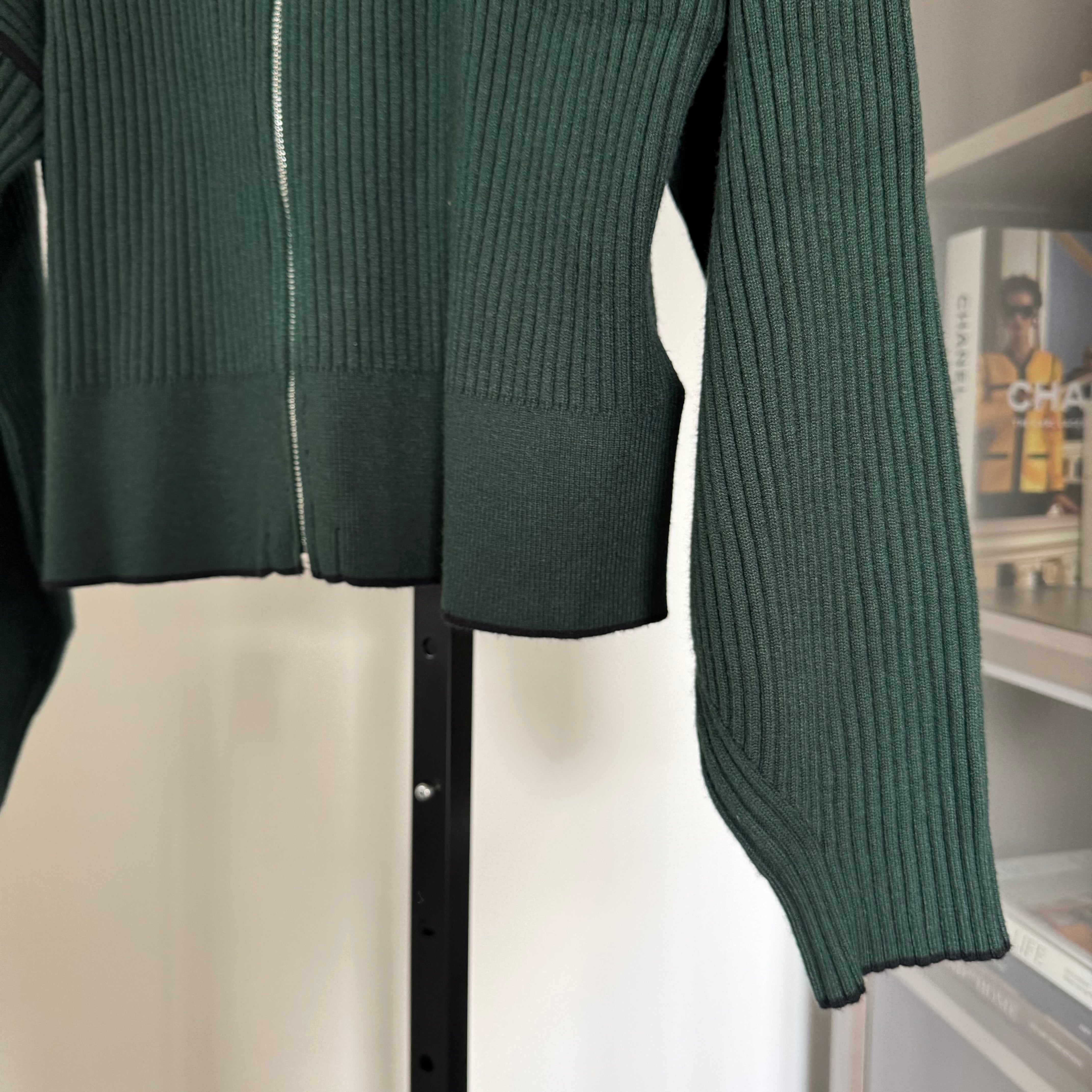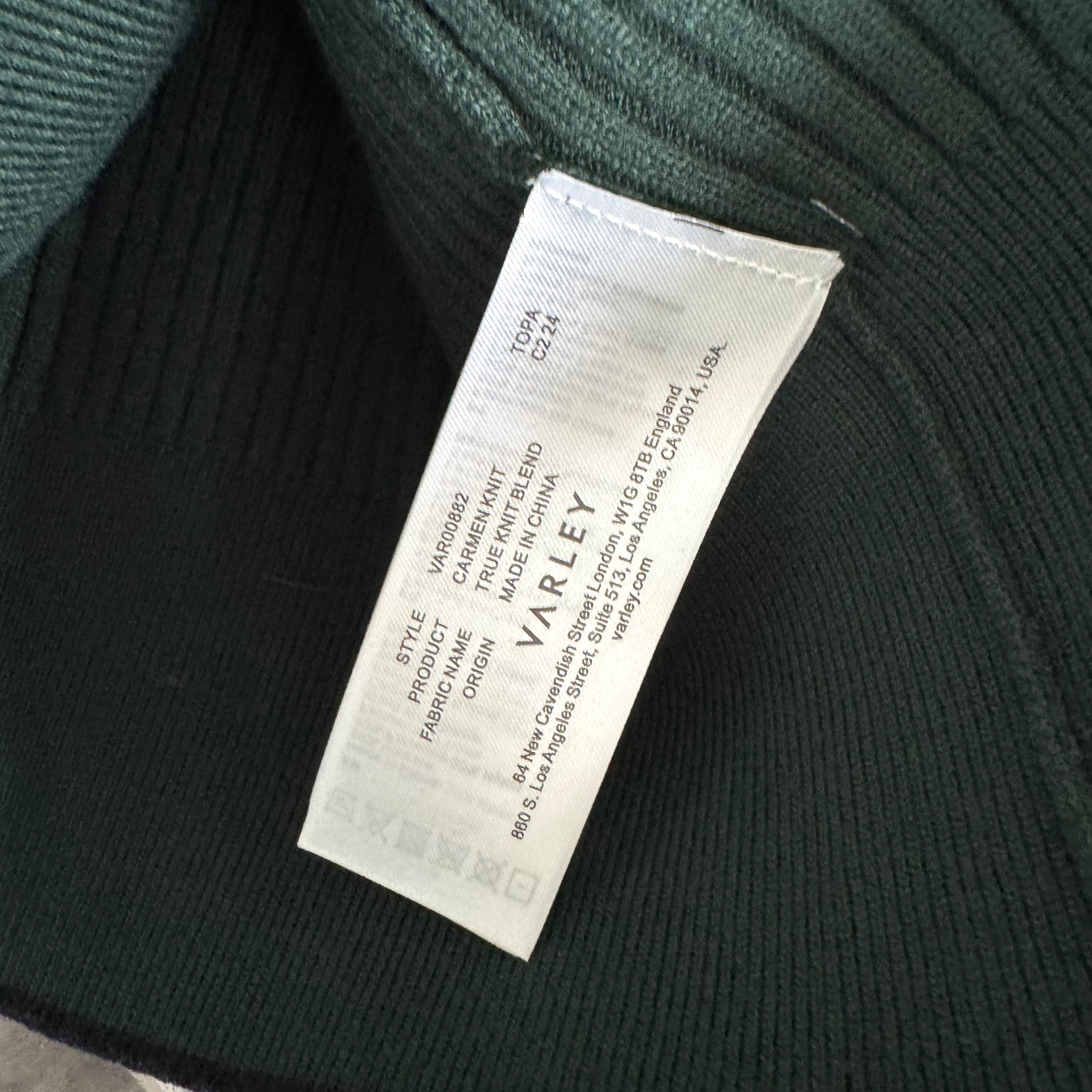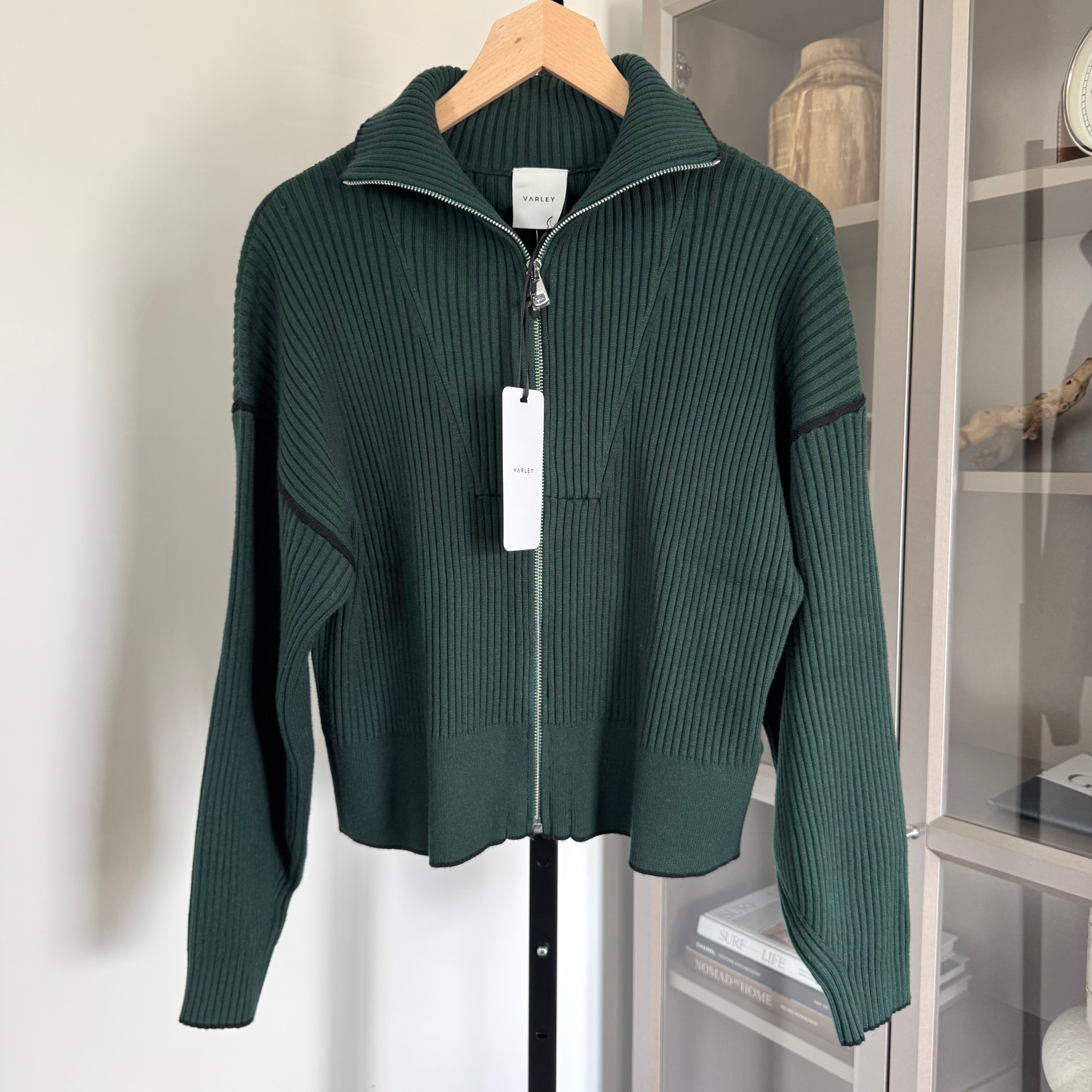 Varley Carmen Rib-Knit Darkest Spruce Black Trim Zip Up Sweater Cardigan