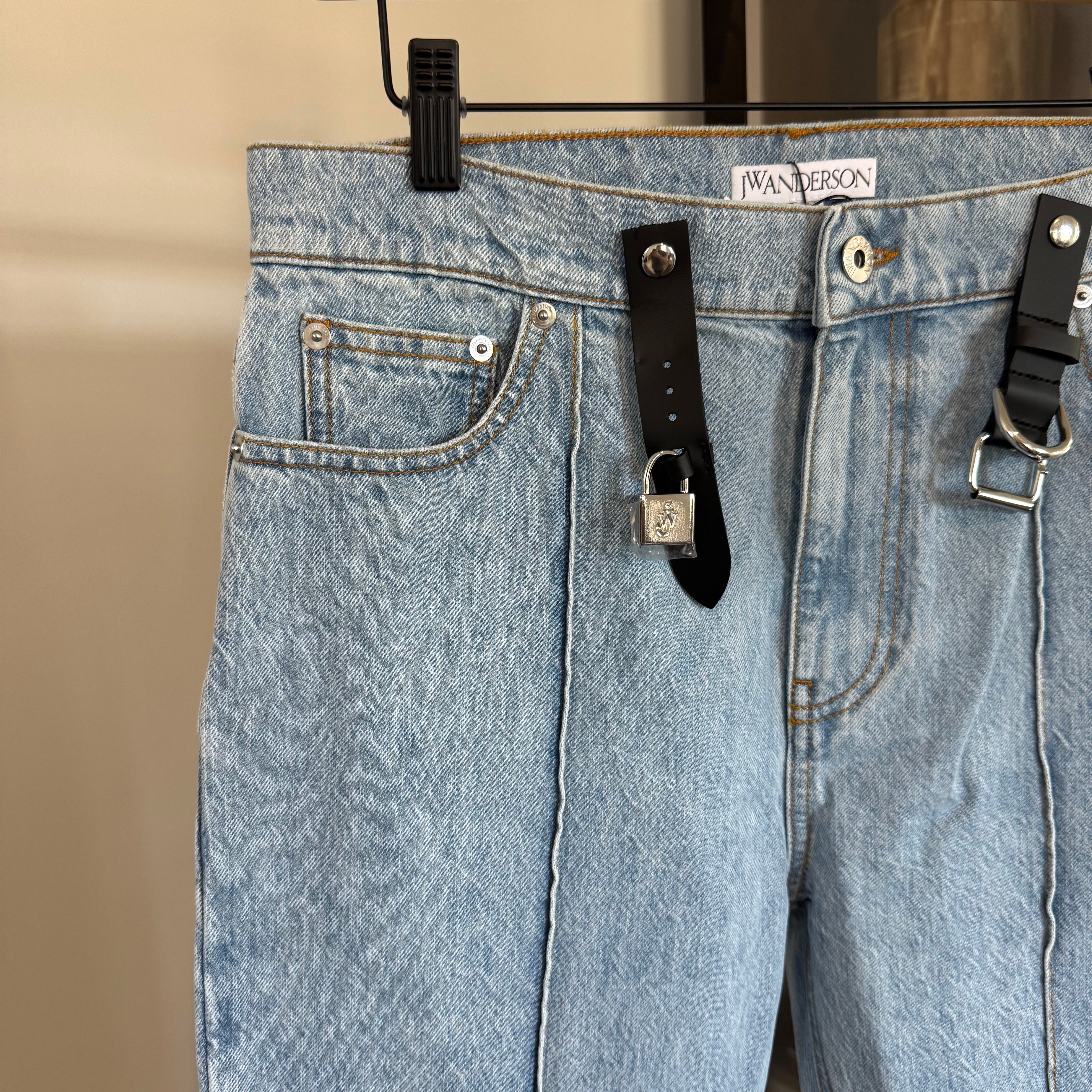 JW Anderson Blue Wash Denim Padlock Detail Waist Slim Fit Jeans
