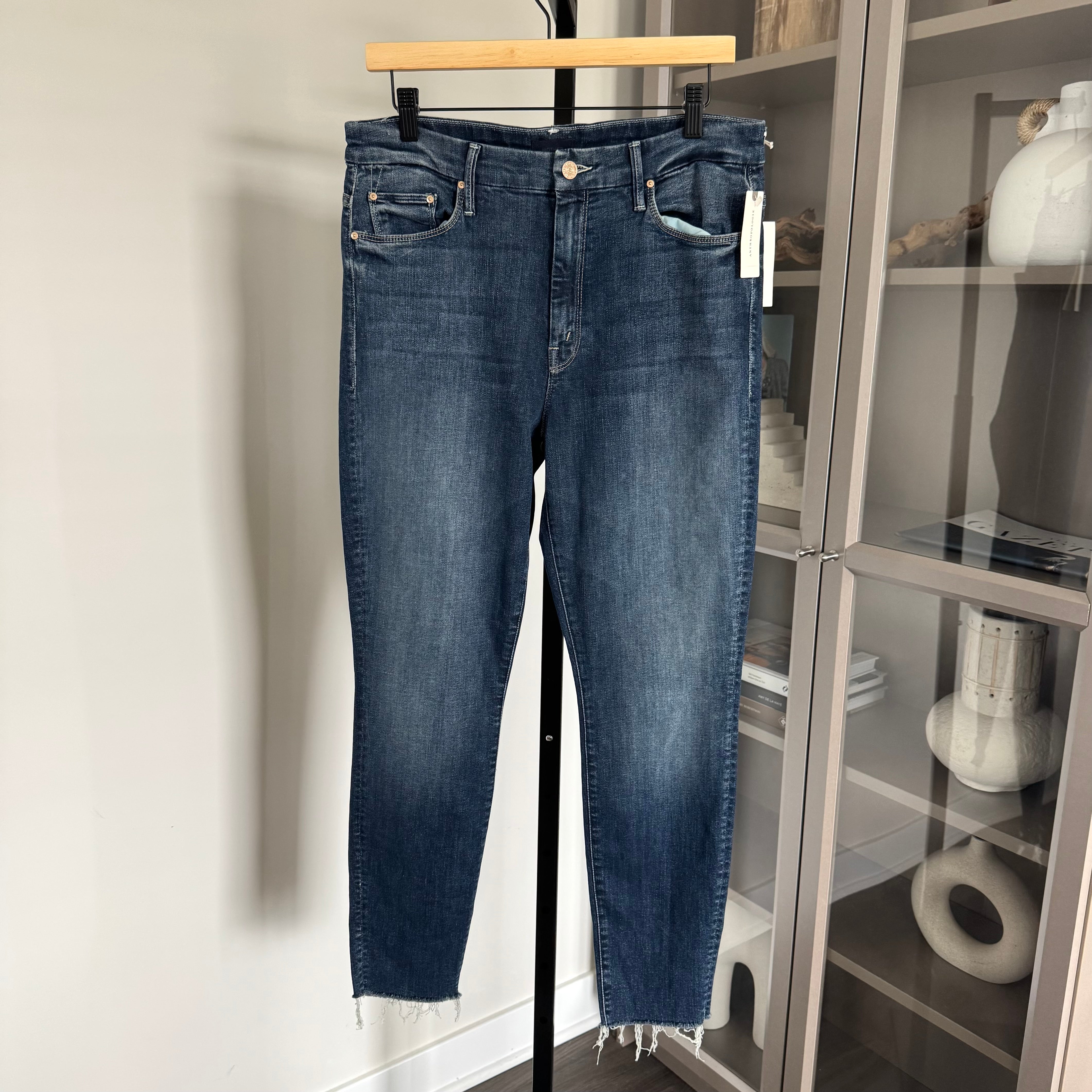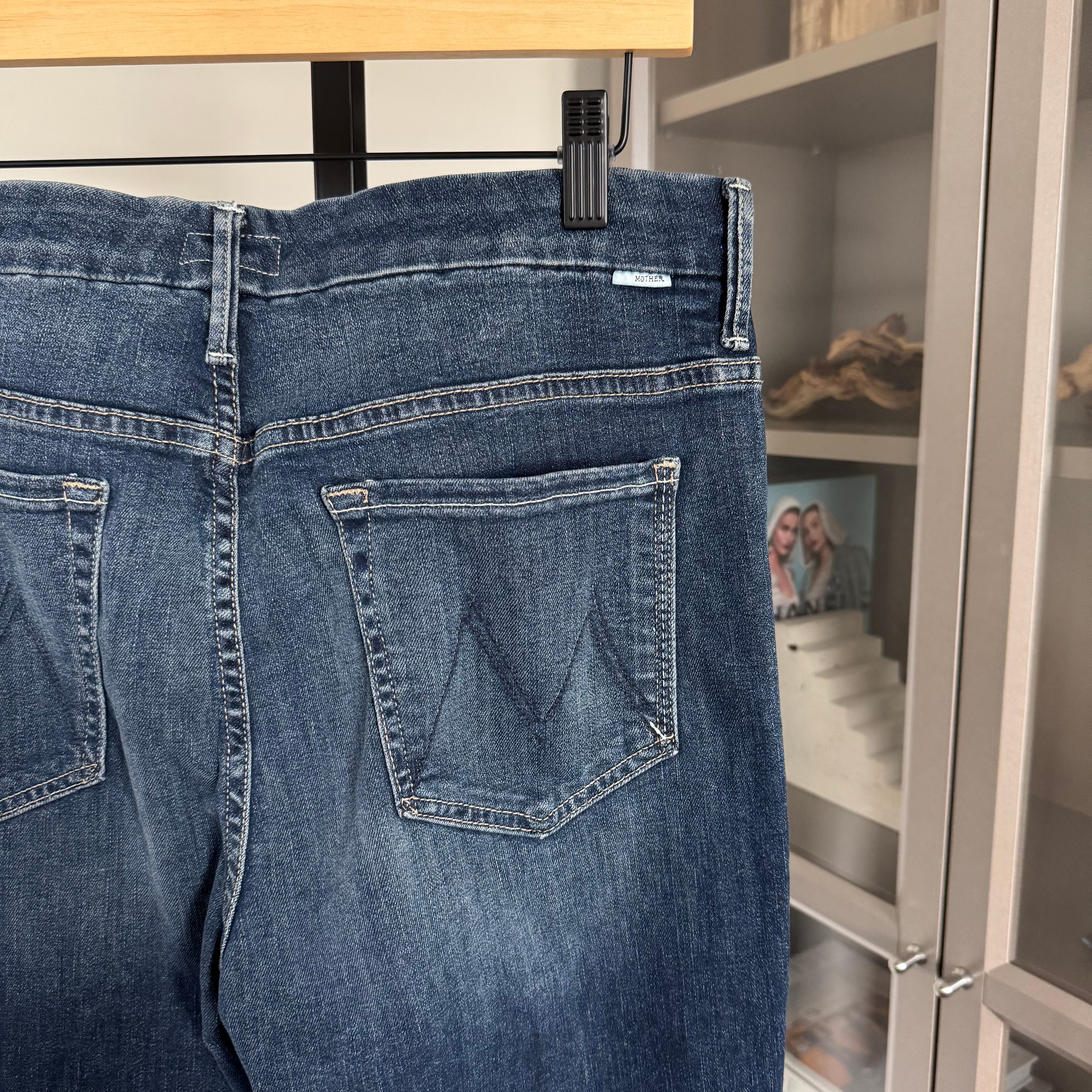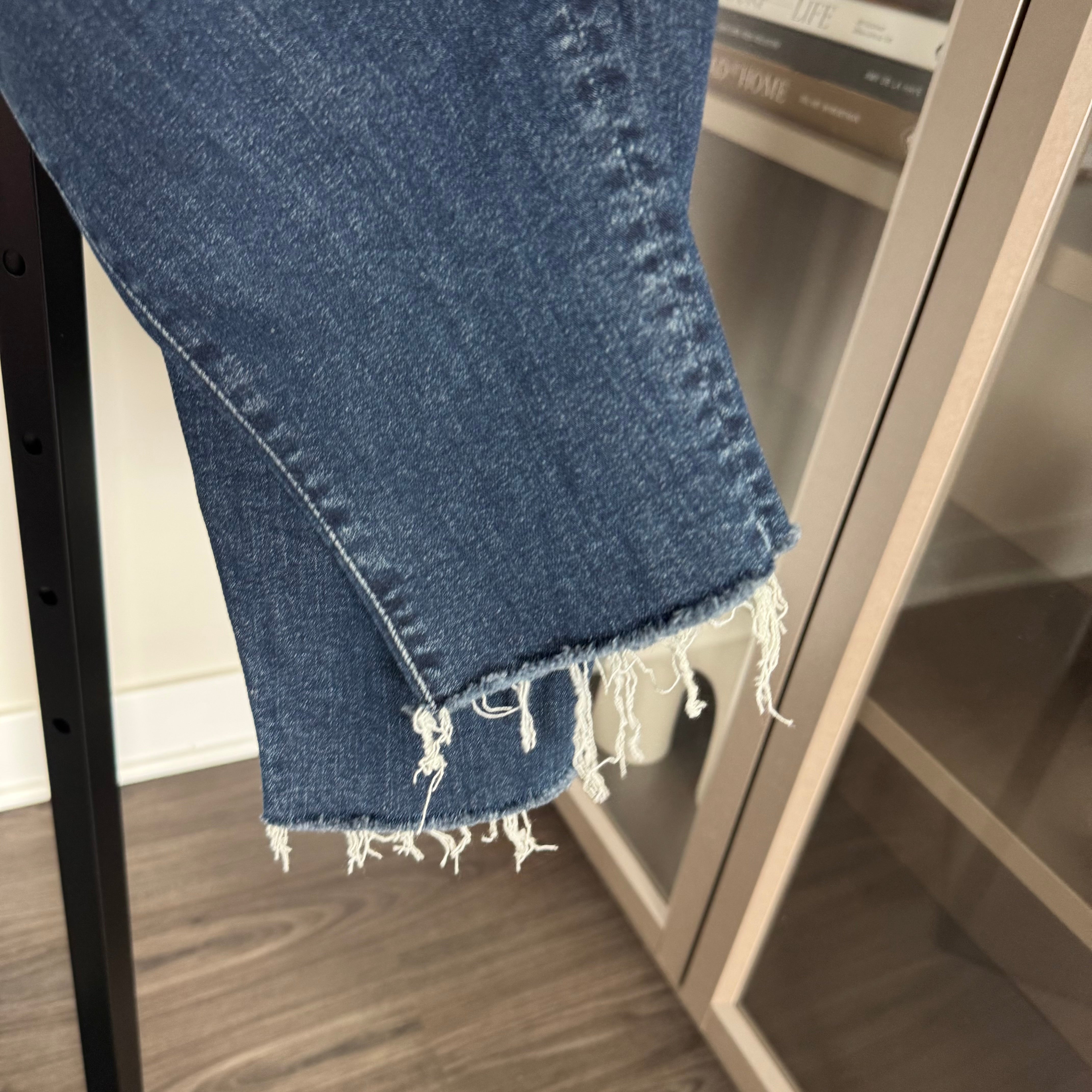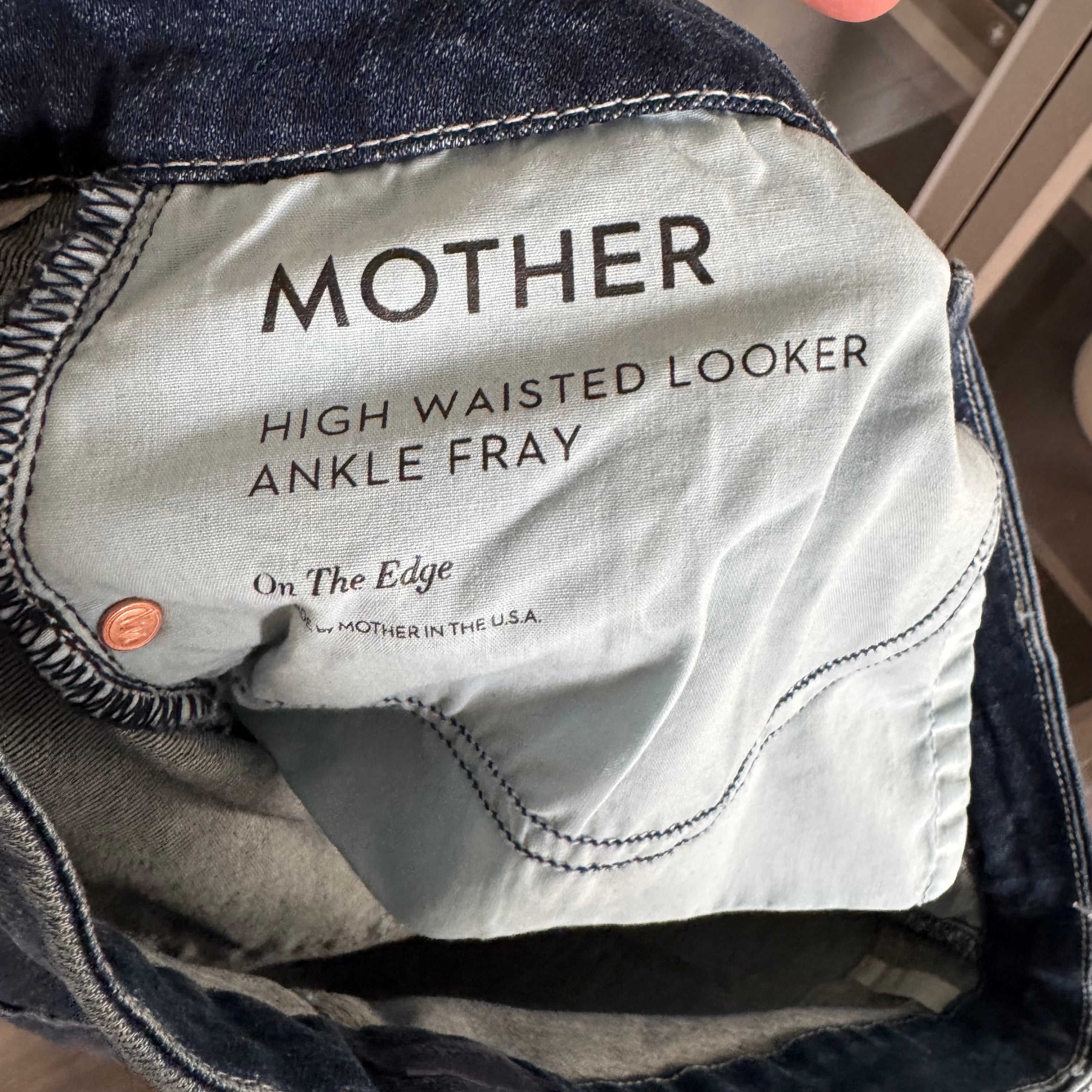 MOTHER High Waisted Looker On The Edge Wash Fray Ankle Jeans