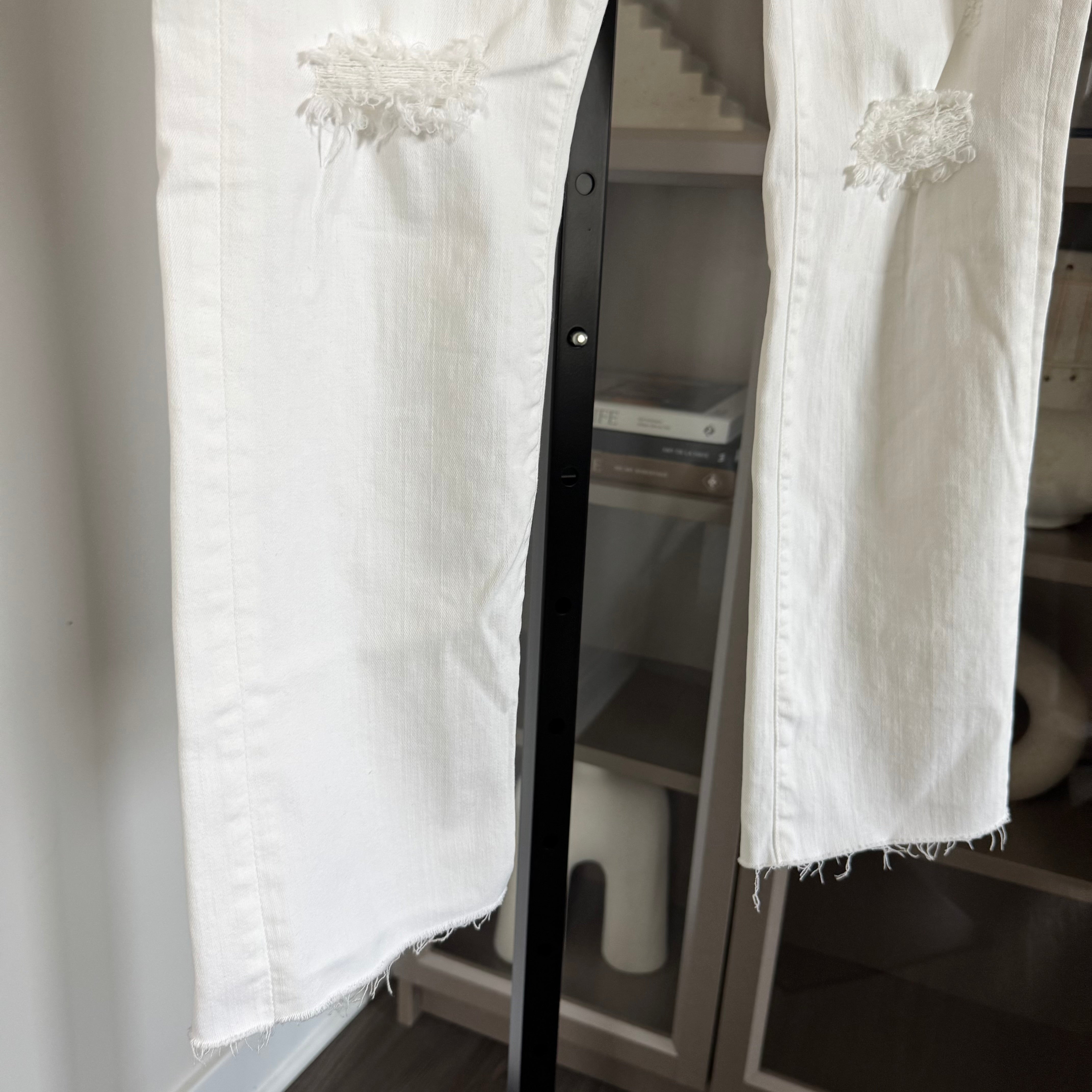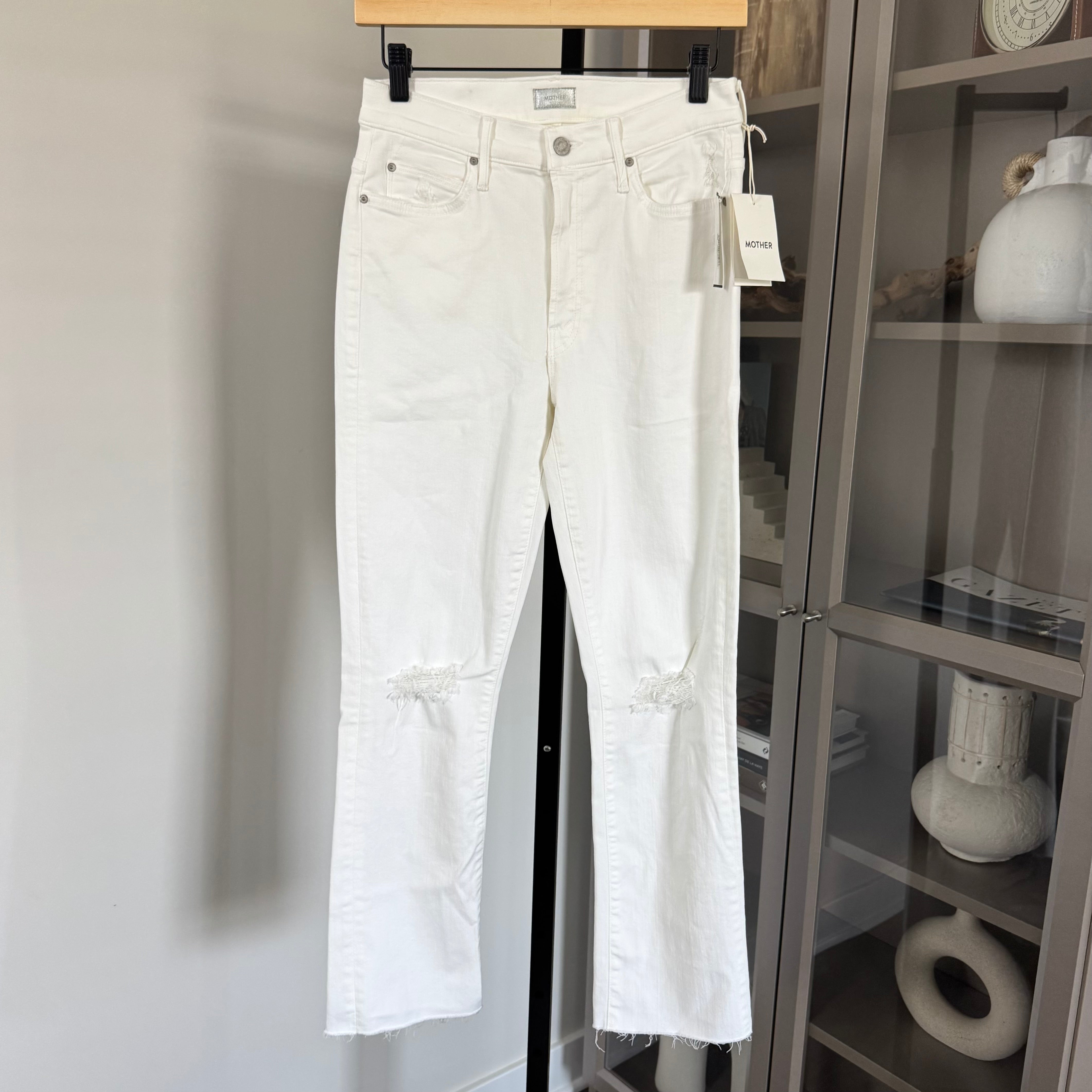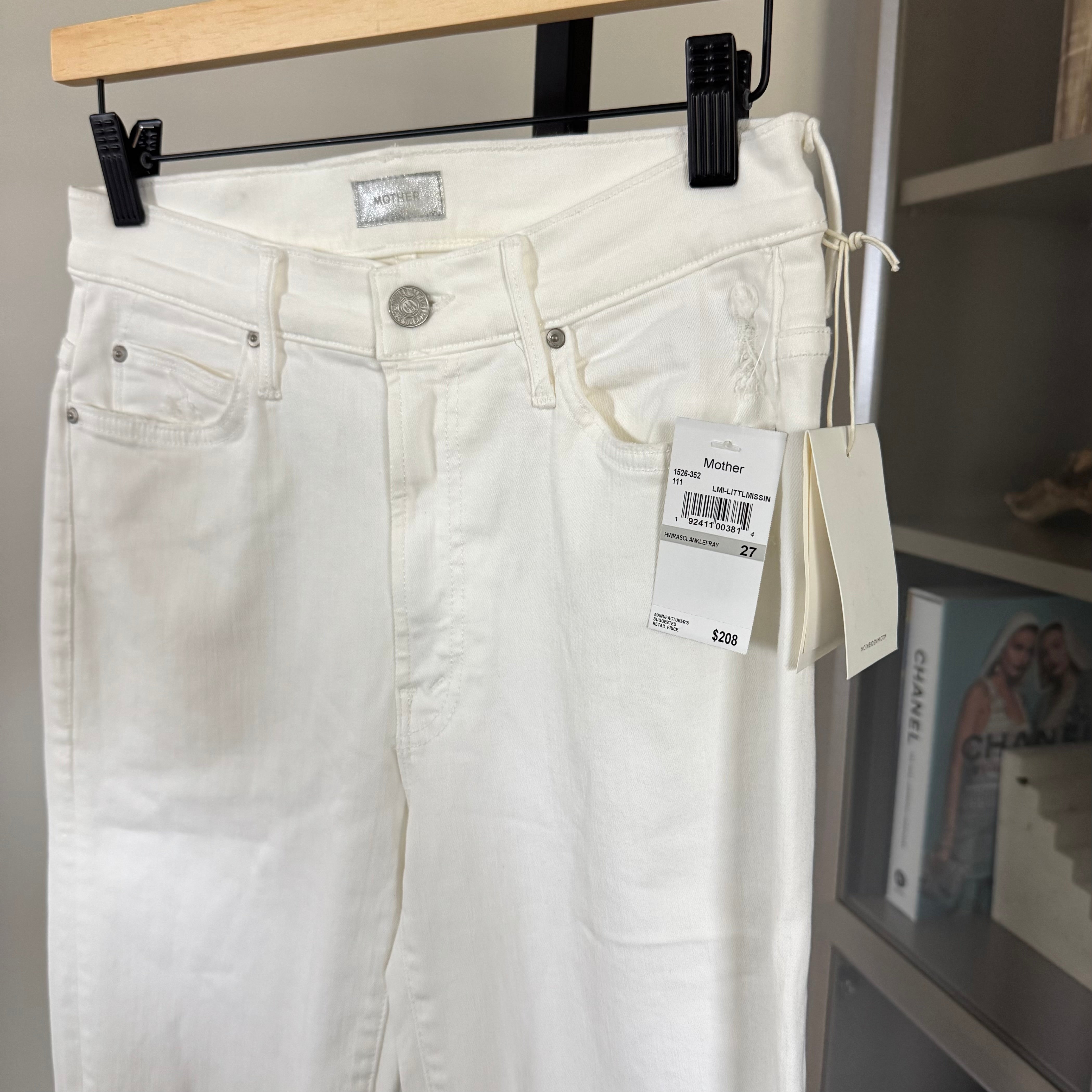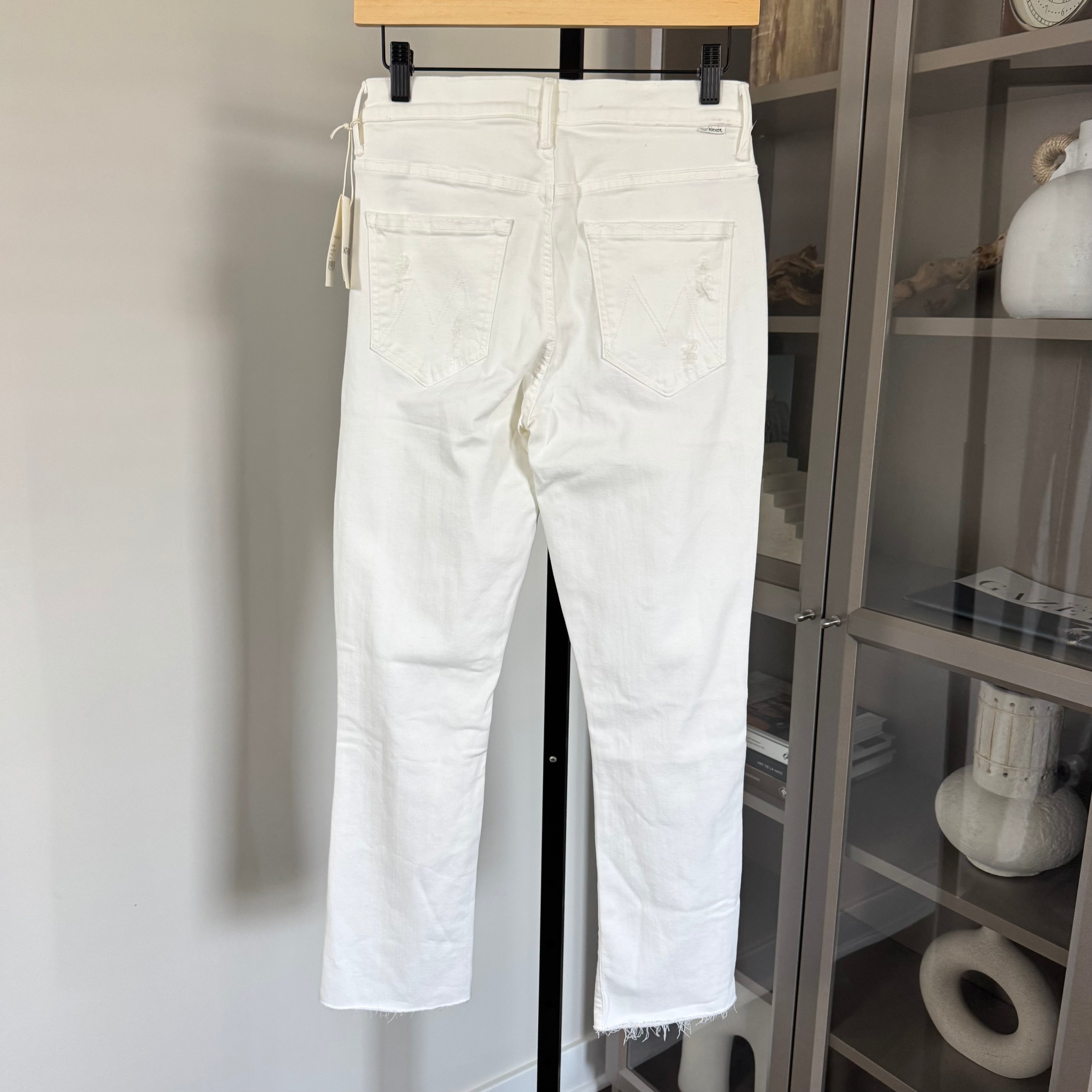 Mother High Waisted Rascal Ankle Fray Little Miss Innocent White Jeans