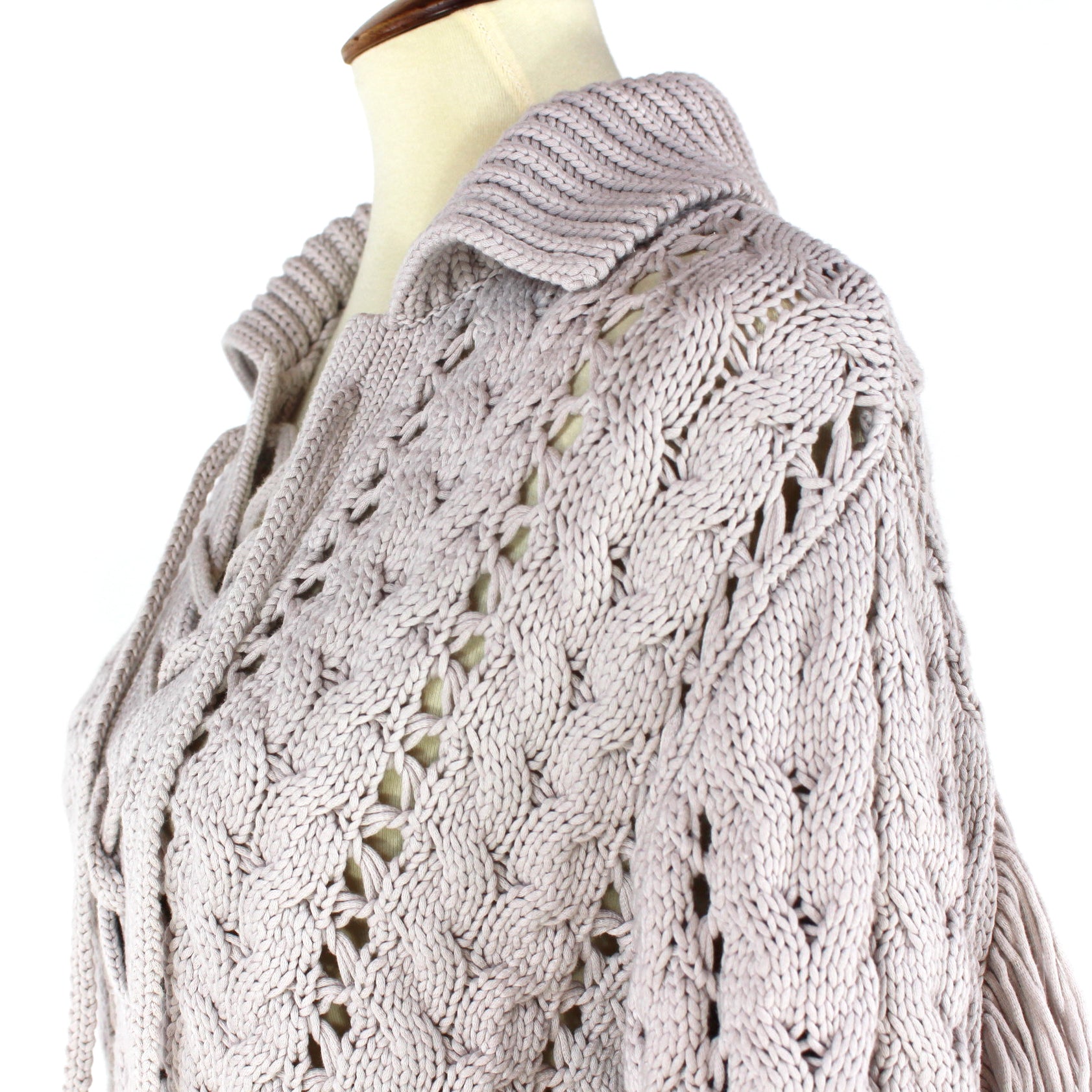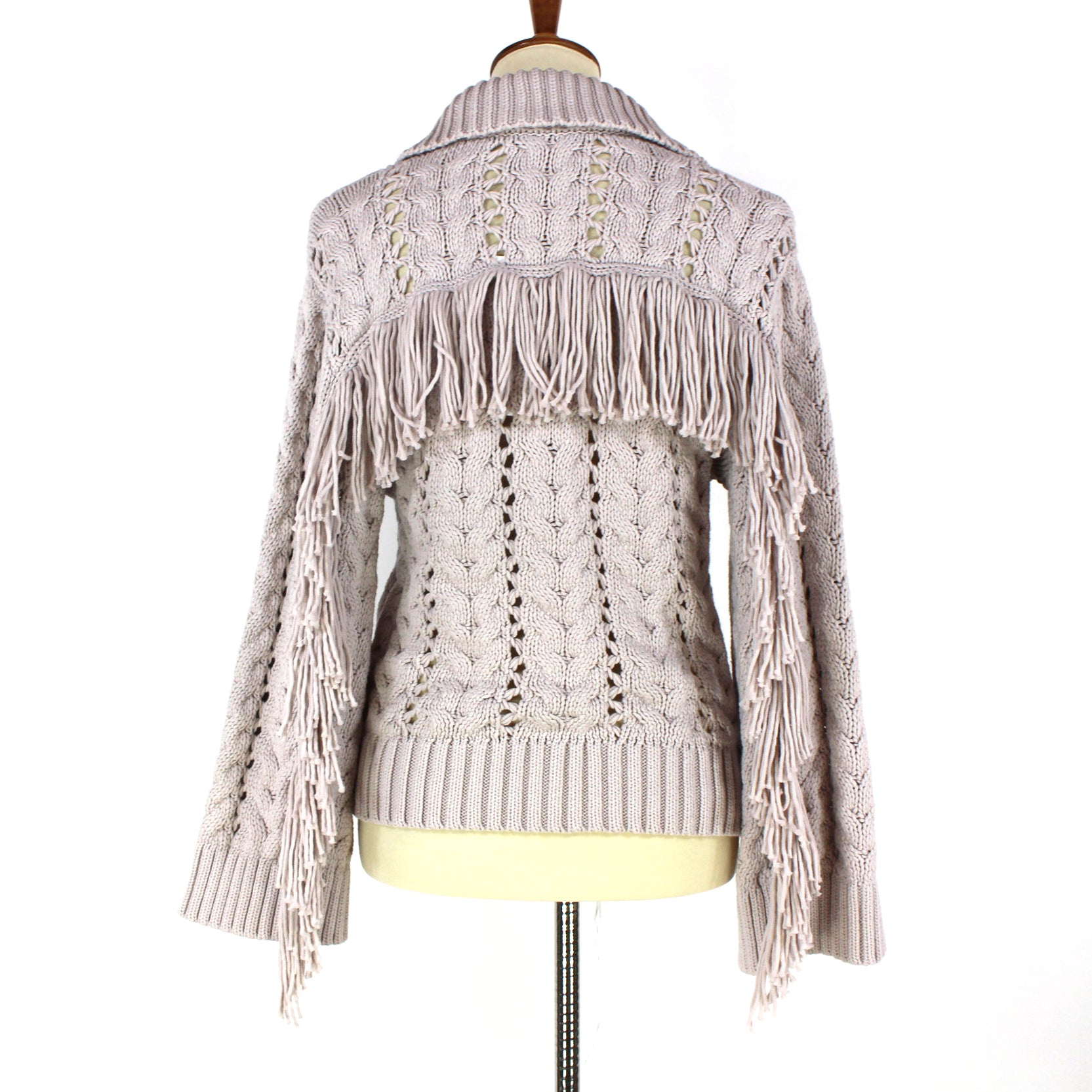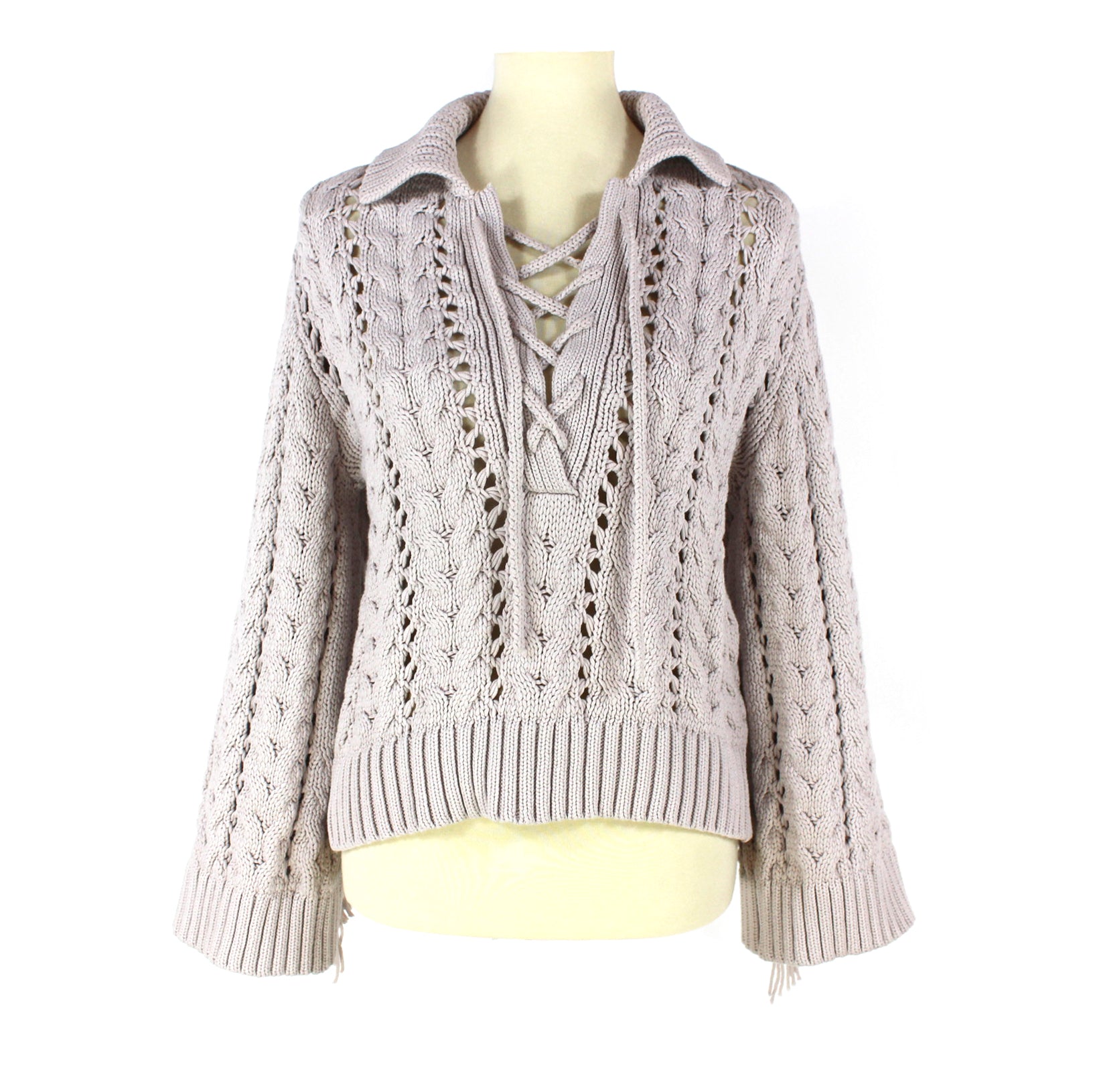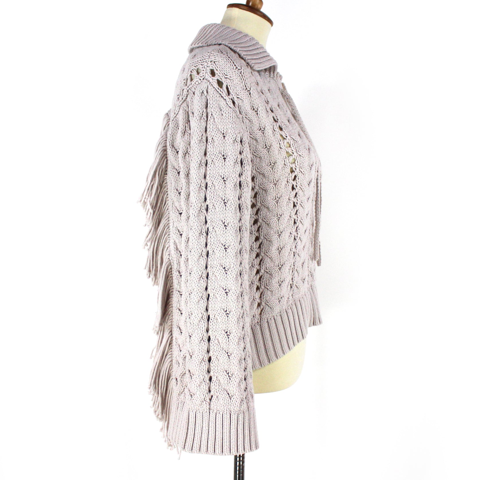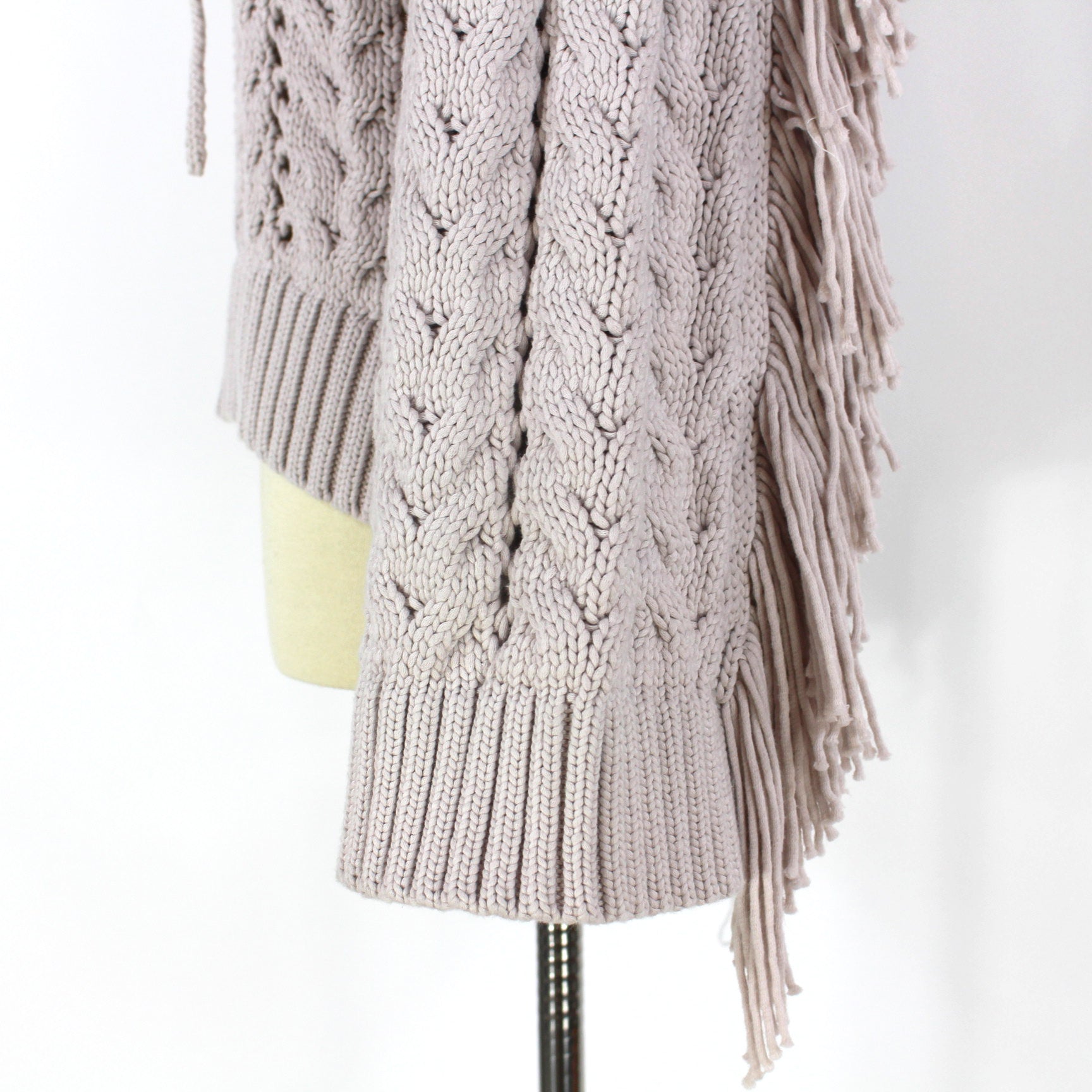 Jonathan Simkhai Celestine Cable Knit Moonstone Tan Back Fringe Trim Sweater
