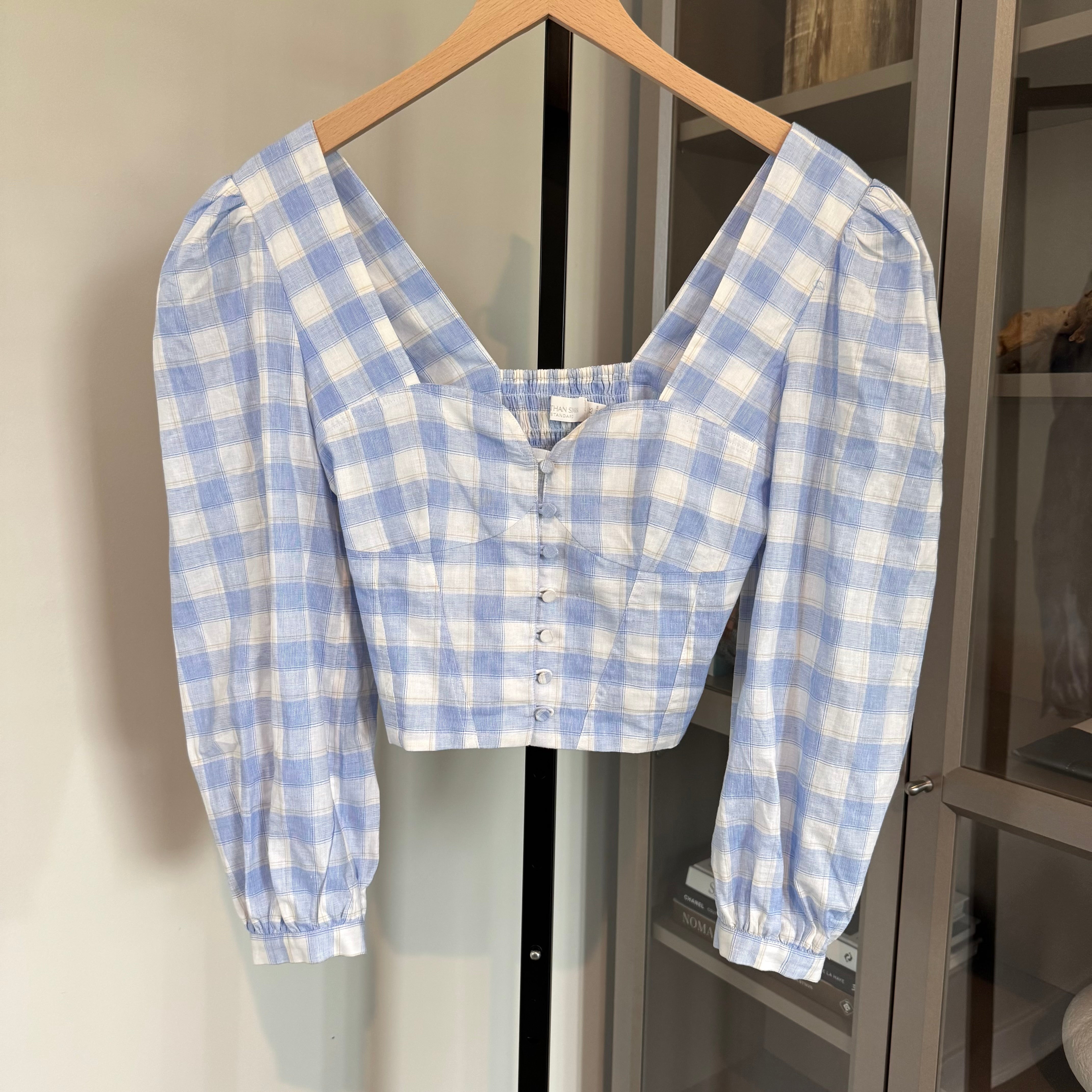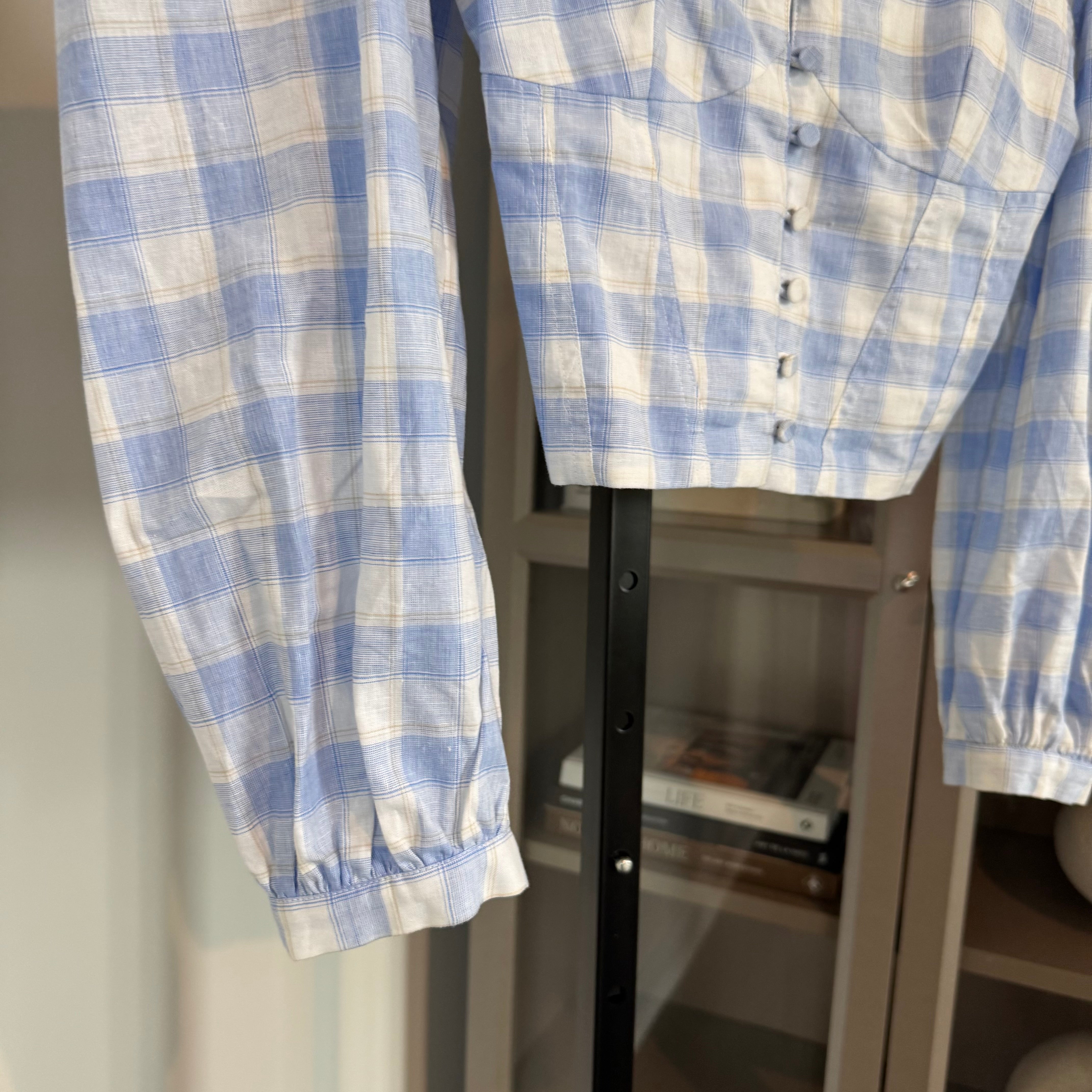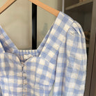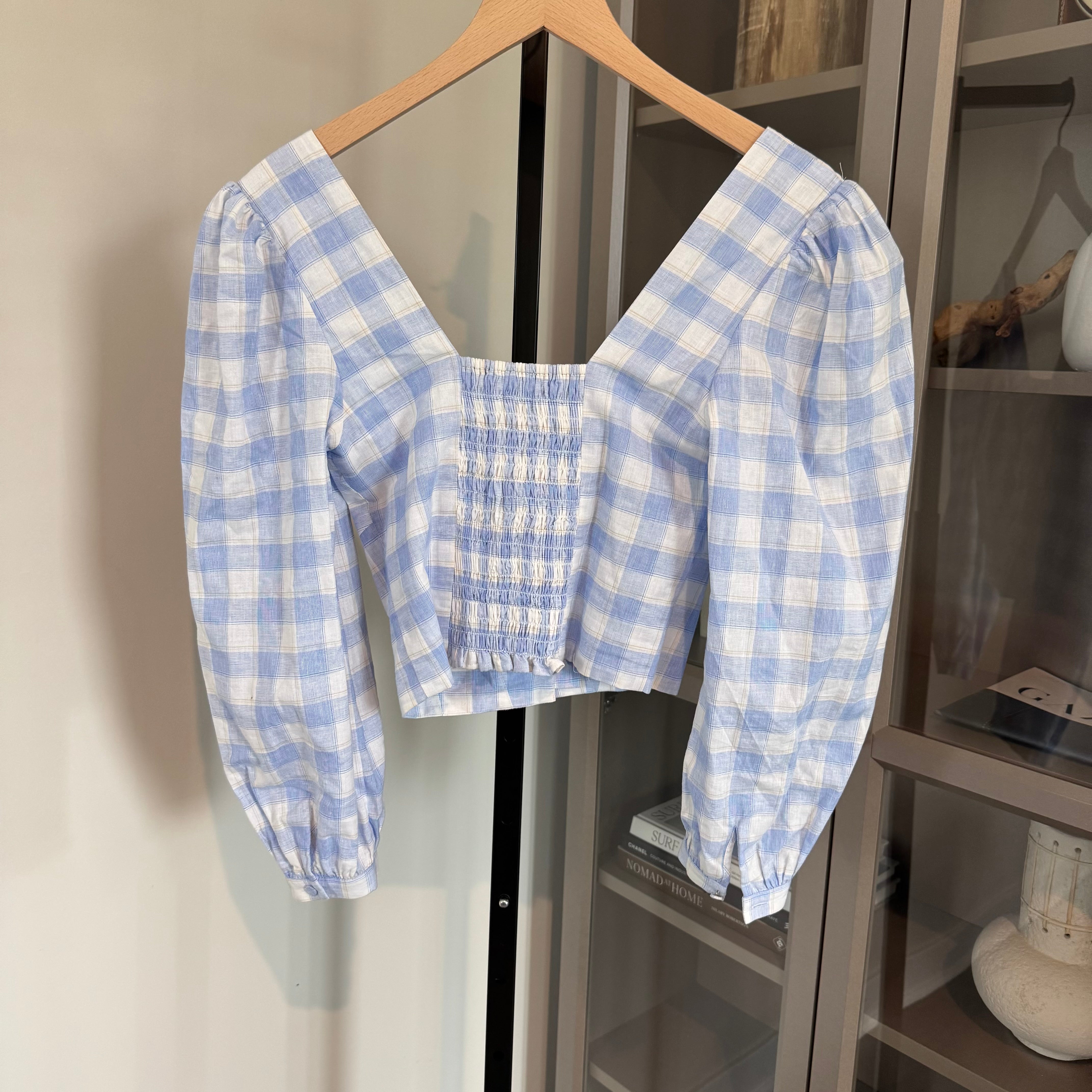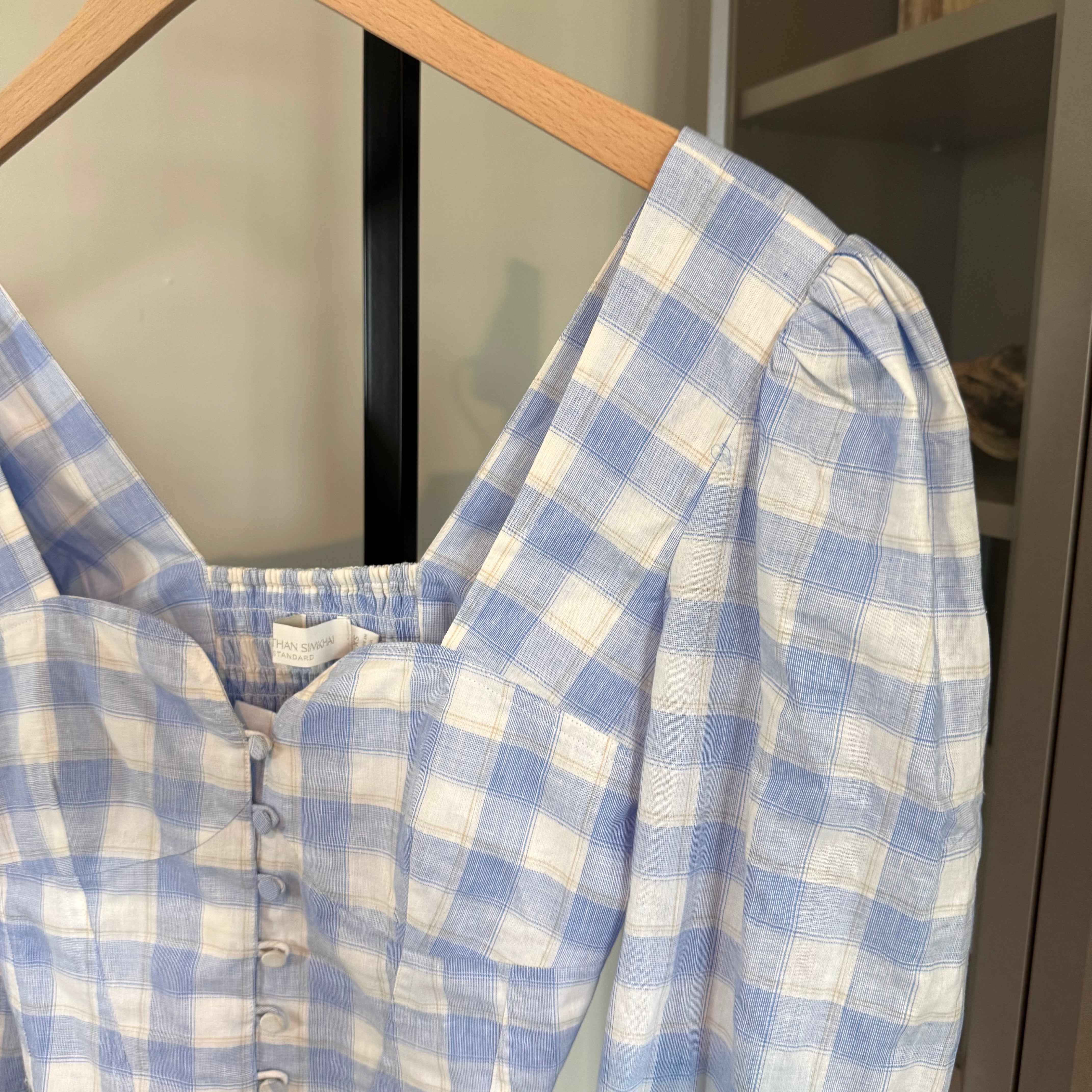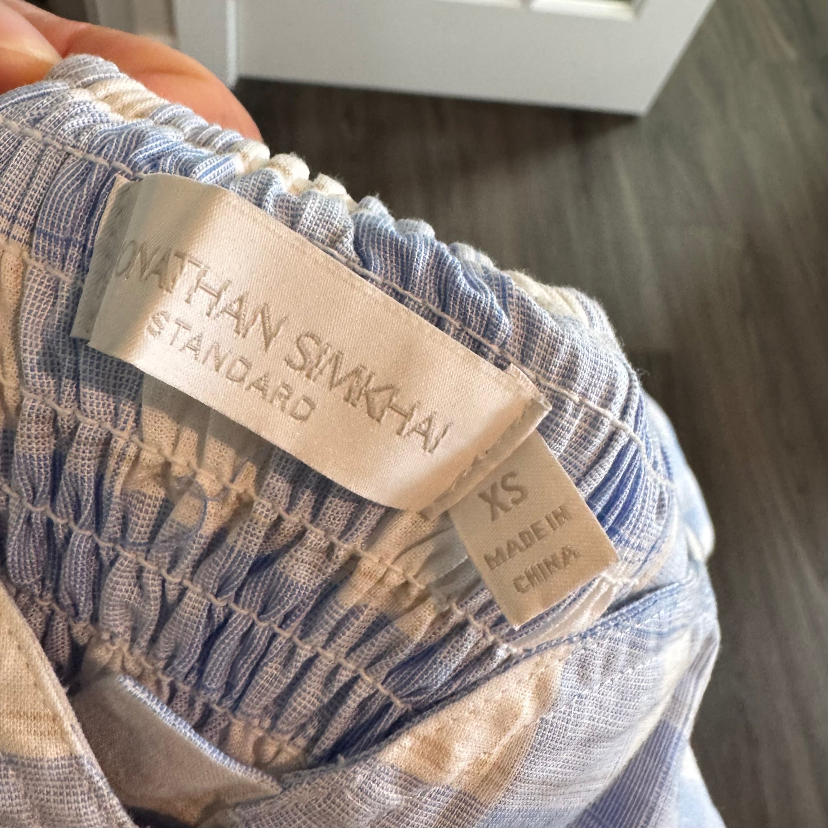 Jonathan Simkhai Standard Mary Jane Oxford Smocked Blue Crop Top
