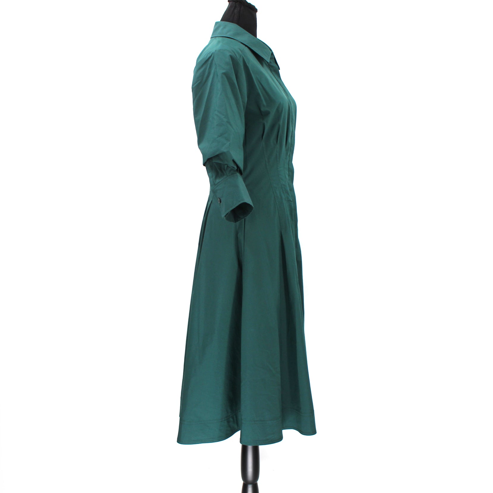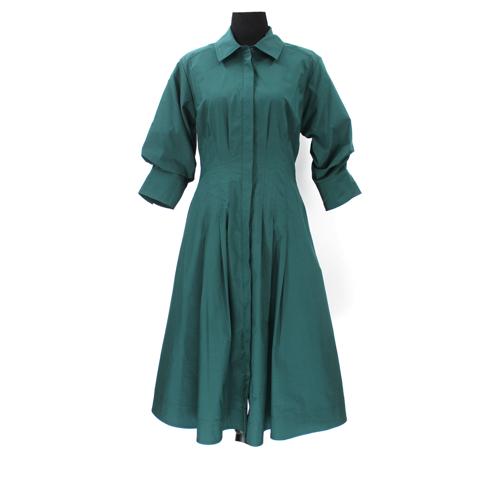 Jonathan Simkhai Jazz Emerald Green Full Button Pintuck Detail Dress