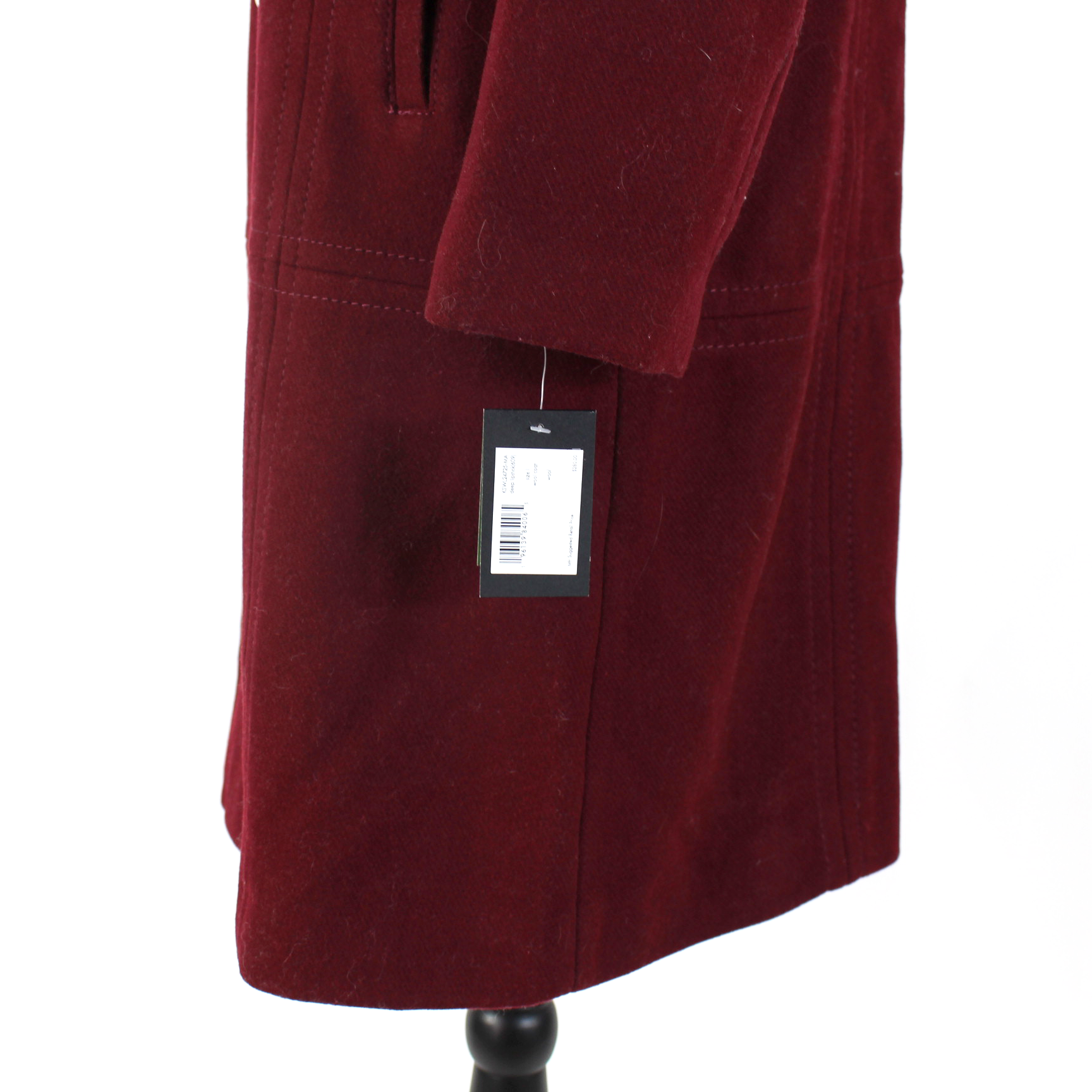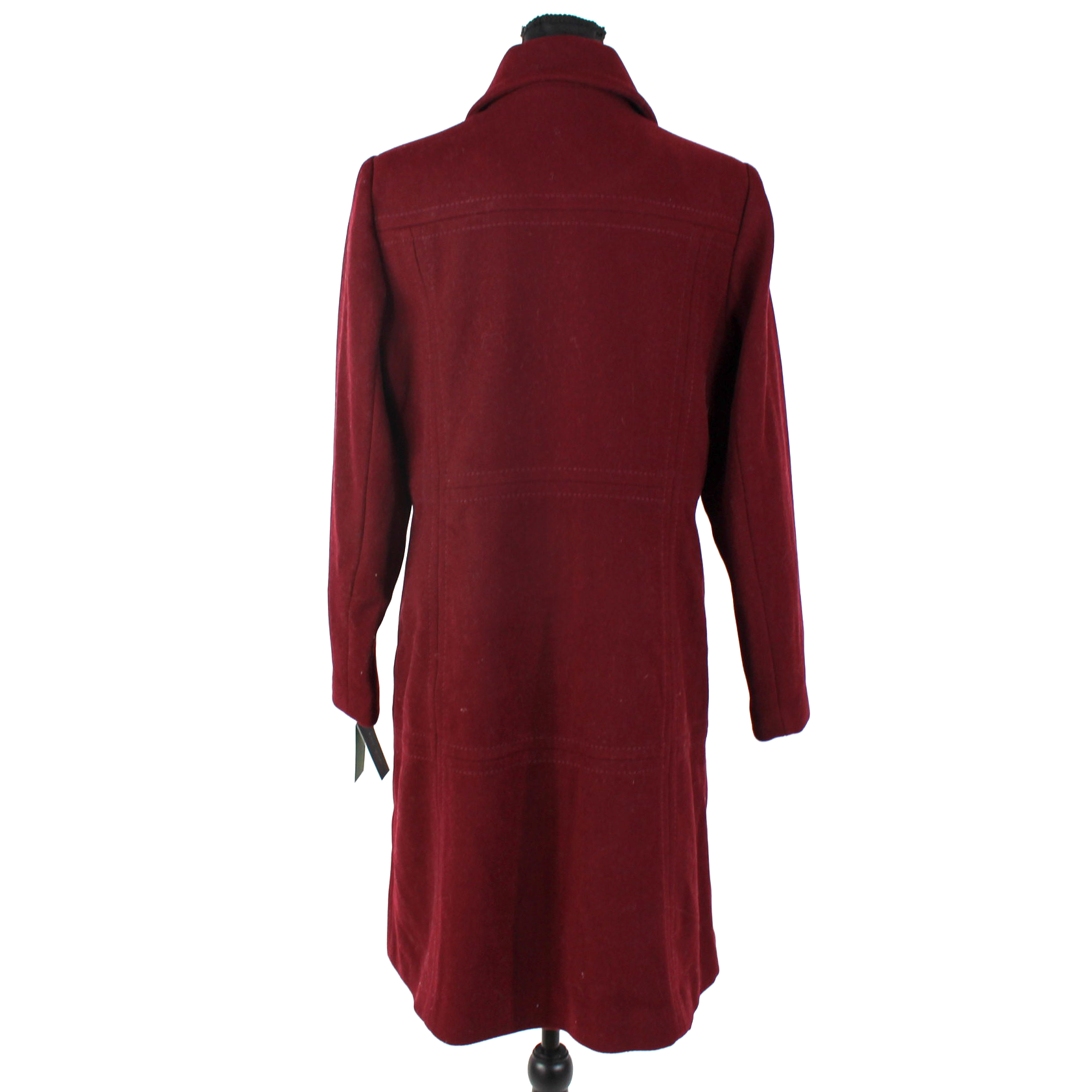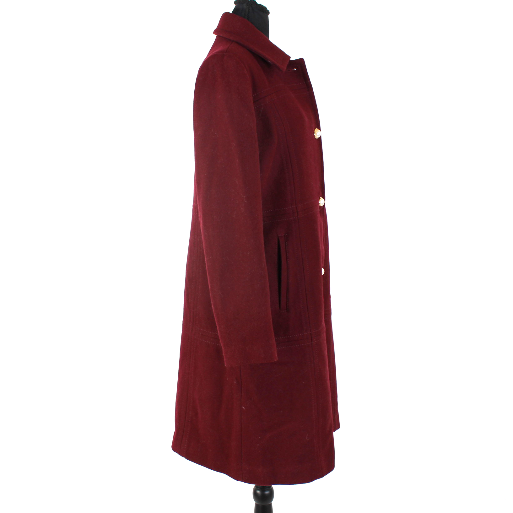 Kate Spade Deep Lipstick Faux Pearl Button Up Long Wool Collared Coat