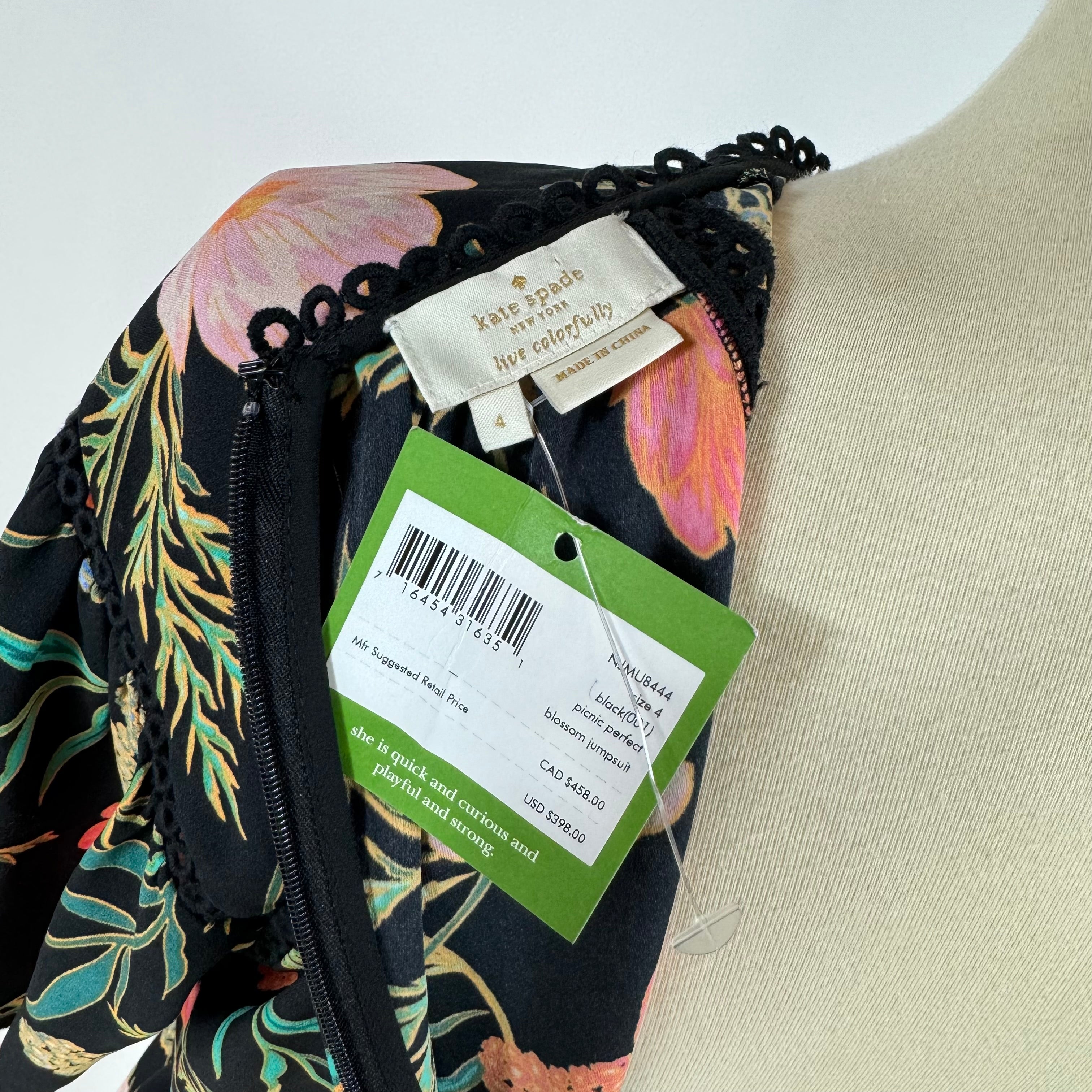 Kate Spade Black Floral Picnic Perfect Blossom Belted Jumpsuit