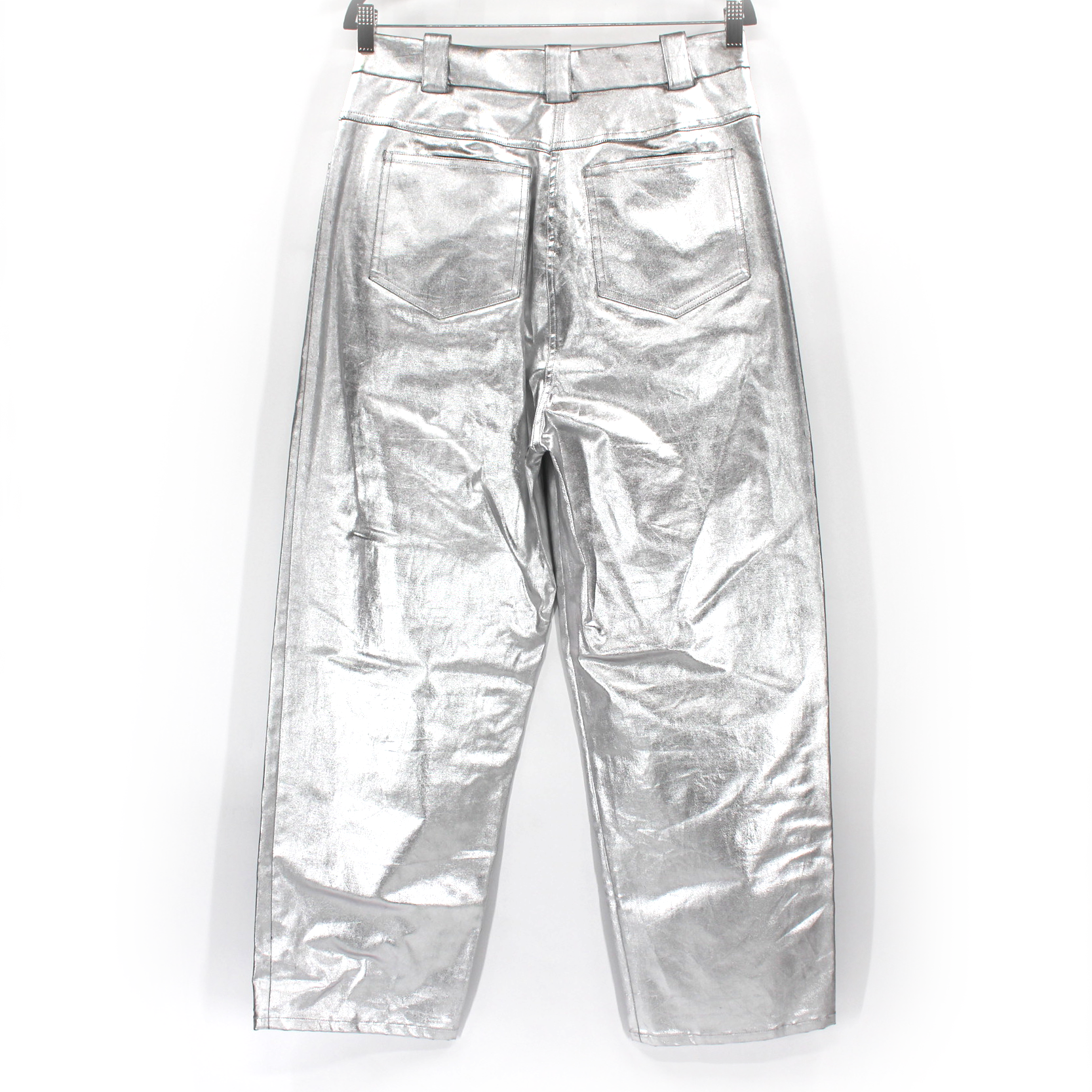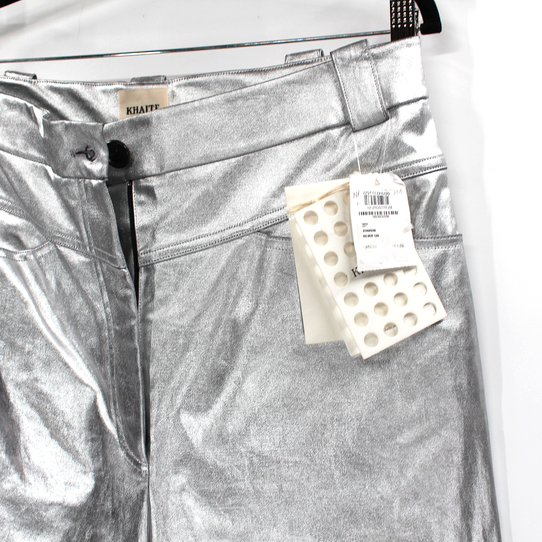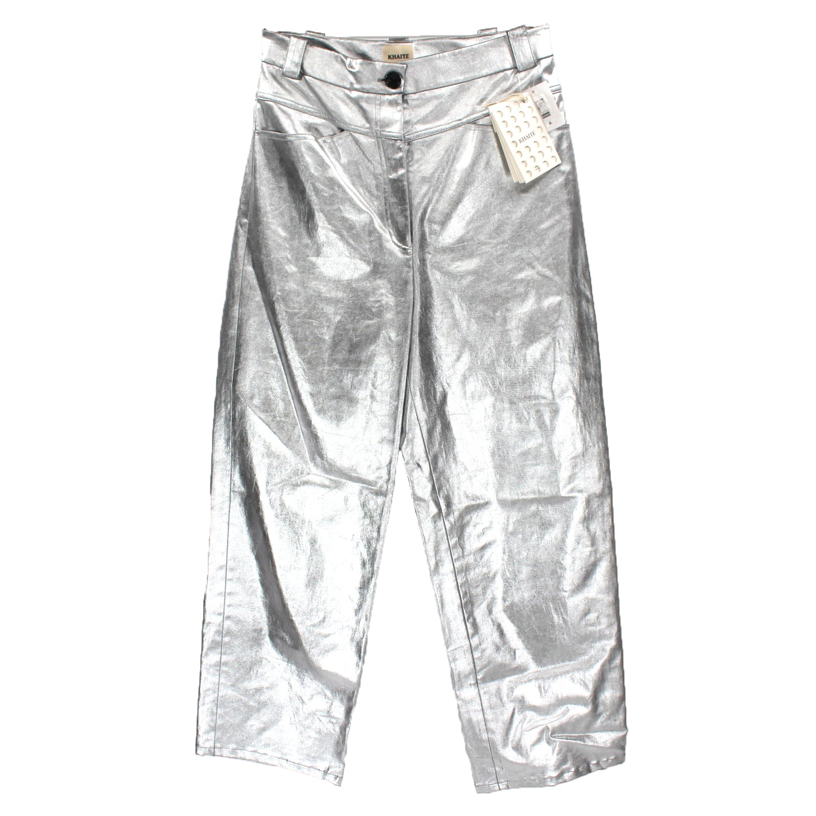 Khaite Preen Metallic Relaxed Wide Leg Pants Silver Faux Leather.