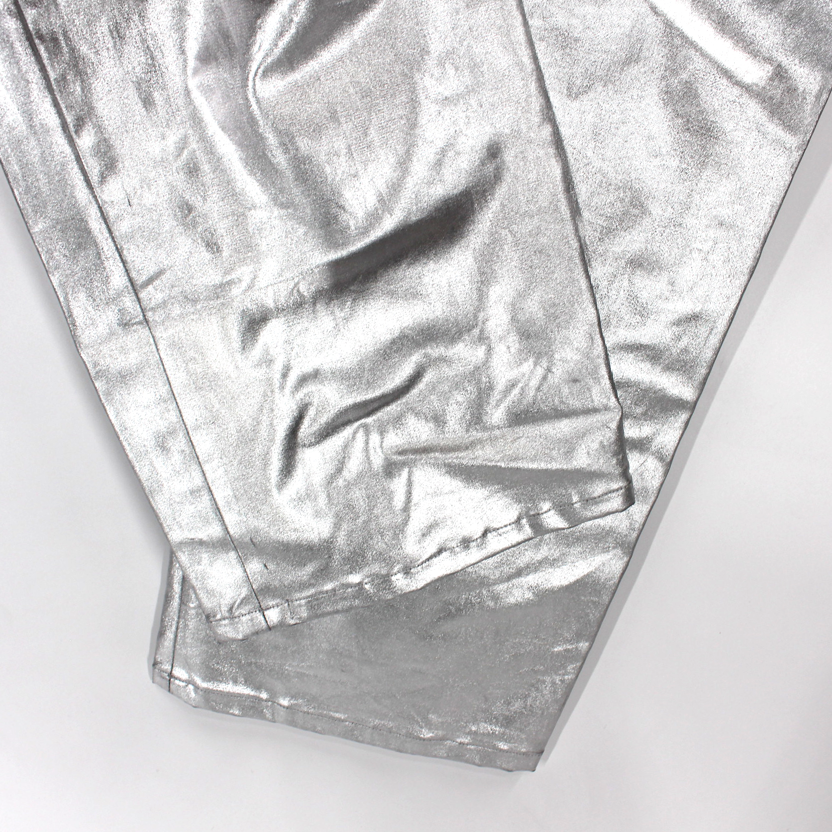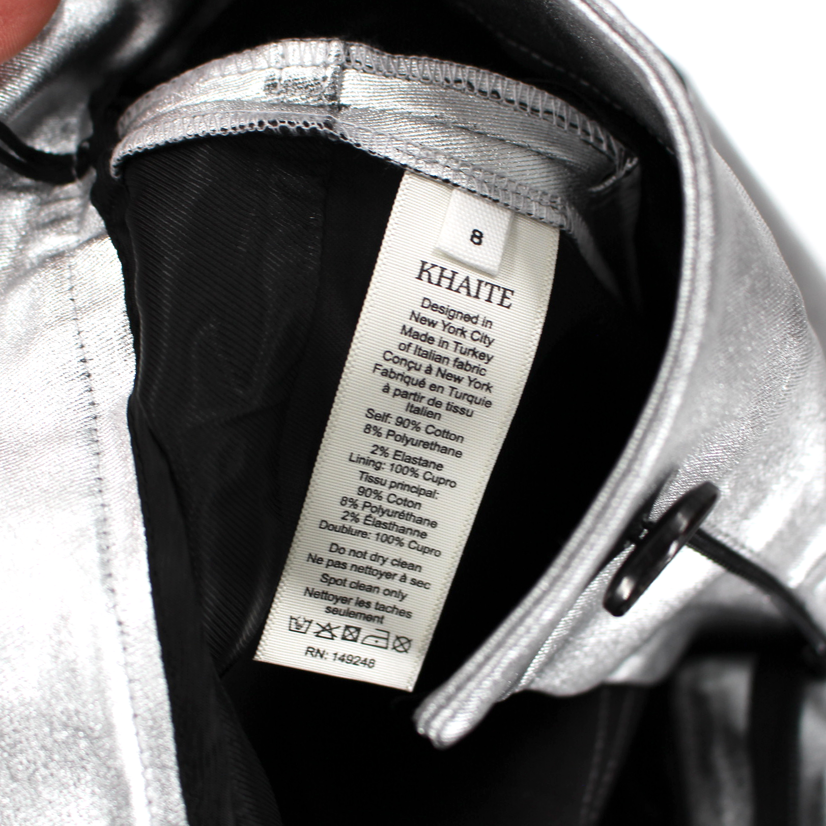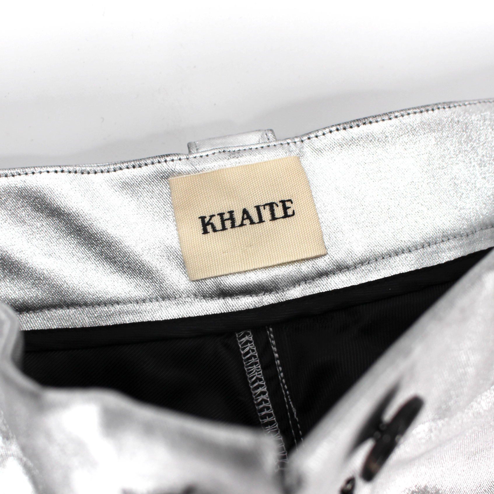 Khaite Preen Metallic Relaxed Wide Leg Pants Silver Faux Leather.