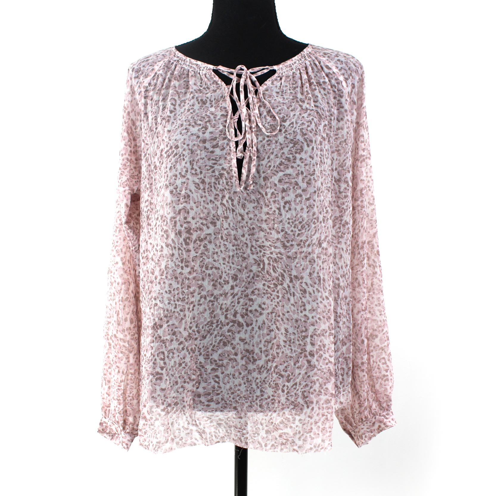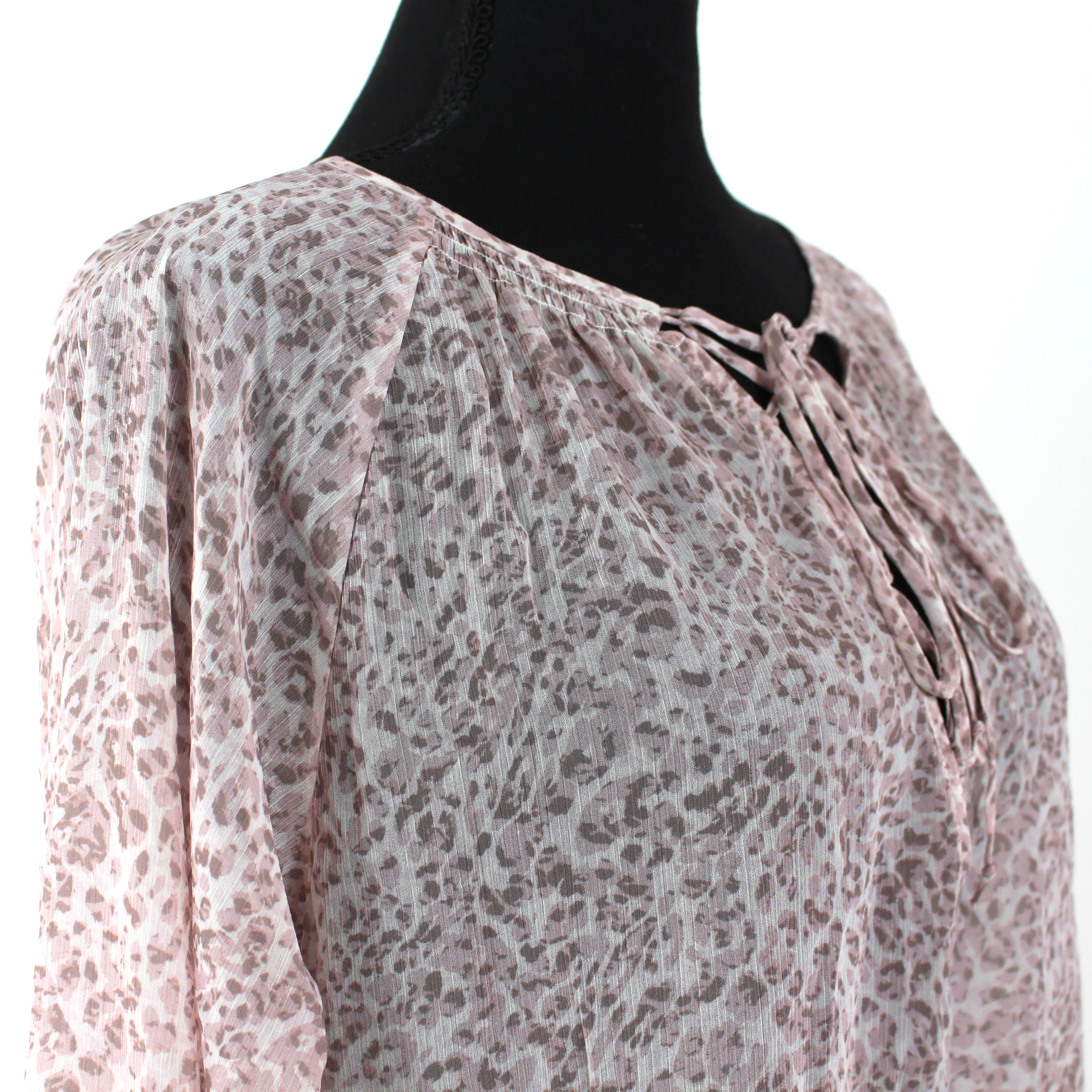L'AGENCE Long Sleeve Lace-Up Neck Sandalwood Animal Print Blouse
