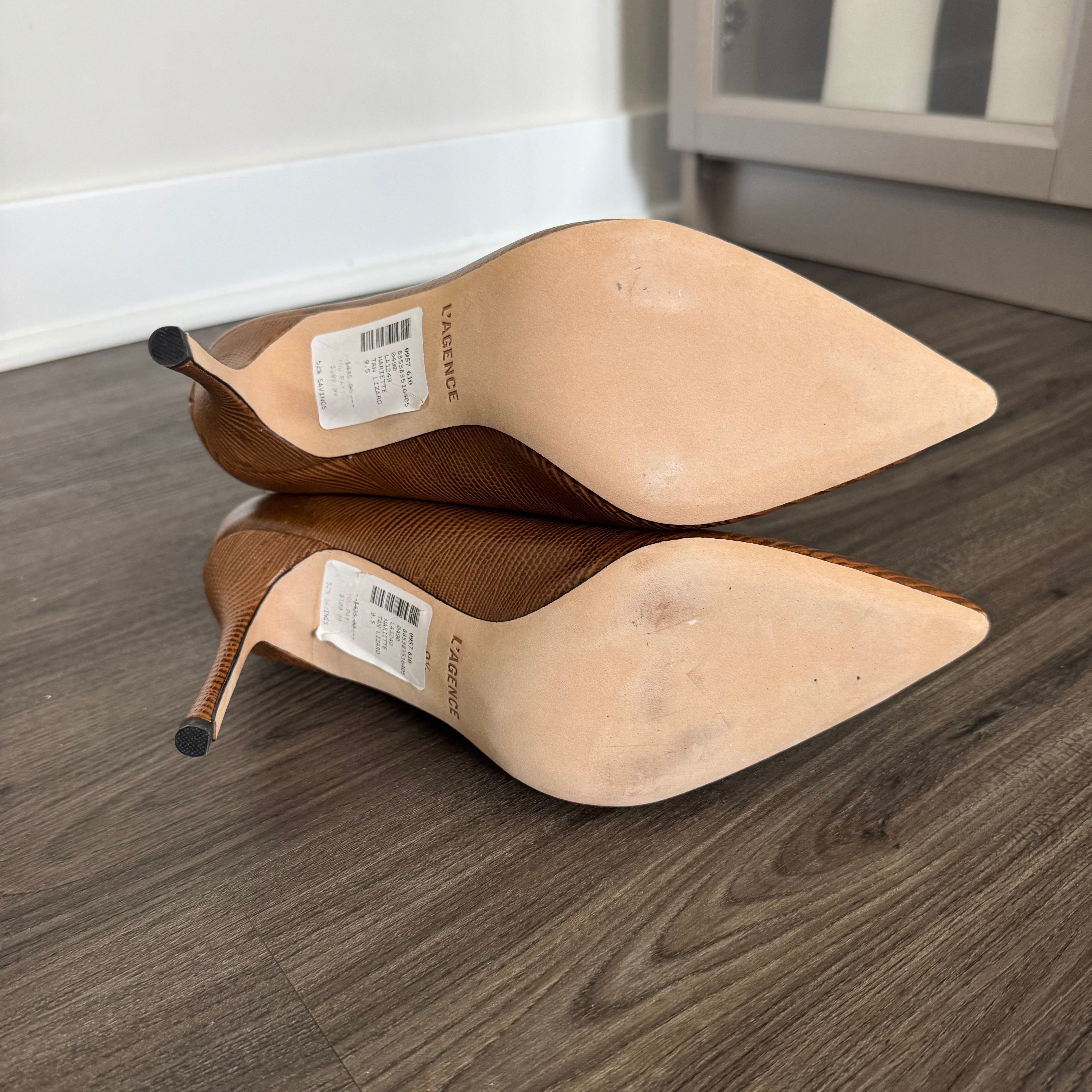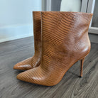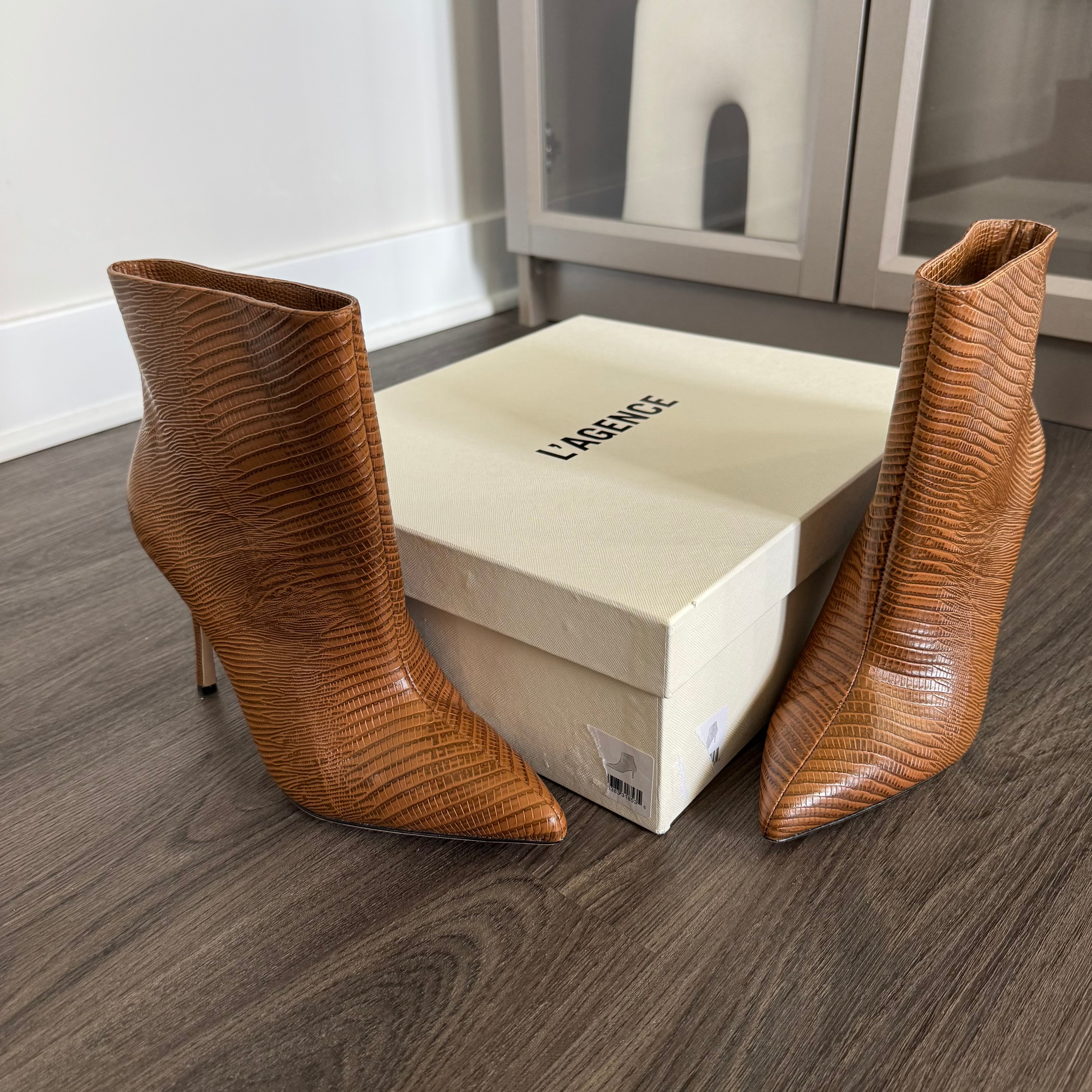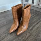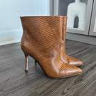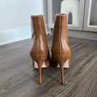 L'Agence Mariette Lizard Embossed Tan Leather Heeled Booties