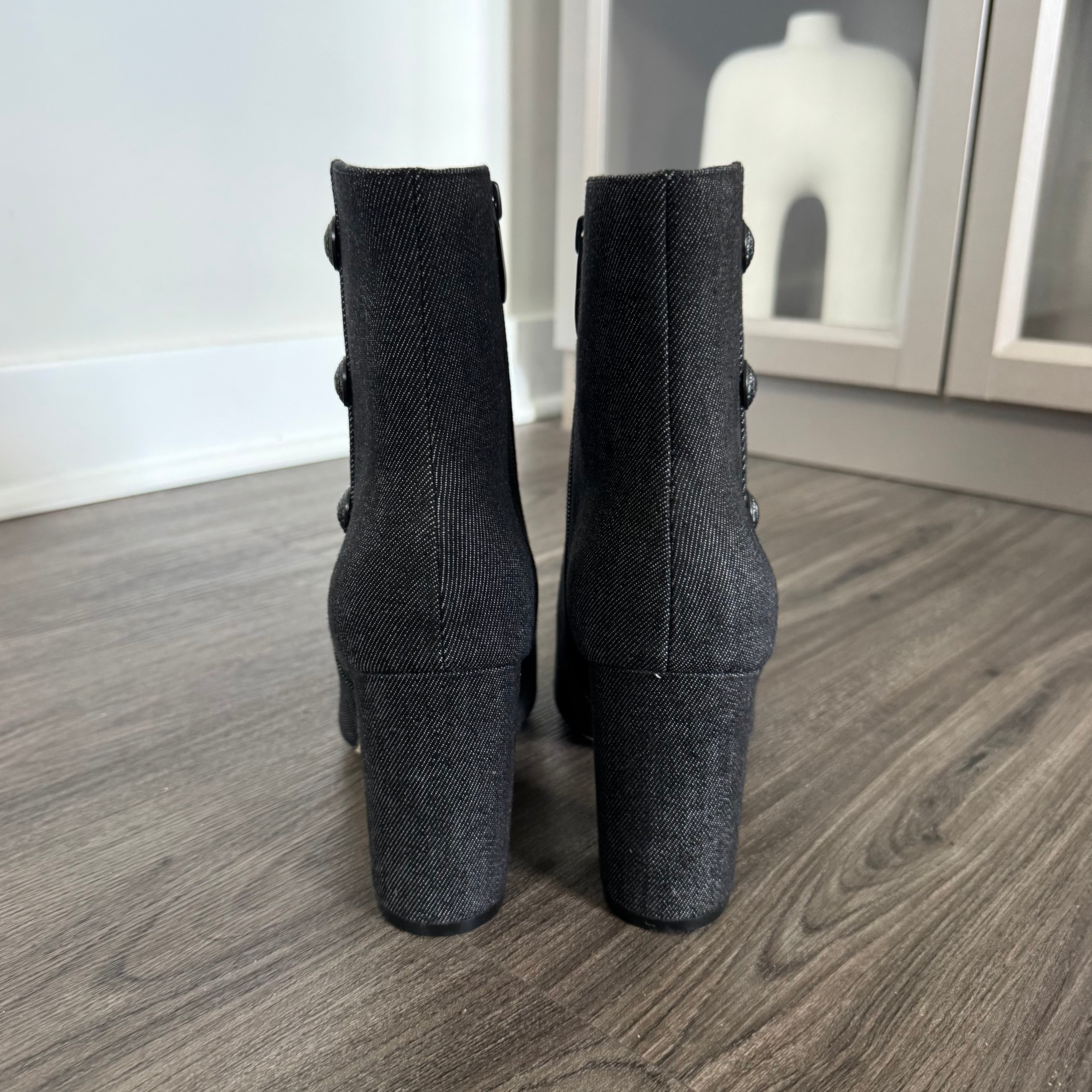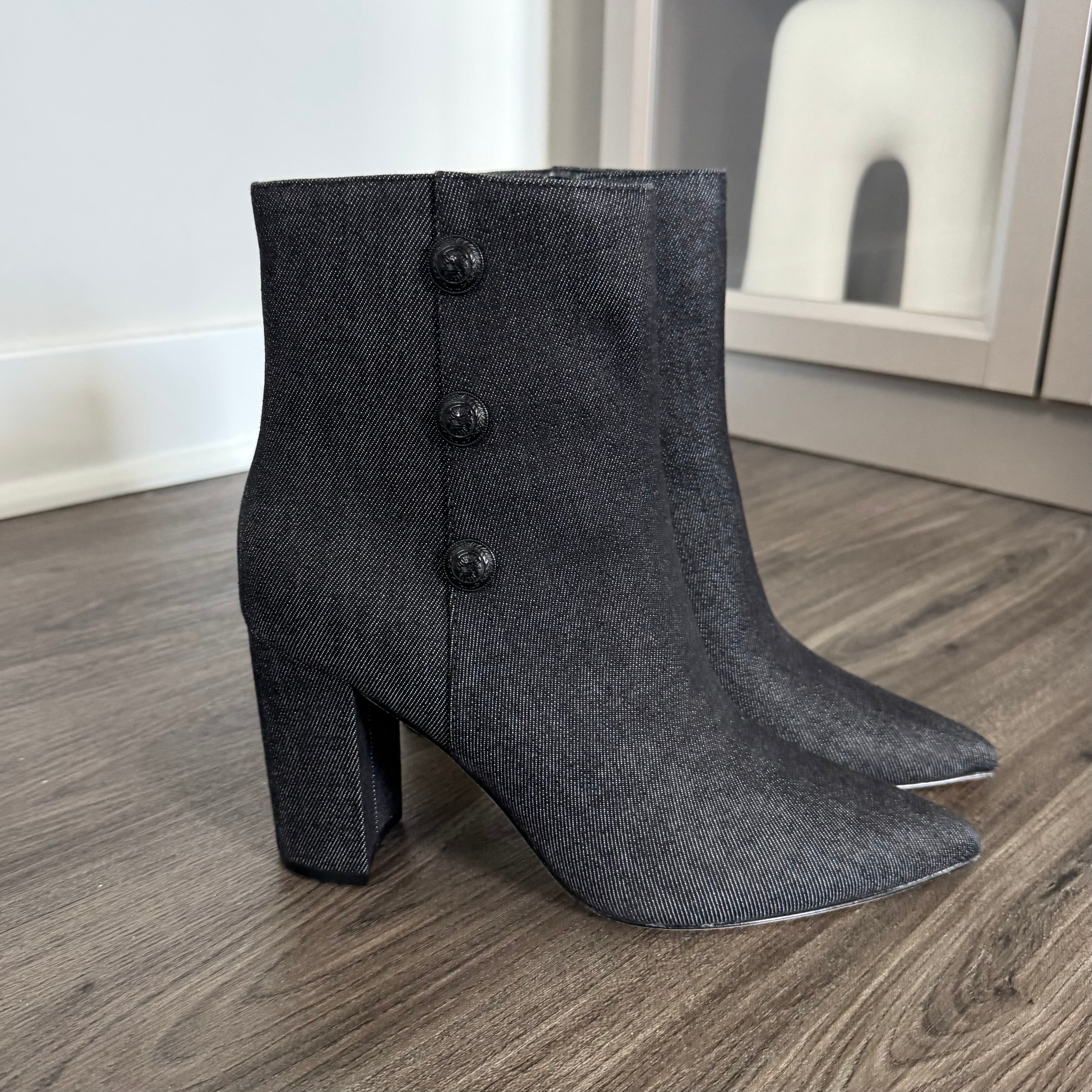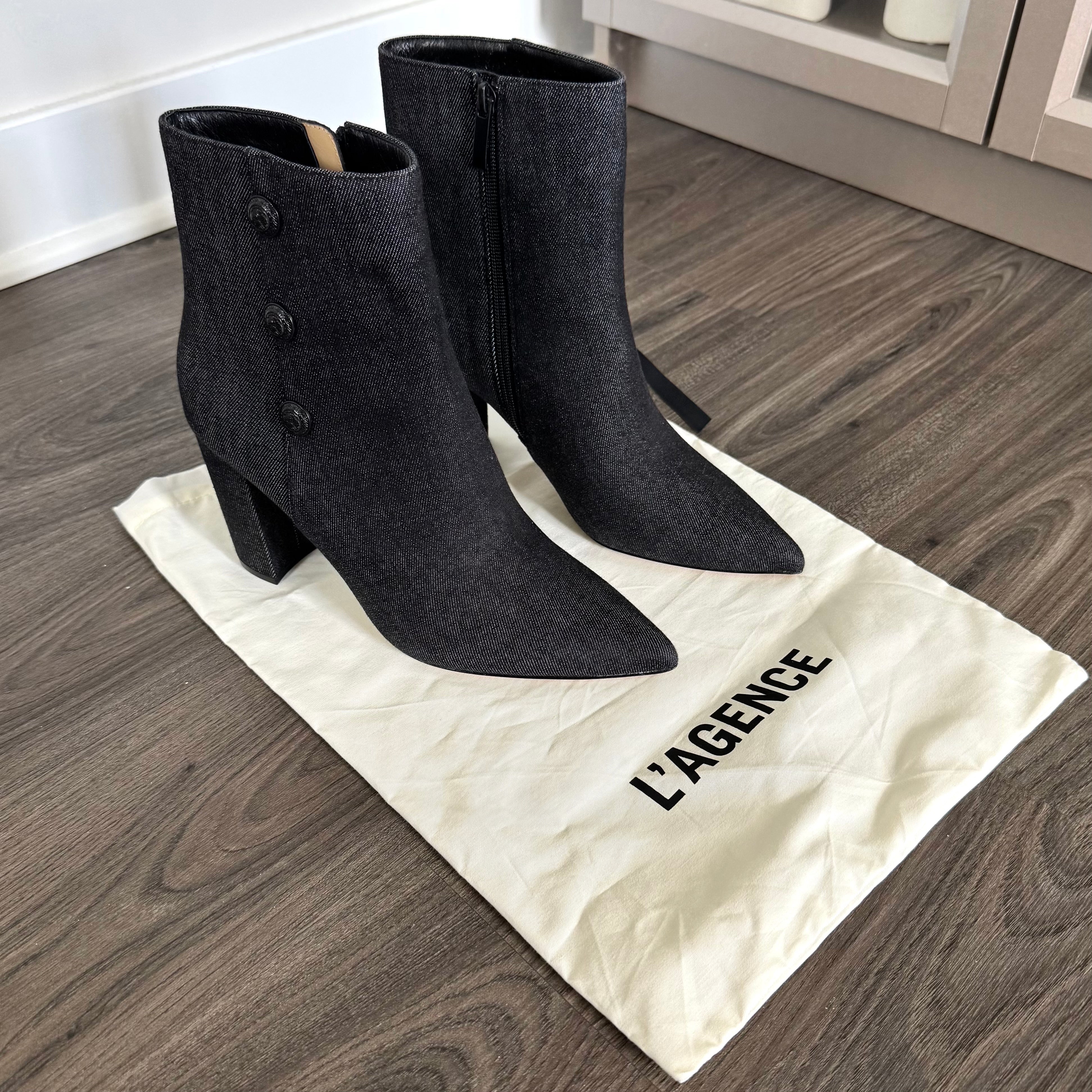 L'Agence Theodora Black Denim Block Heel Ankle Booties
