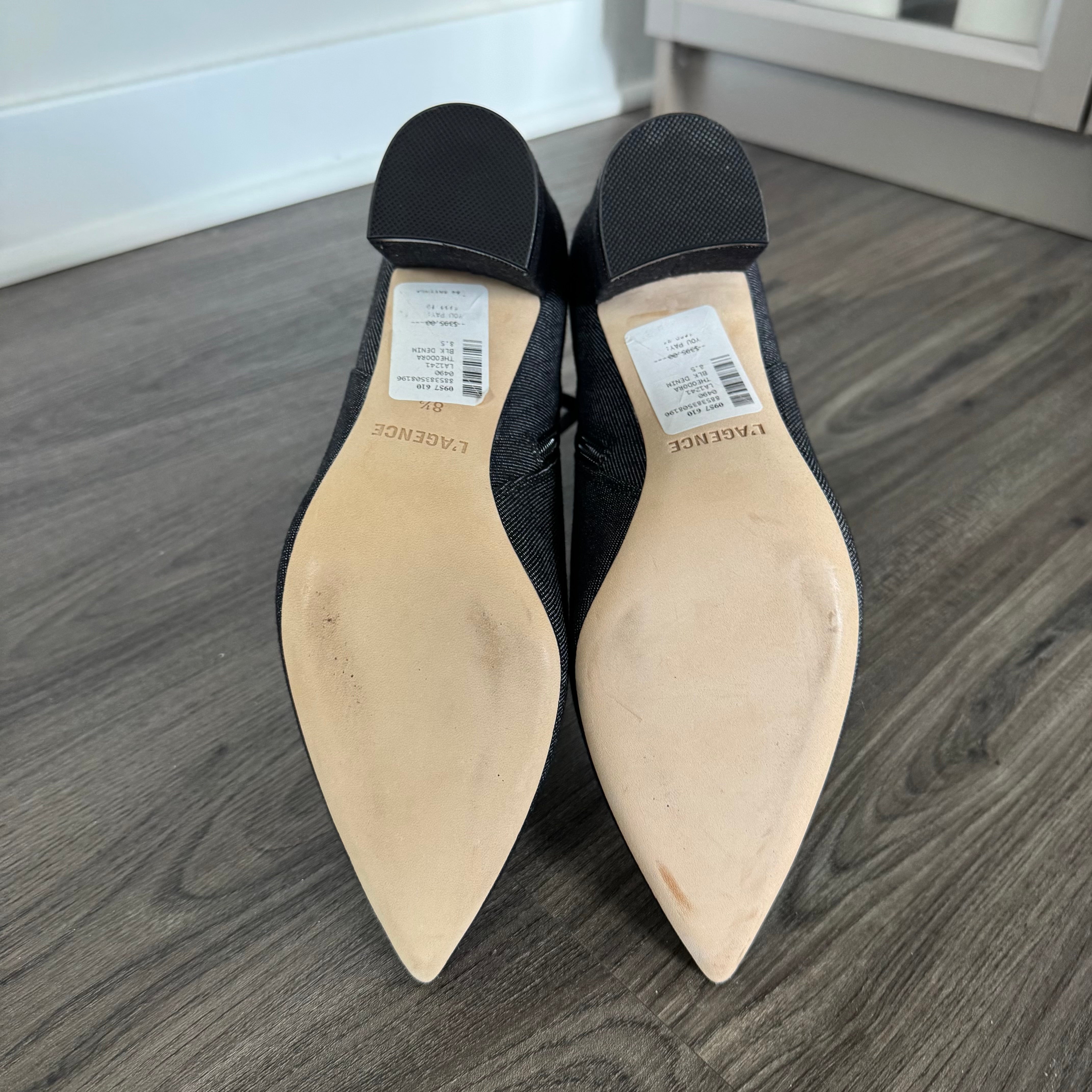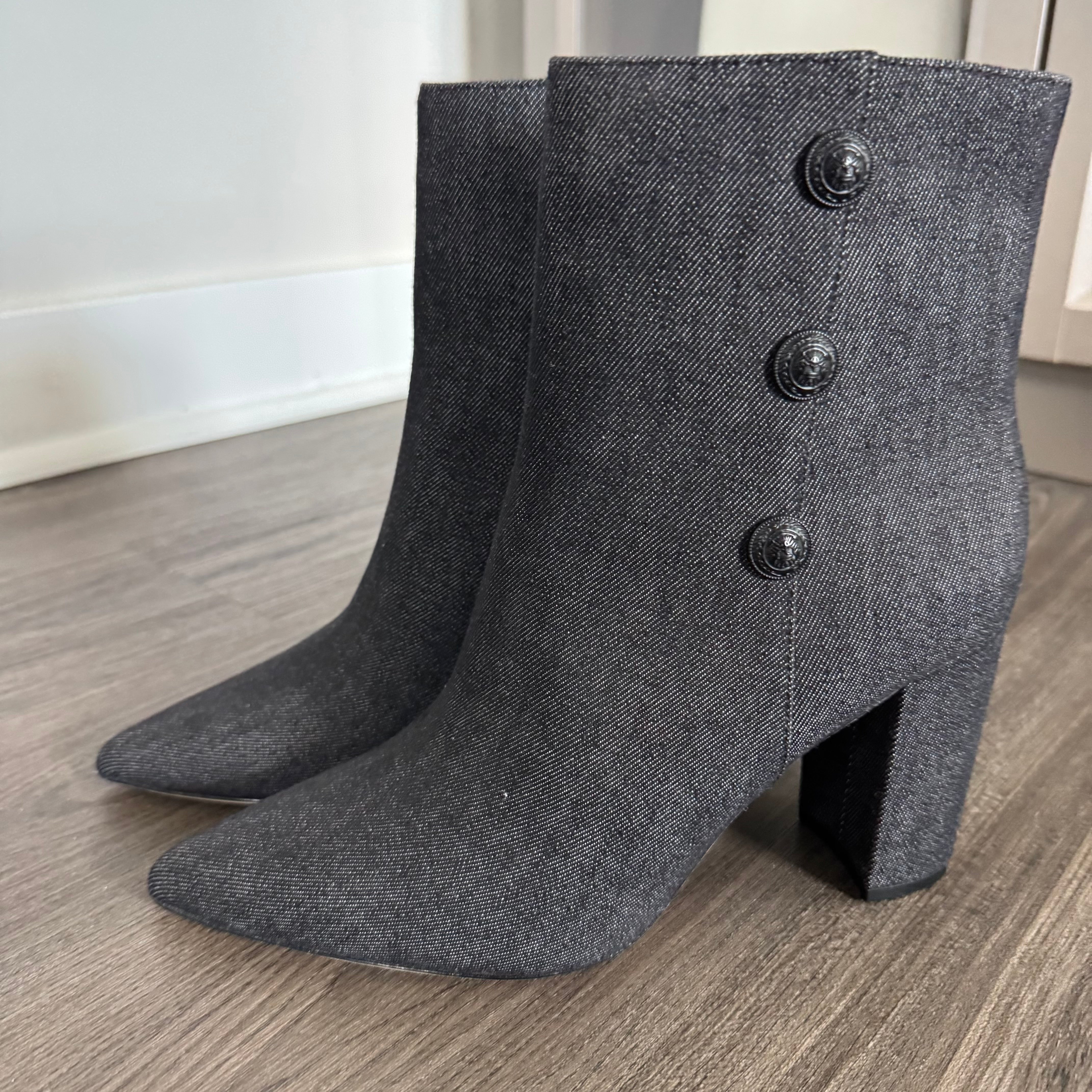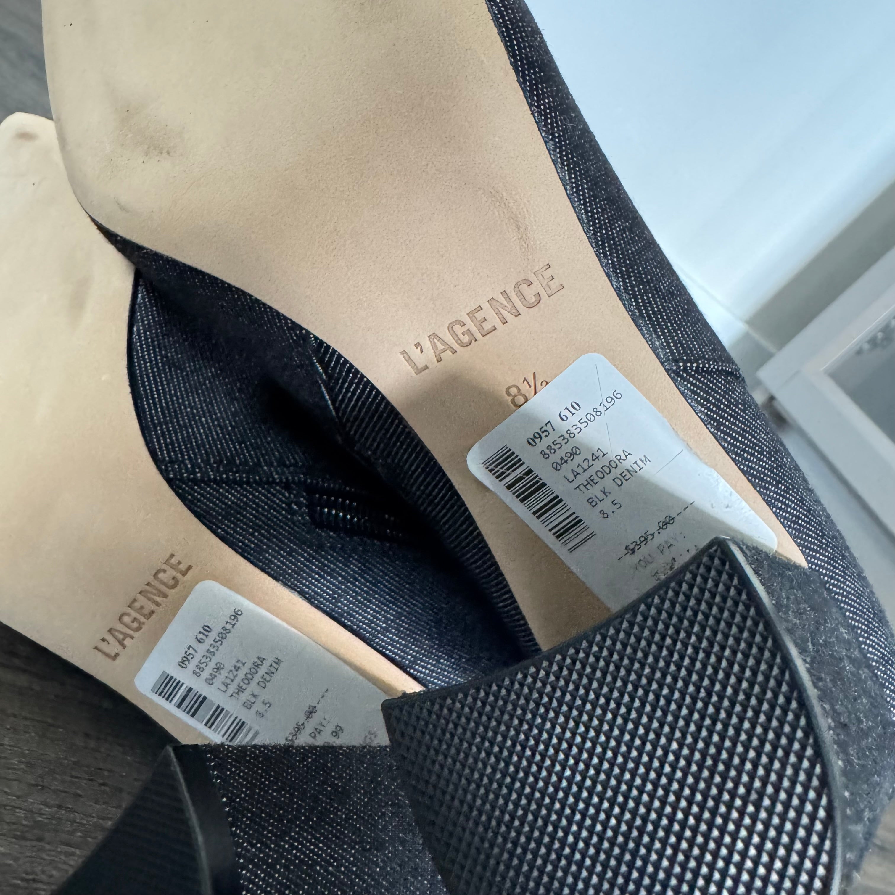 L'Agence Theodora Black Denim Block Heel Ankle Booties