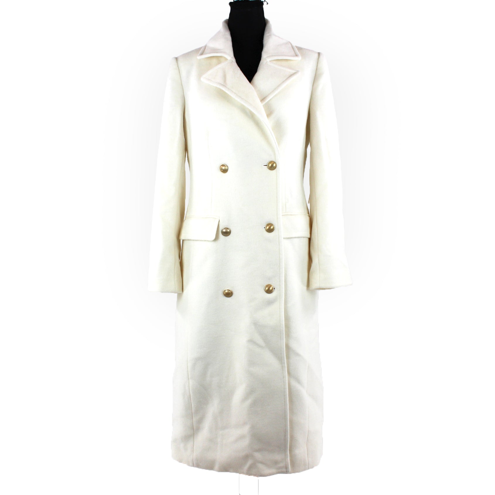L'agence Wool Double Breasted Button Cream Long Peacoat