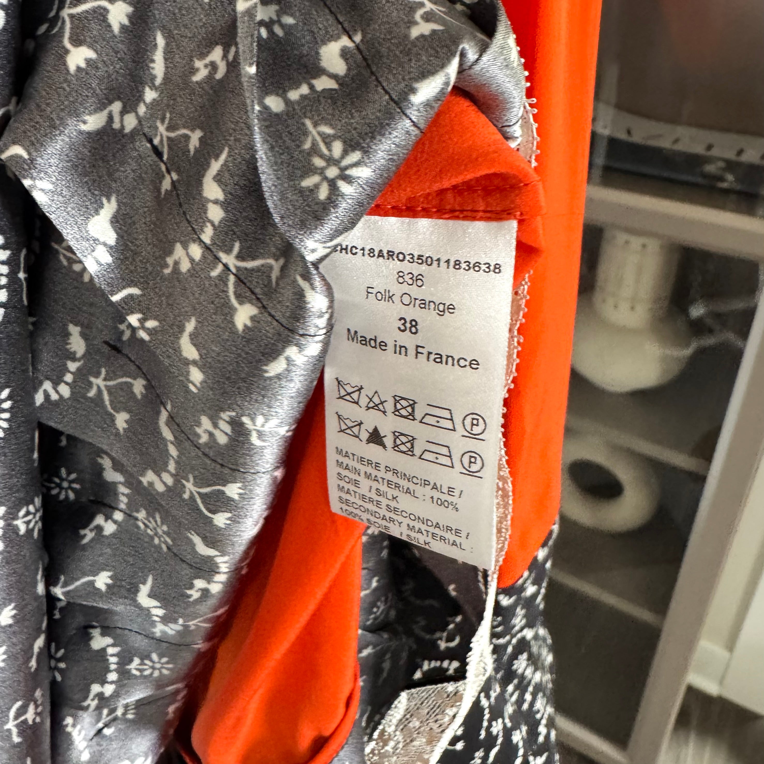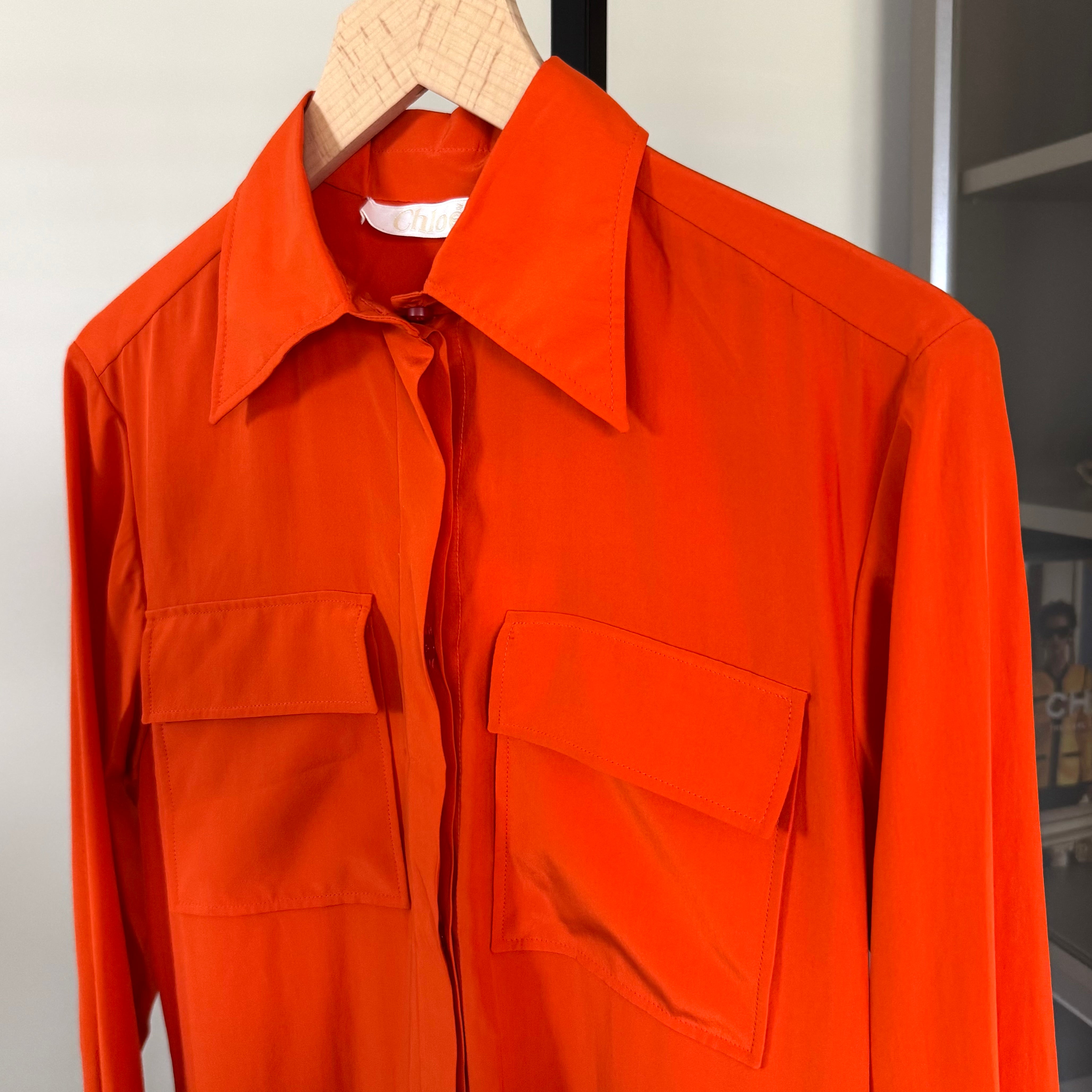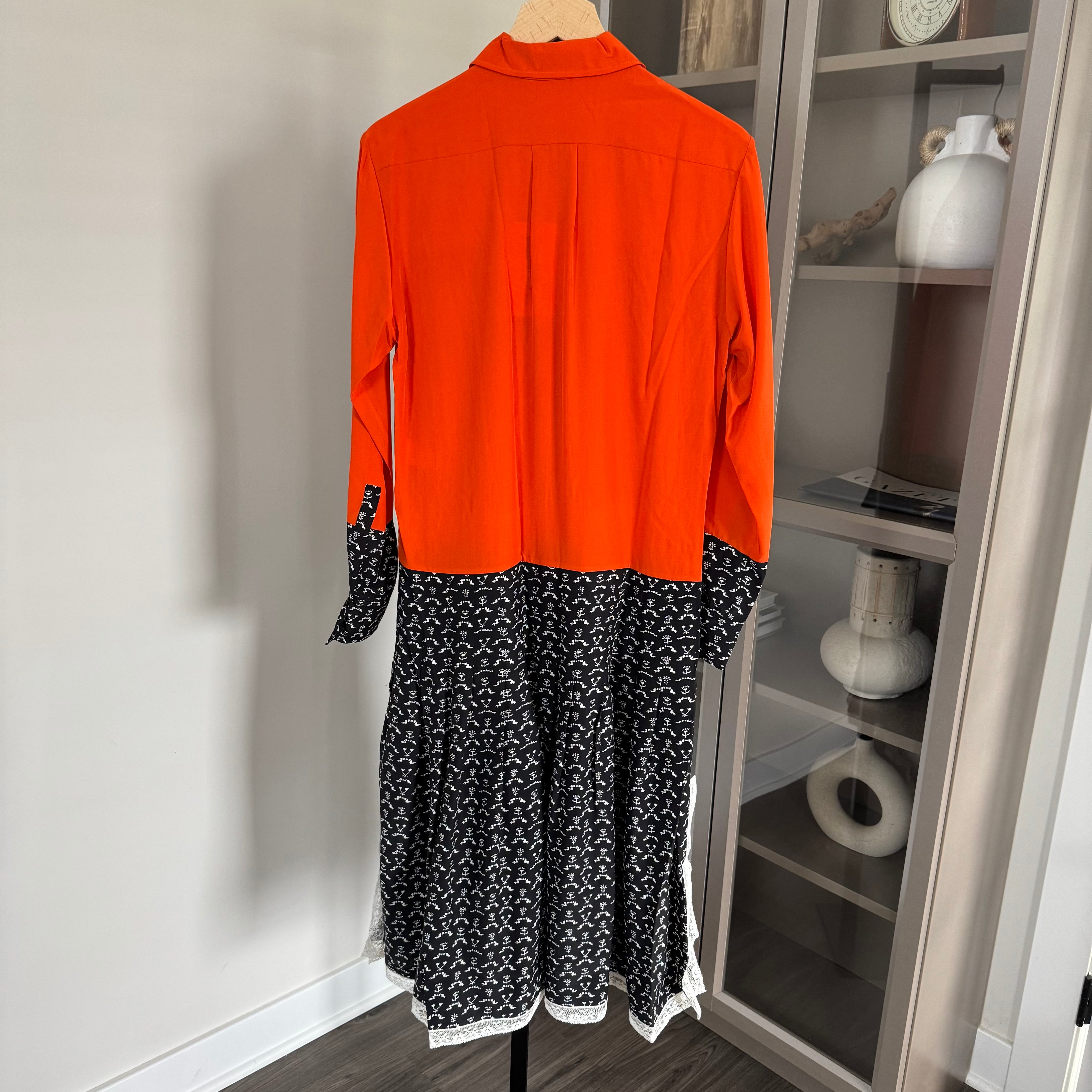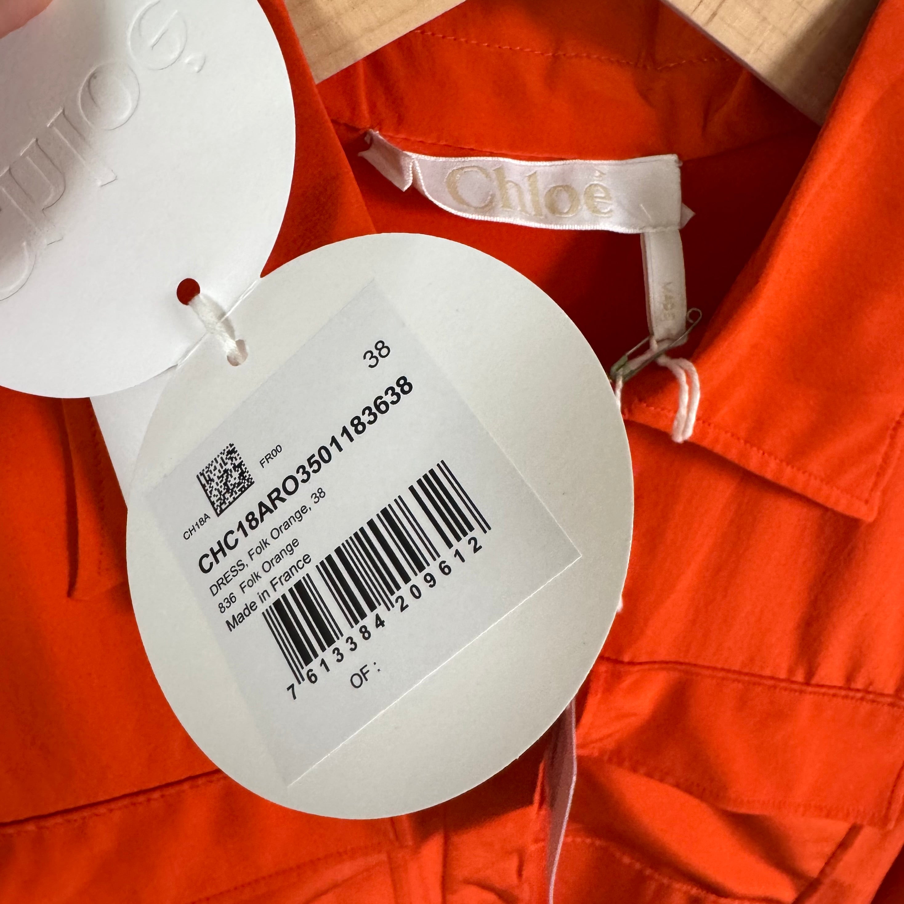 Chloè Folk Silk Orange Long Sleeve Contrast Crepe De Chine Cravat Print Dress