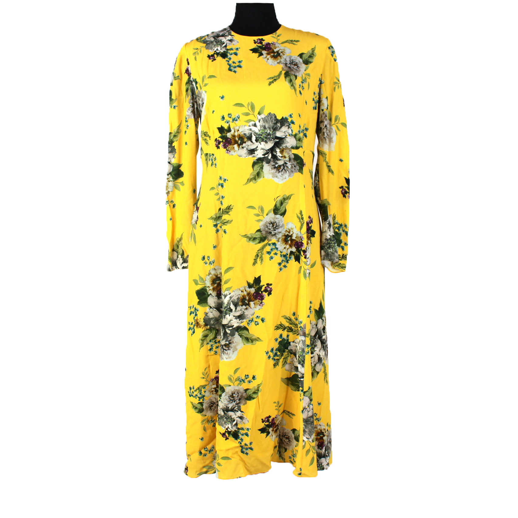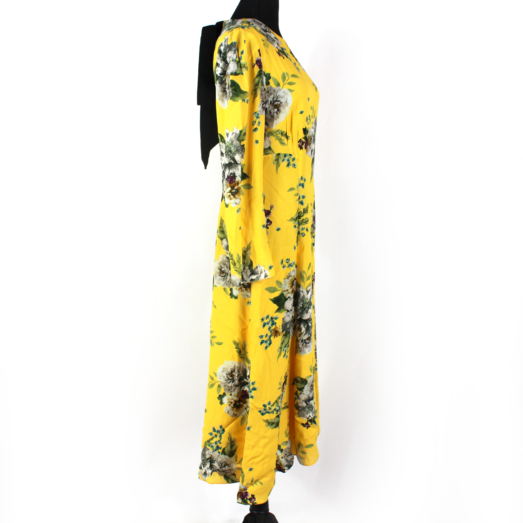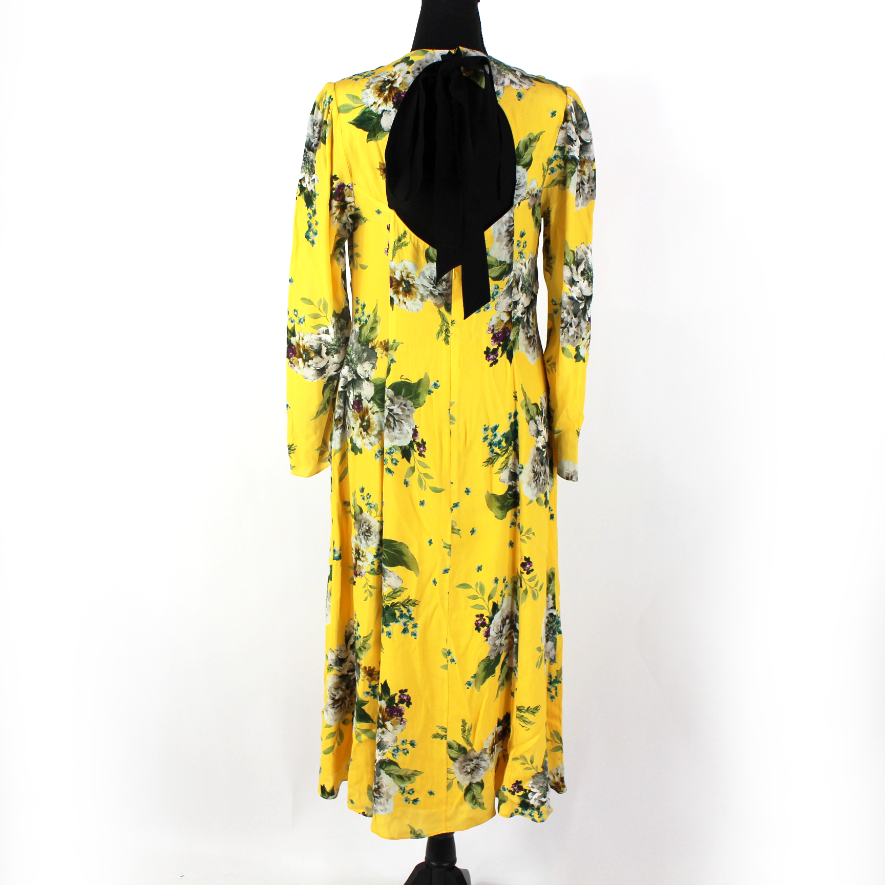 Erdem Ivor Bright Yellow Floral Print Long Sleeve Open Back Midi Dress