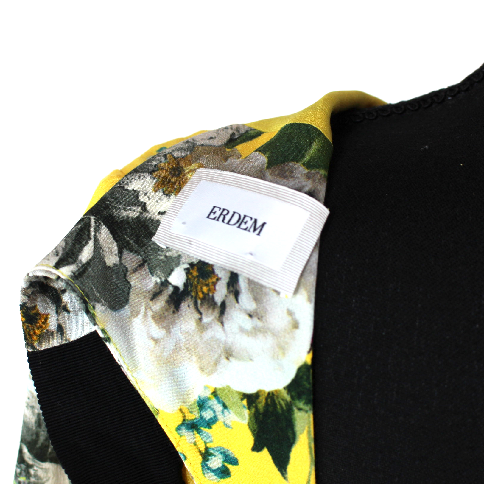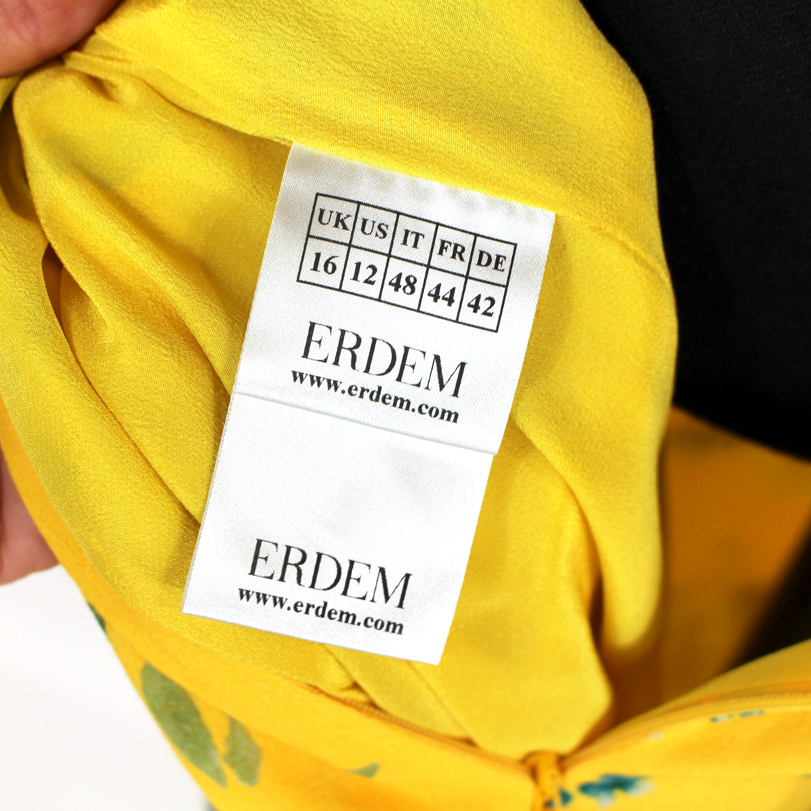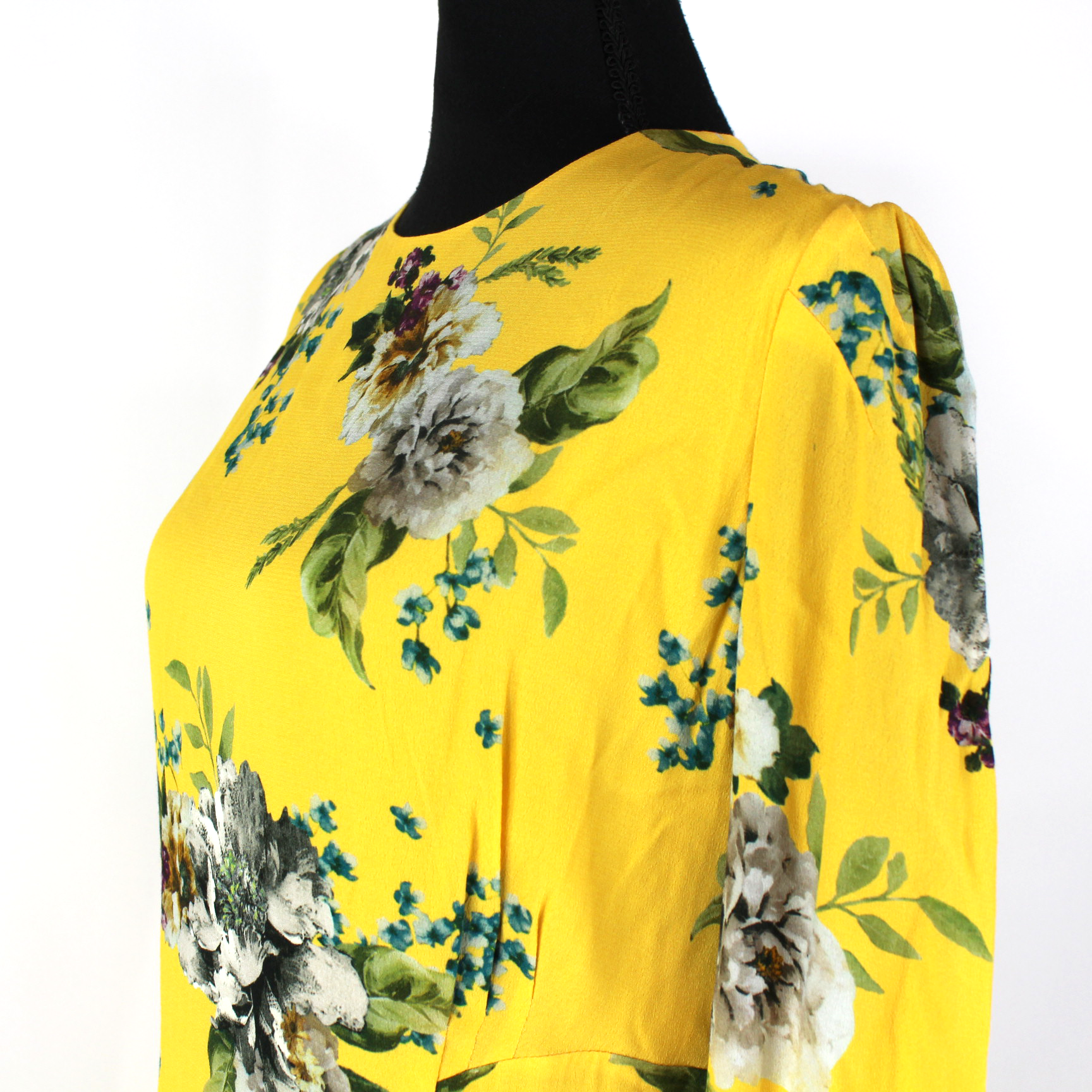 Erdem Ivor Bright Yellow Floral Print Long Sleeve Open Back Midi Dress