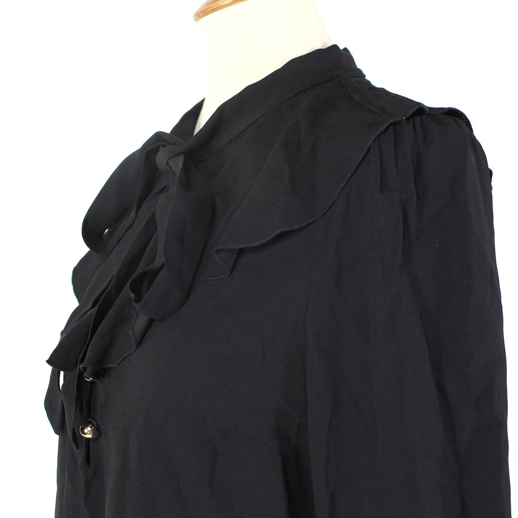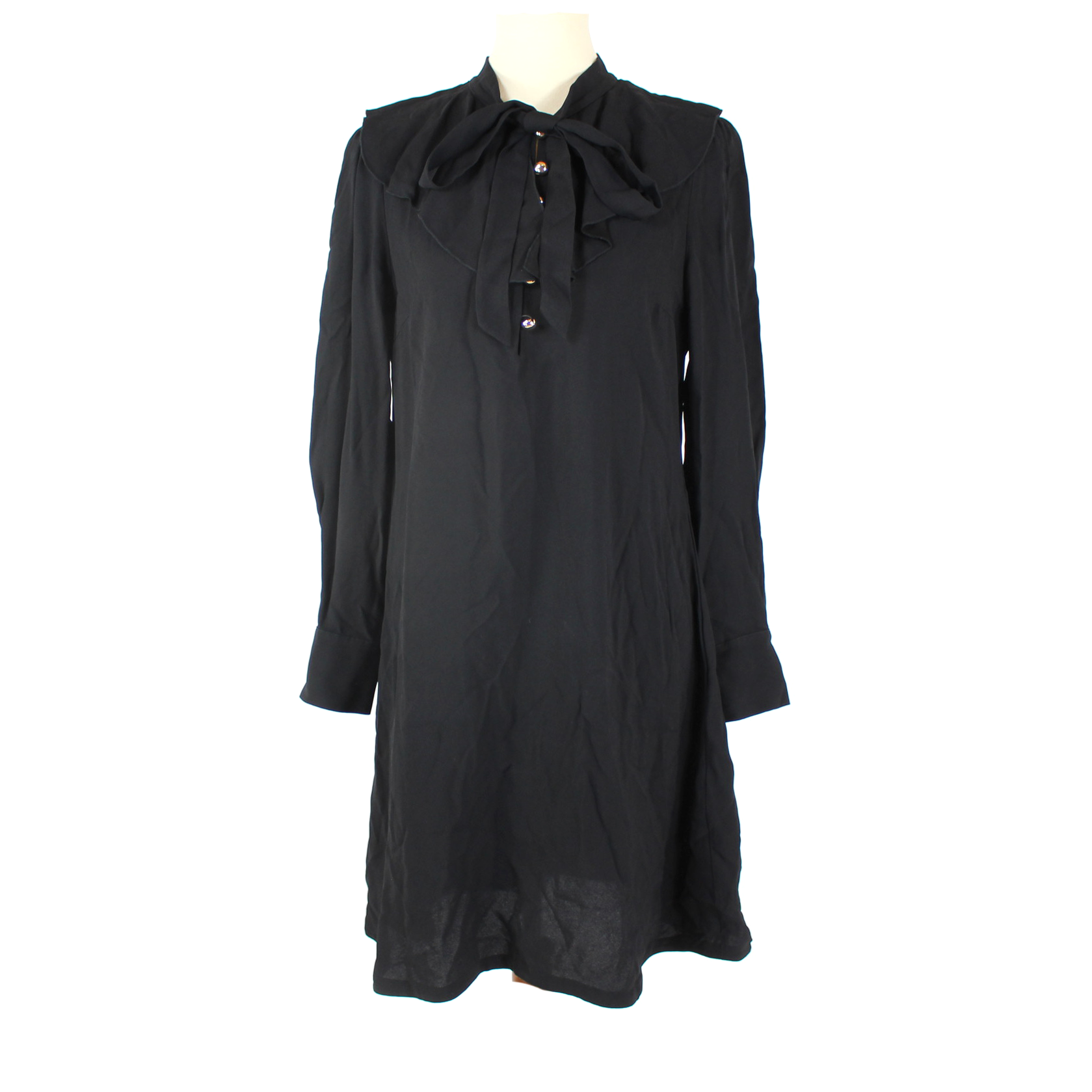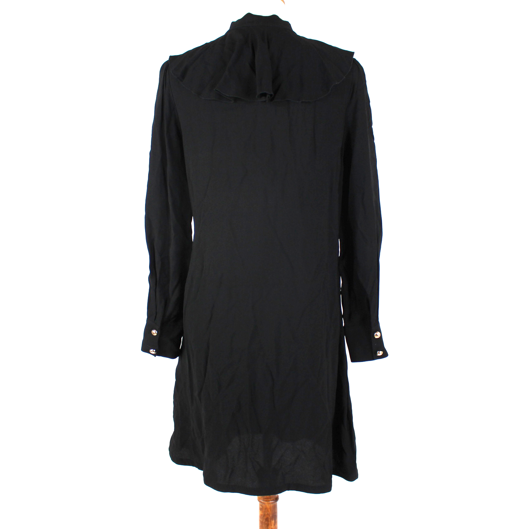 LK Bennett Millie Black Crepe Ruffle Frill Pussy Bow Collar Tunic Dress
