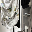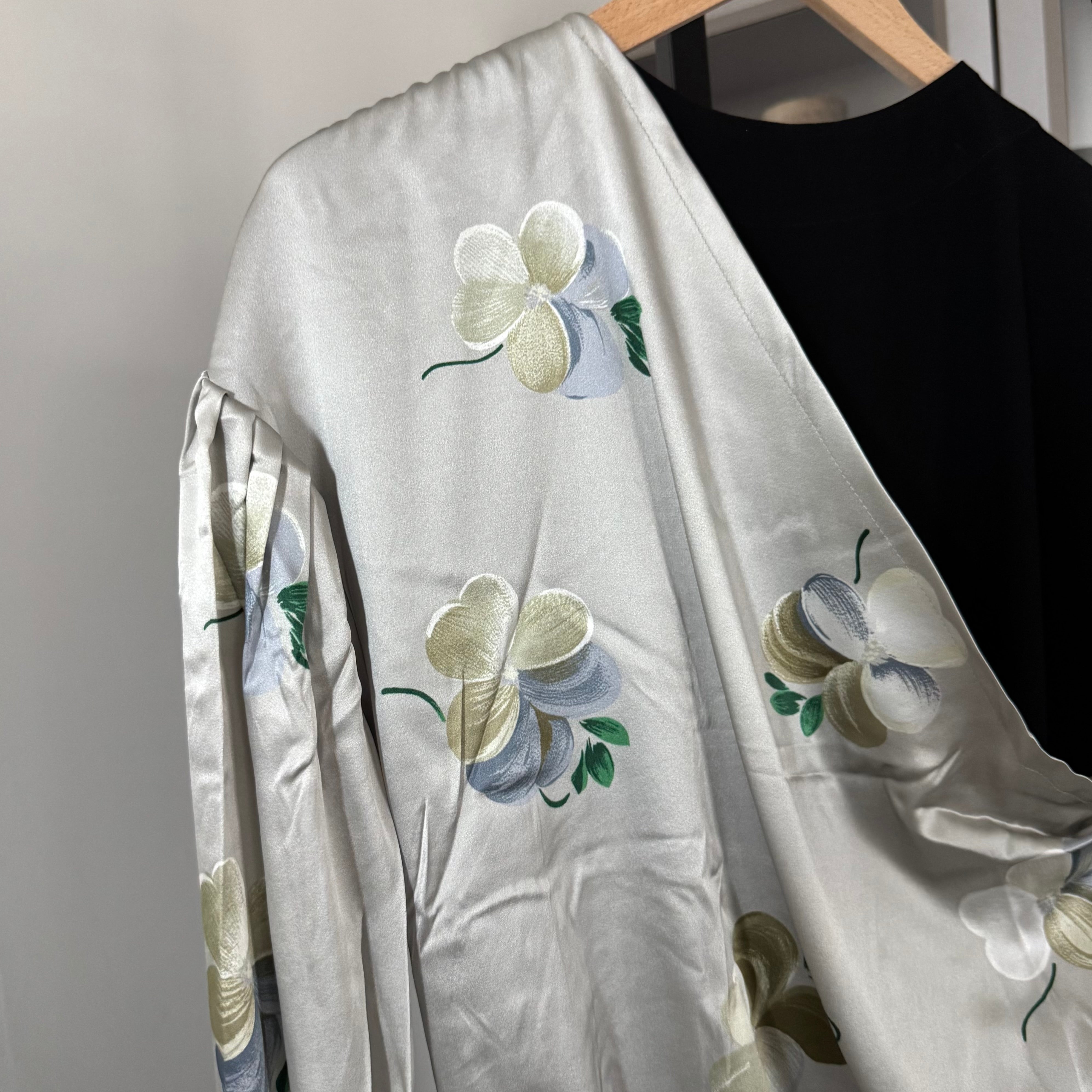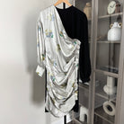 - Floral silk draping overlay raw cut gathered front