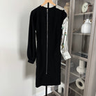 - Exposed silver tone zip-up back