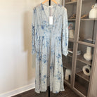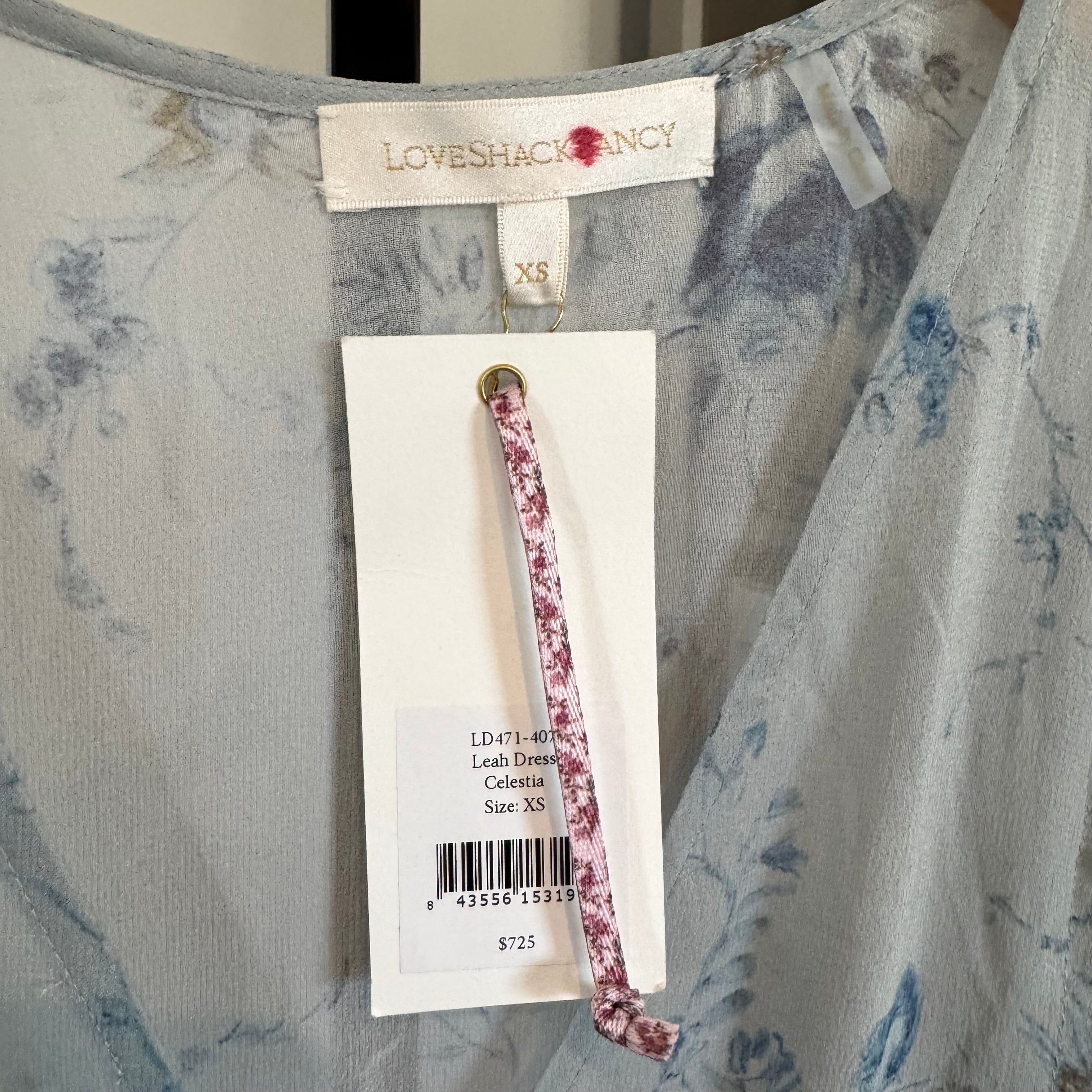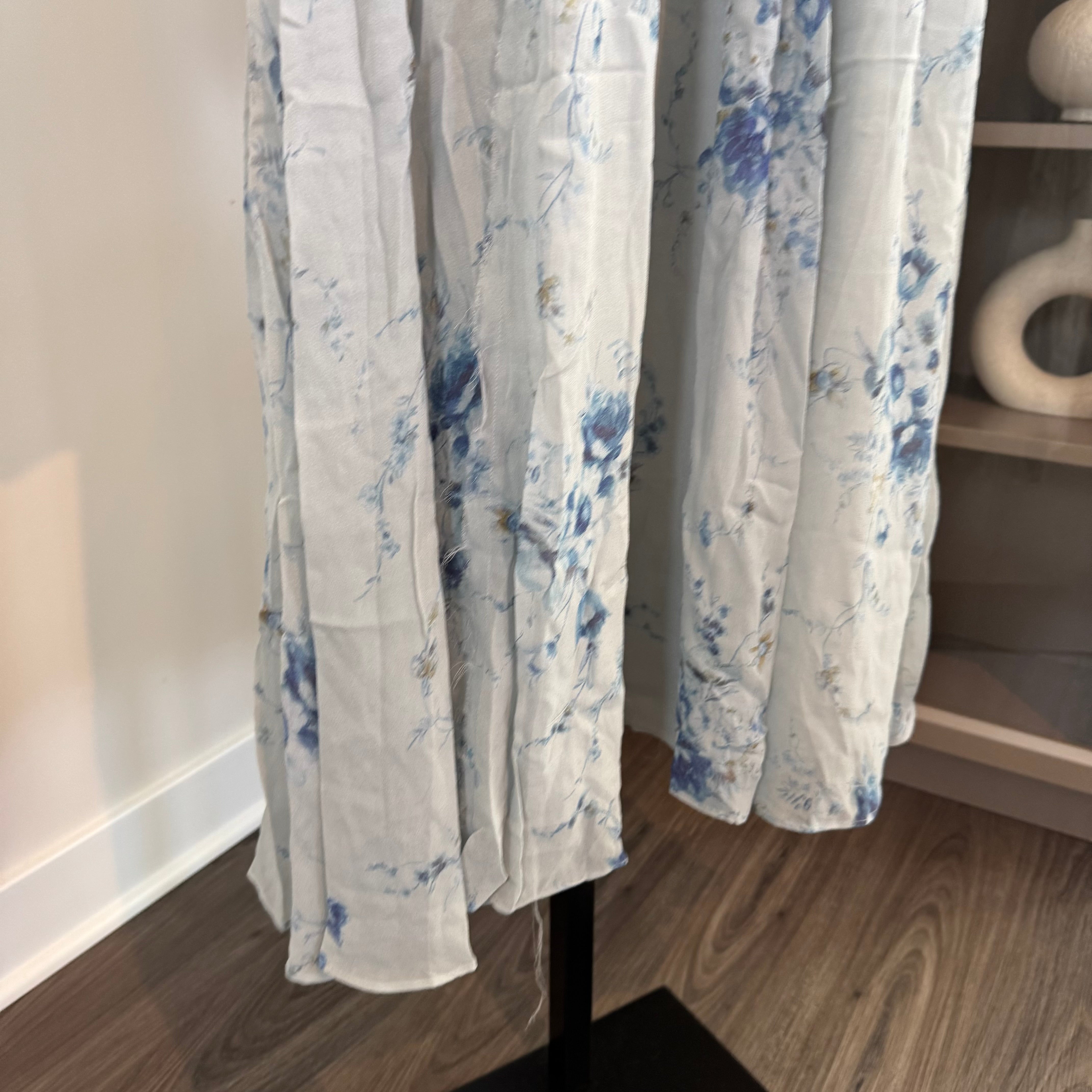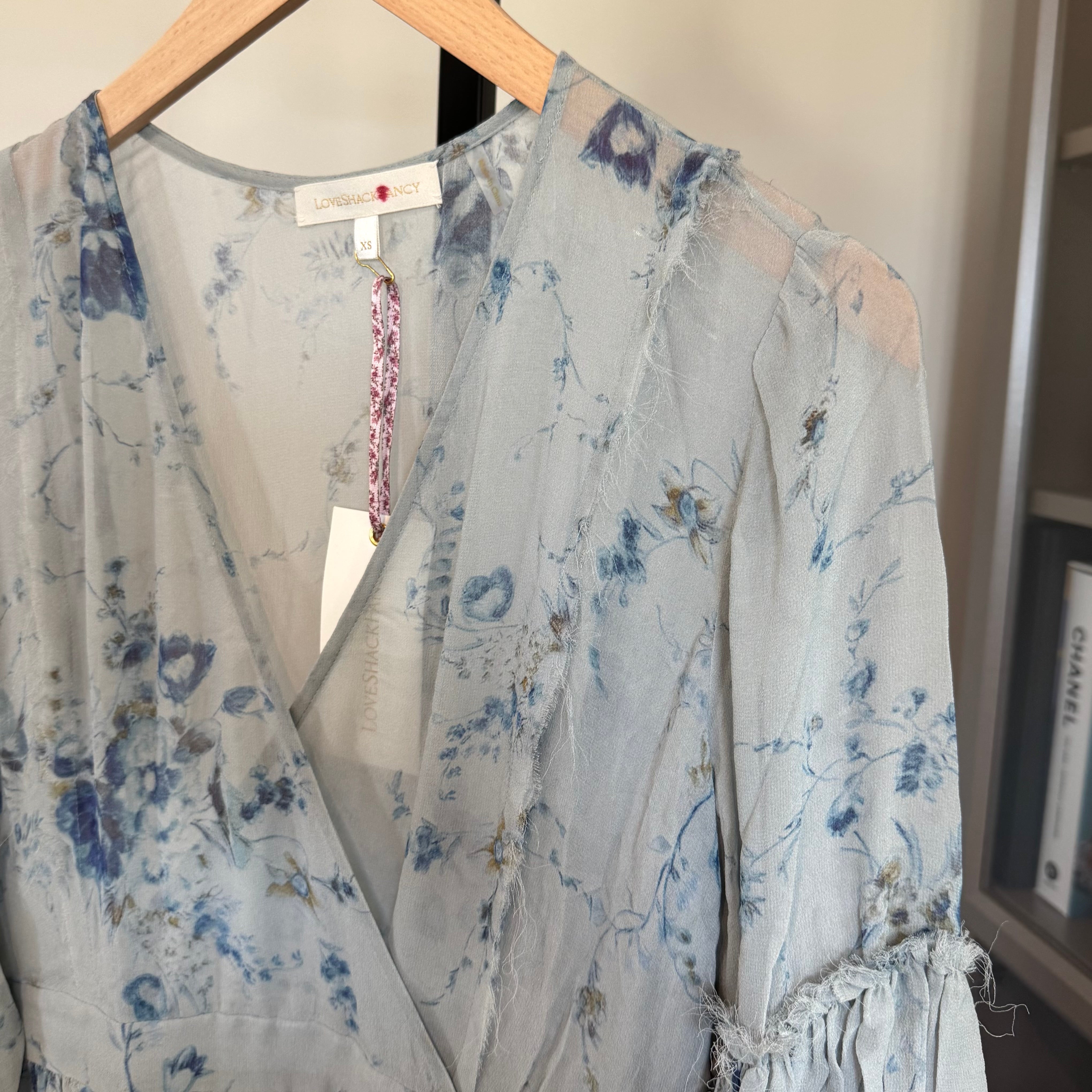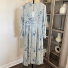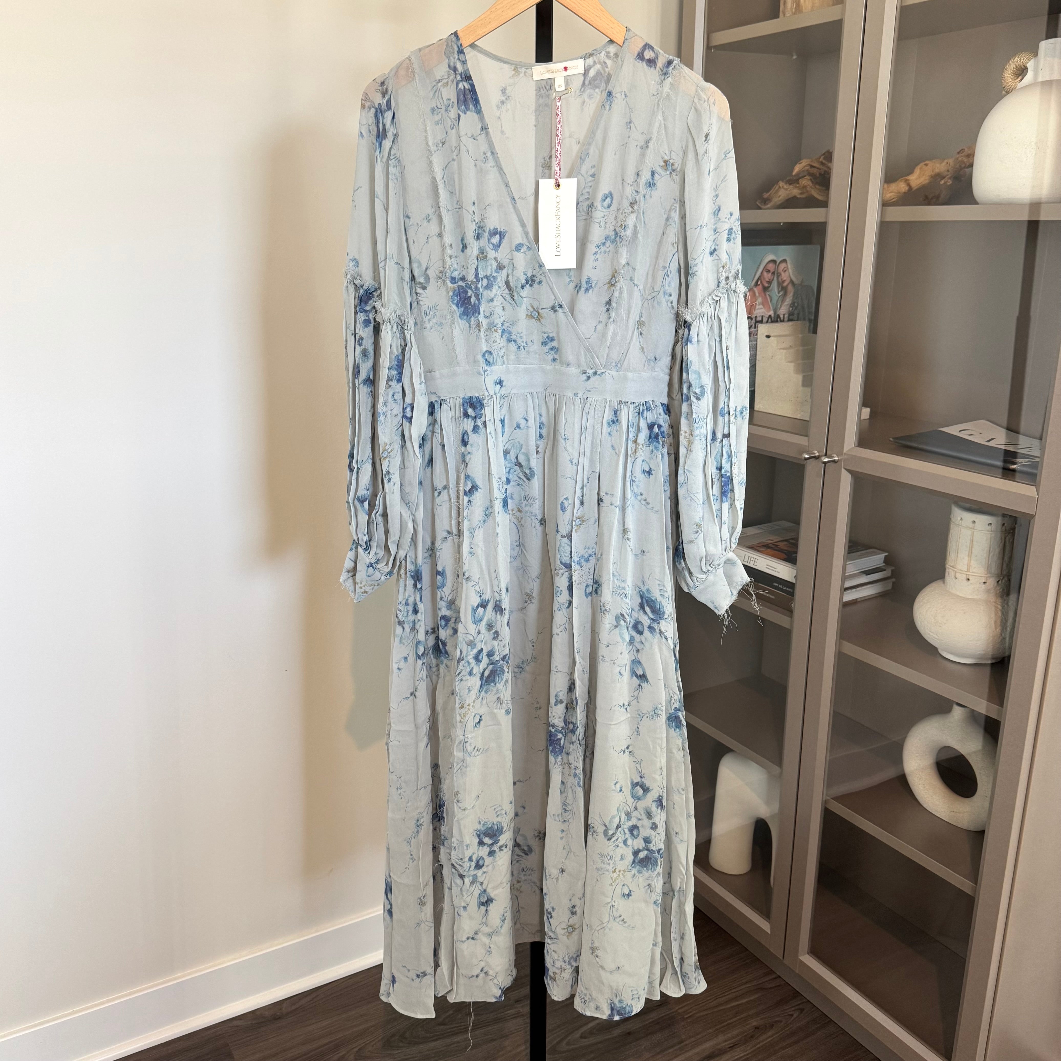 LoveShackFancy Leah Silk Blue Celestia Floral Print Midi Dress