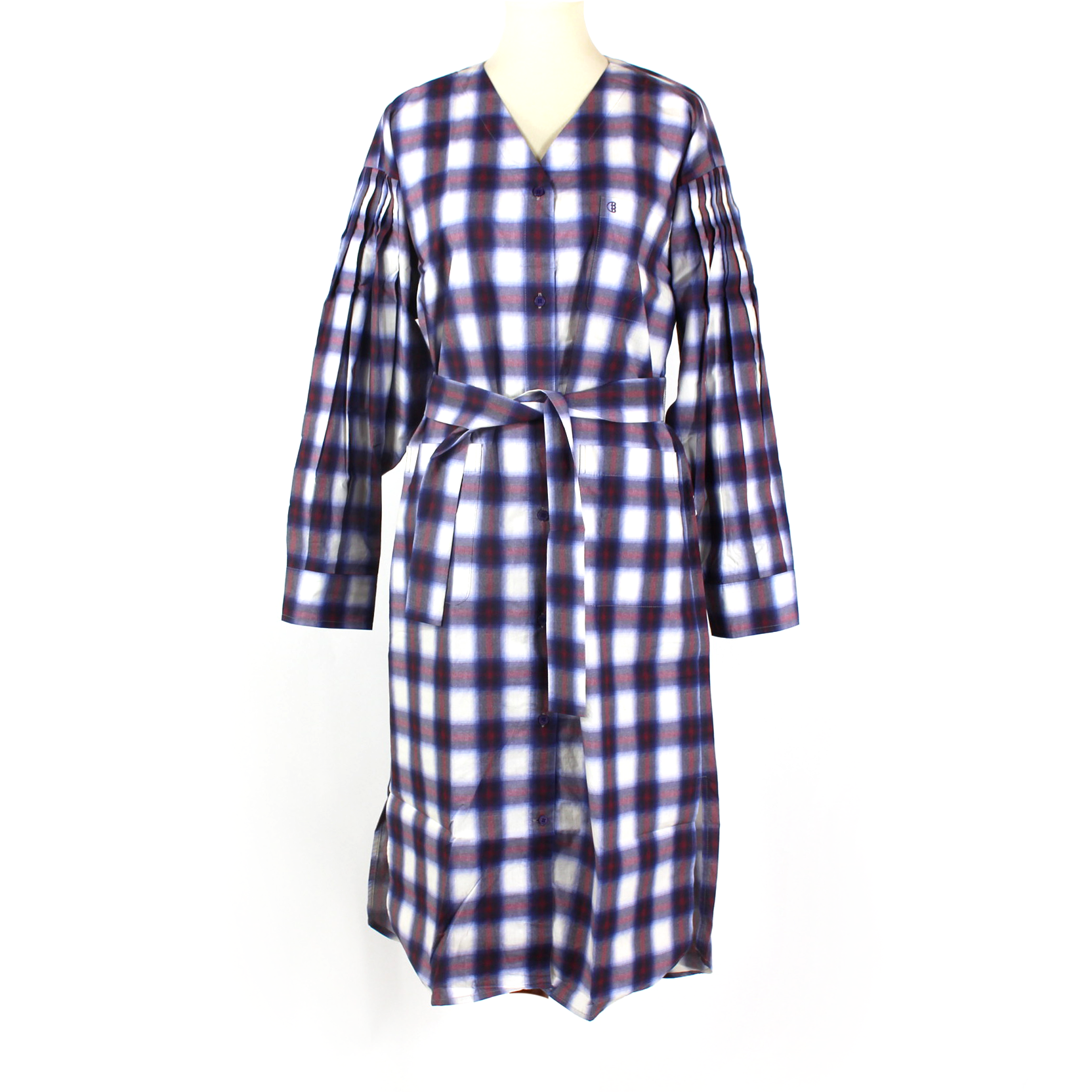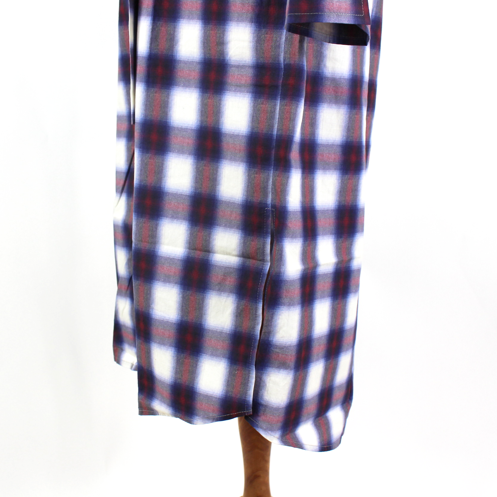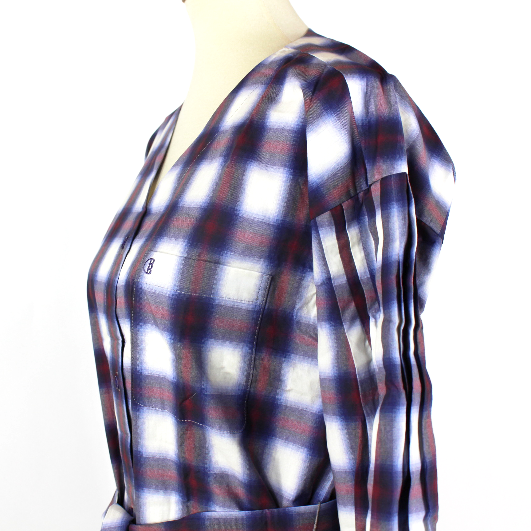 pushBUTTON Navy Red Plaid Cotton Button-Up Belted Shirt Dress