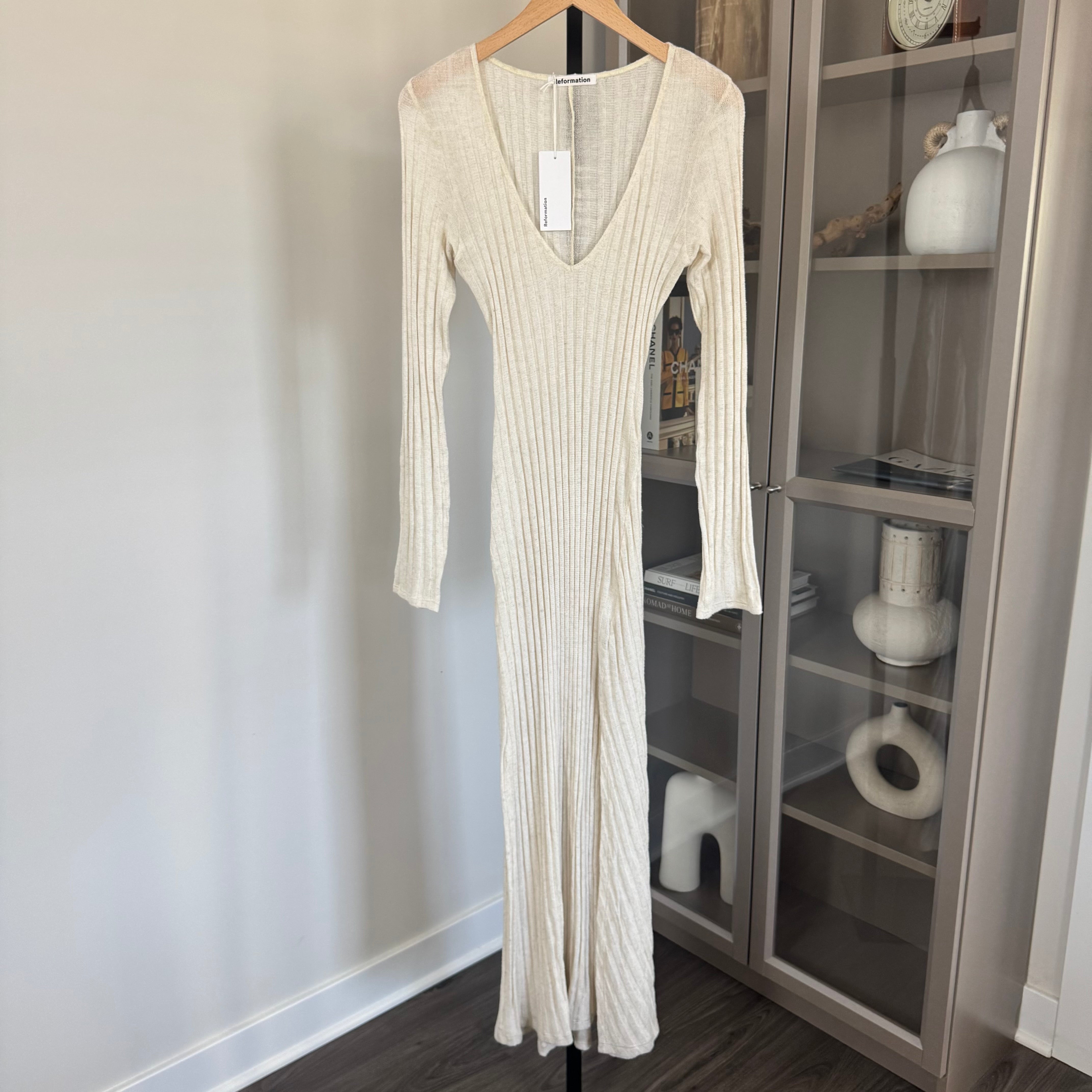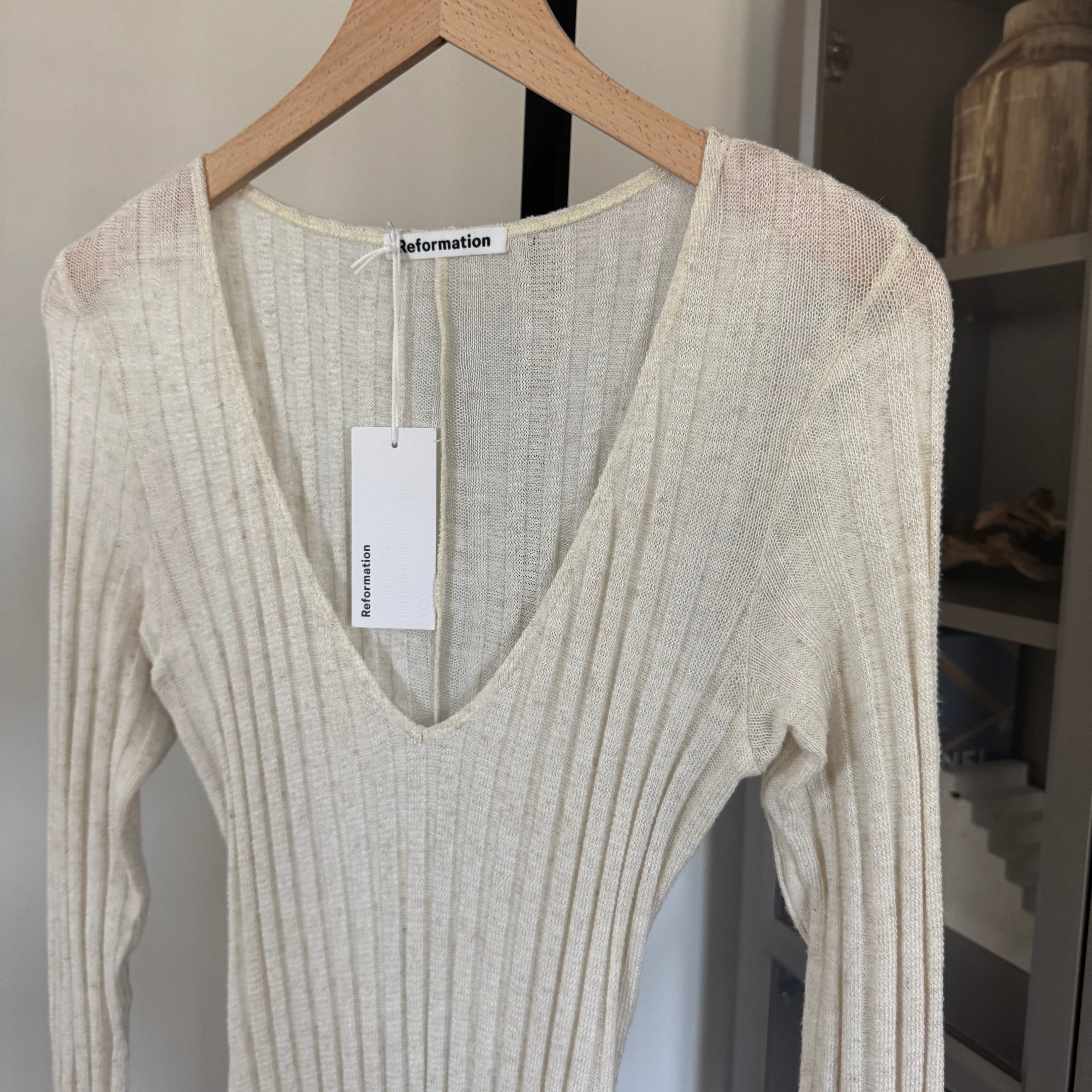 Reformation Mango Natural Tencel Blend V-Neckline Rib Knit Midi Dress