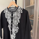 - Heavily embroidered button placket